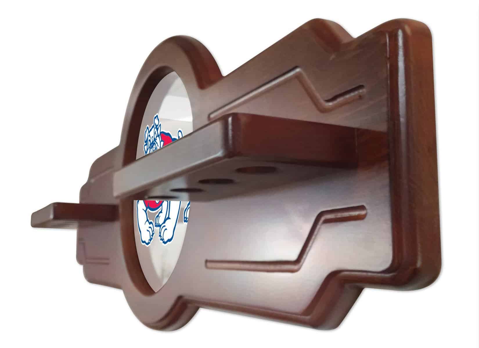 Elevate your game room with this premium Cue Rack featuring the Fresno State University Navajo Logo. Designed for passionate sports fans and pool enthusiasts, this exceptional rack combines functionality with stylish team spirit. Crafted with meticulous attention to detail, this cue rack offers a sophisticated storage solution for your pool sticks while showcasing your university pride.
