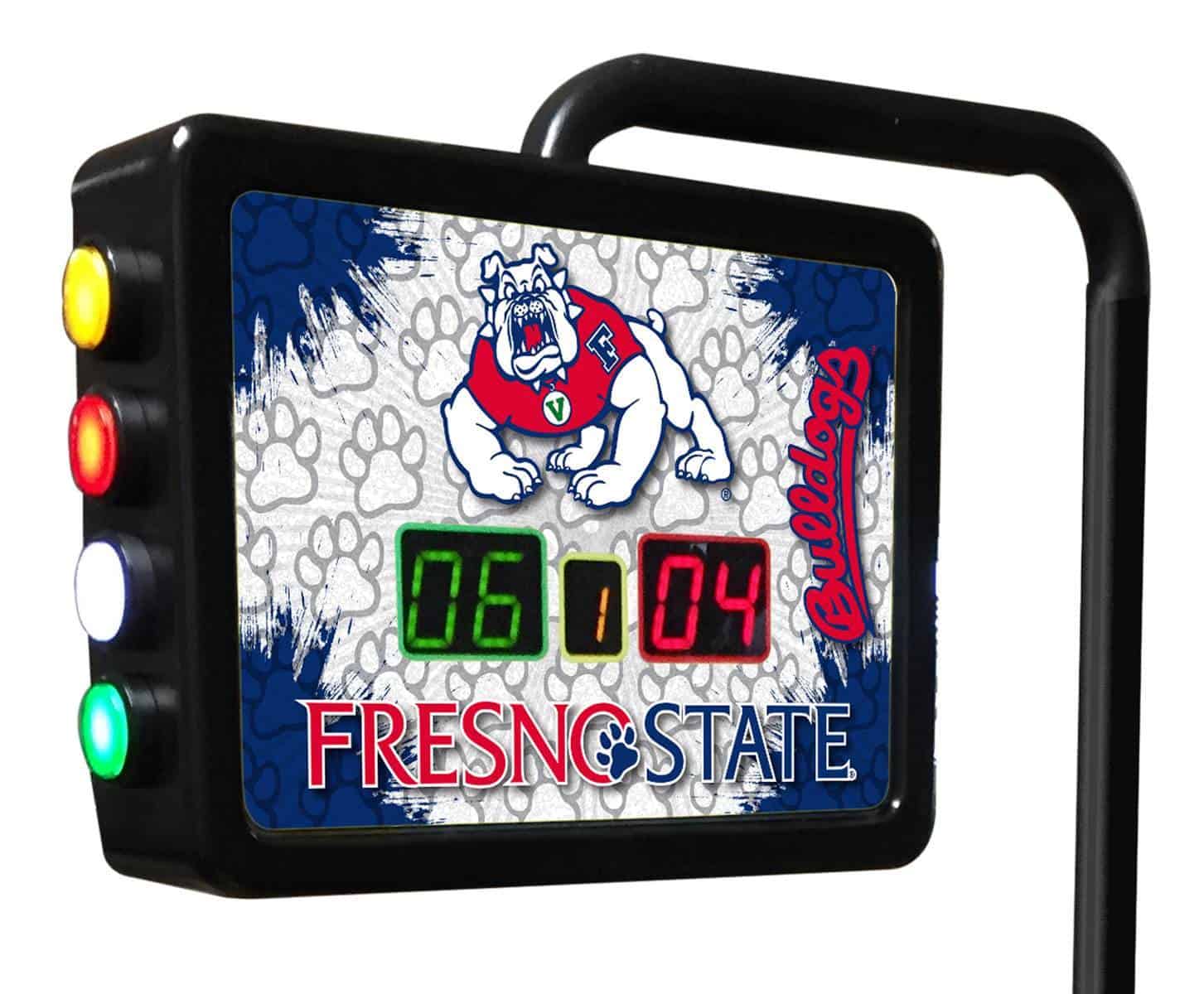 Elevate your game room experience with this officially licensed electronic shuffleboard scoring unit designed specifically for Fresno State University fans. This innovative scoring system eliminates the hassle of manual score tracking, providing a digital and user-friendly solution for your shuffleboard table. With color-coded buttons and an easy-to-read display, this scoring unit adds both functionality and style to your gaming setup.