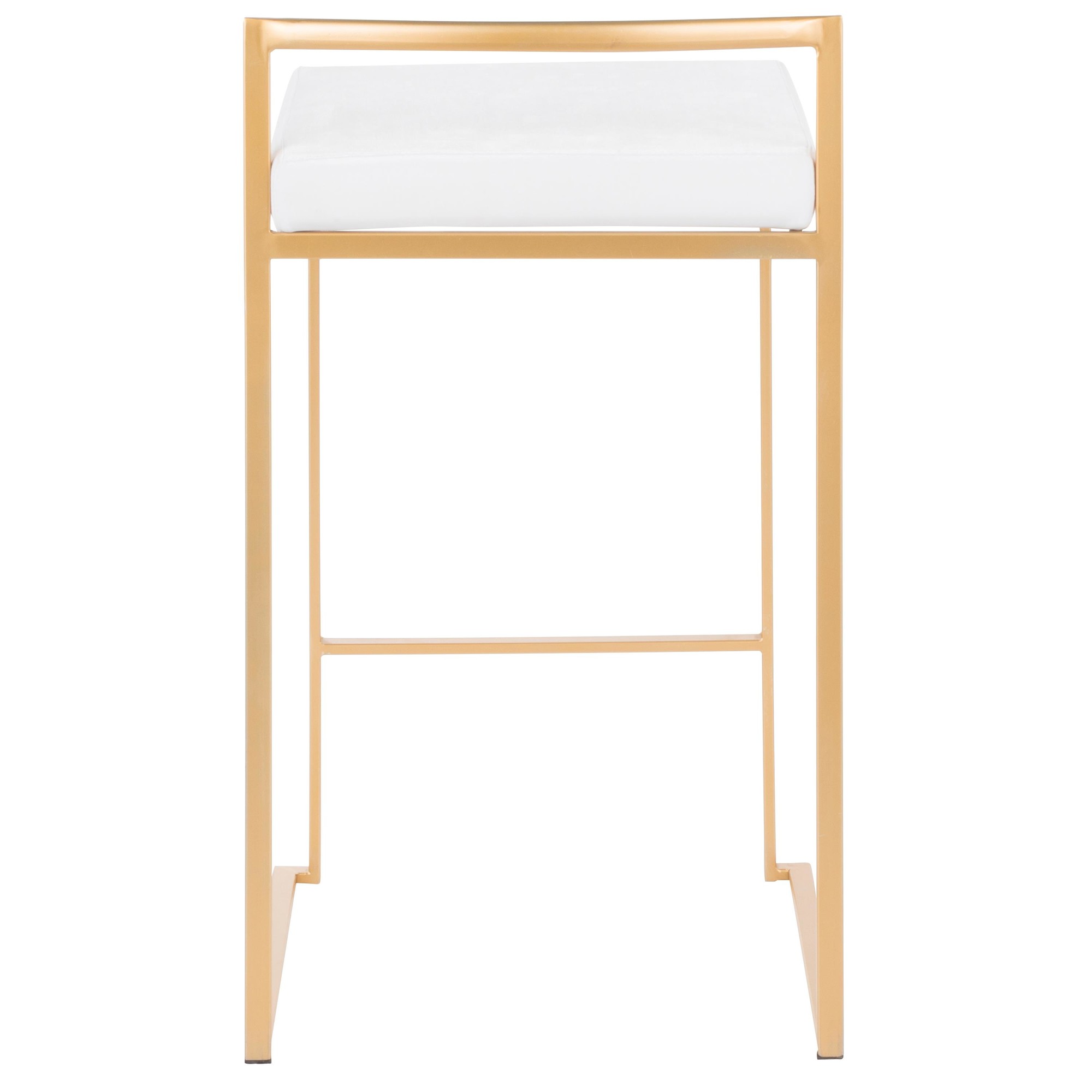Upgrade your man cave with the Fuji 26 Gold White Velvet Contemporary Stackable Stool. These stools offer glam/contemporary styling with a fixed counter height. Each stool features an upholstered padded seat for maximum comfort. The fully welded frame is not only durable but also stackable, making storage a breeze. This set includes three counter stools. With a seat depth of 15.5″ and a backrest height of 4.25″, these stools provide the perfect spot to relax. The color is a stylish combination of gold metal and white velvet. Made from velvet fabric, foam, and painted steel, these stools are designed for indoor use and can support up to 250 lbs each. Some assembly is required.