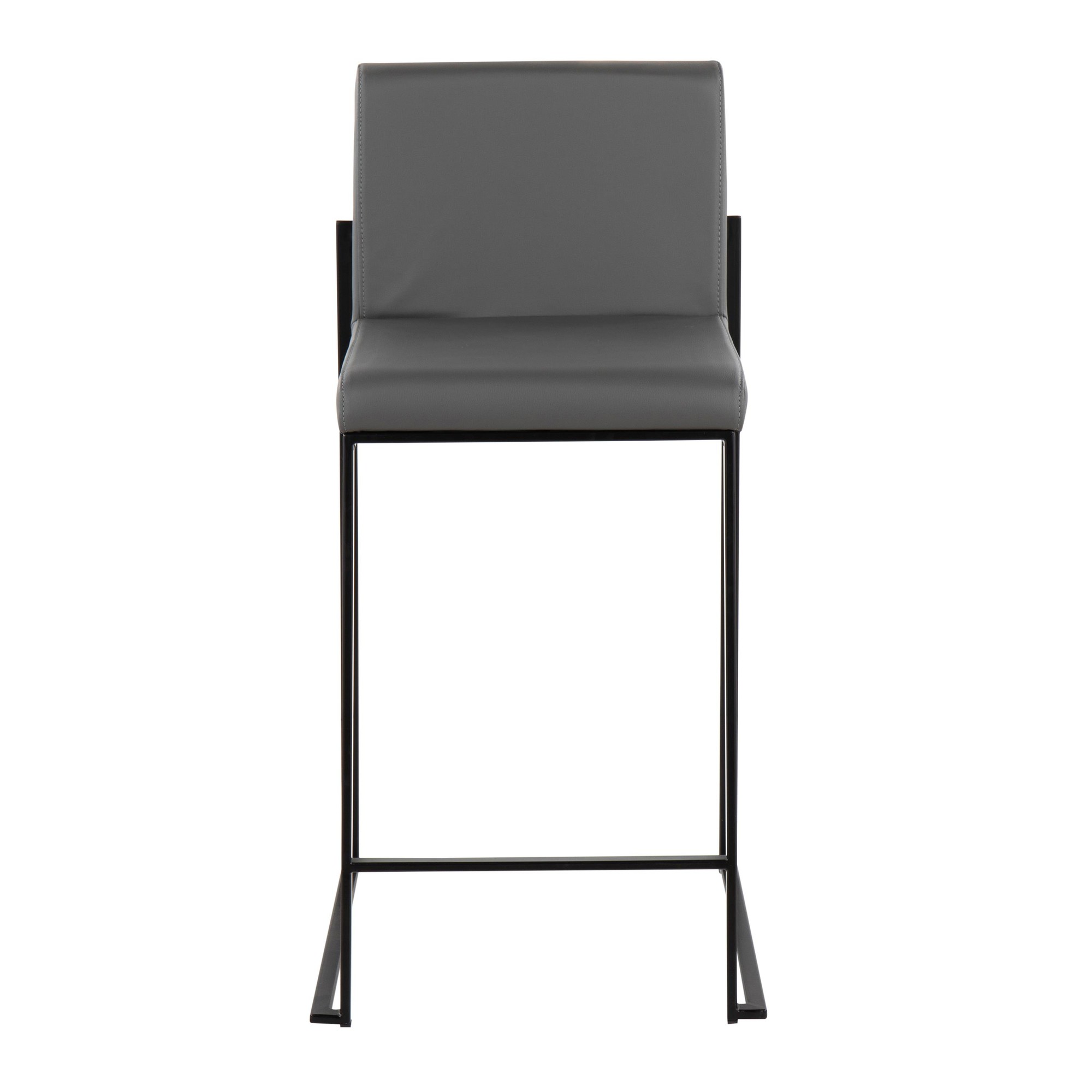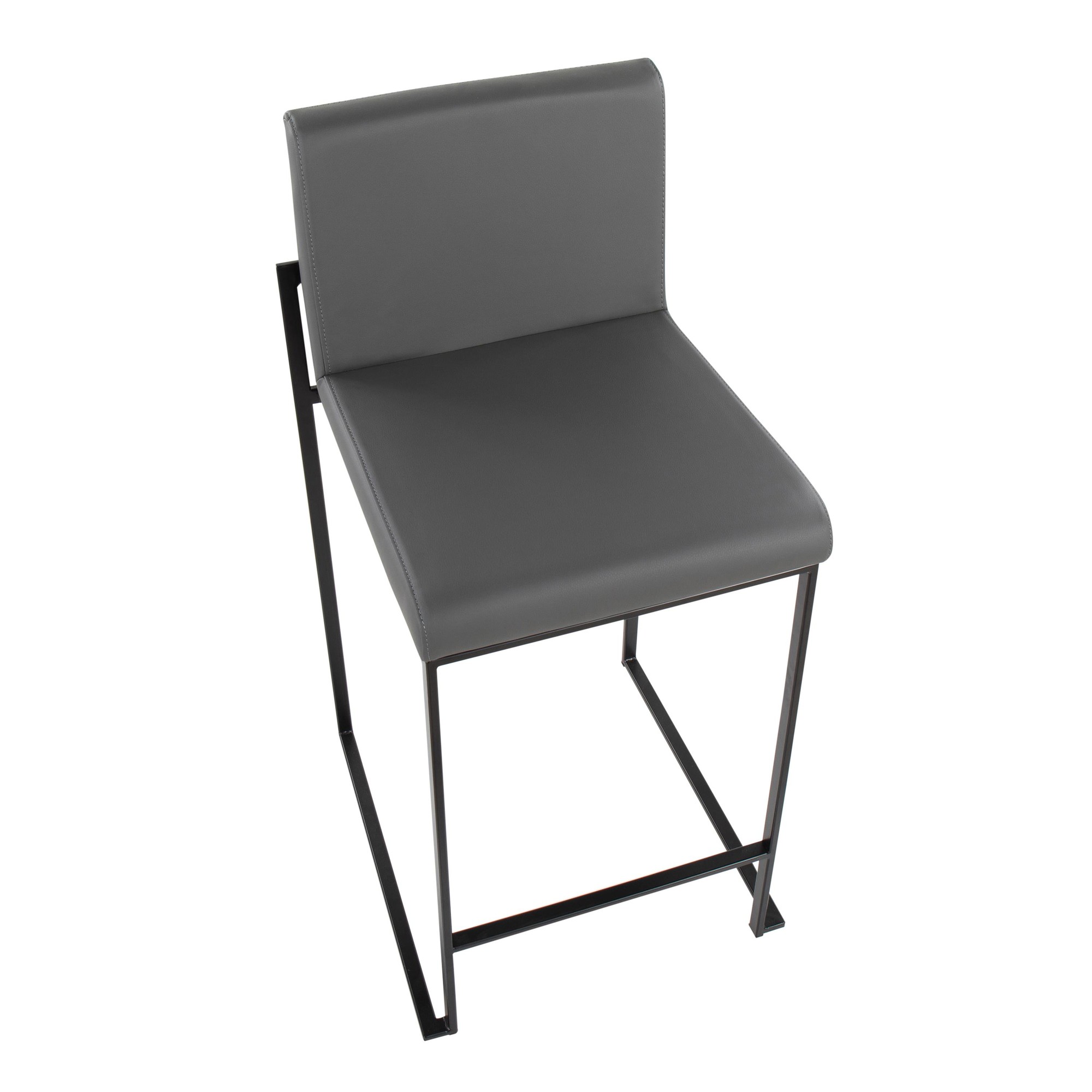 The Fuji High Back Counter Stool offers contemporary elegance with its extra-wide upholstered seat and stylish metal frame. Enjoy exceptional comfort with a high, padded backrest, making this counter stool a perfect addition to any dining space. Available in sleek color combinations to complement your décor. This set of three stools is designed for indoor use.