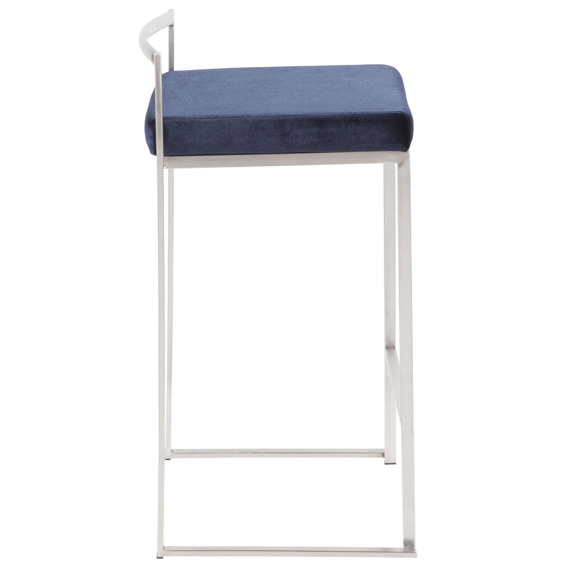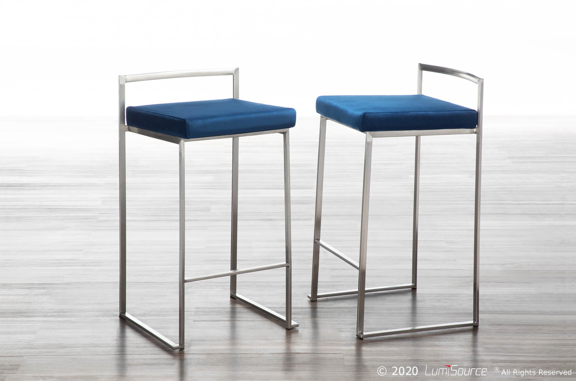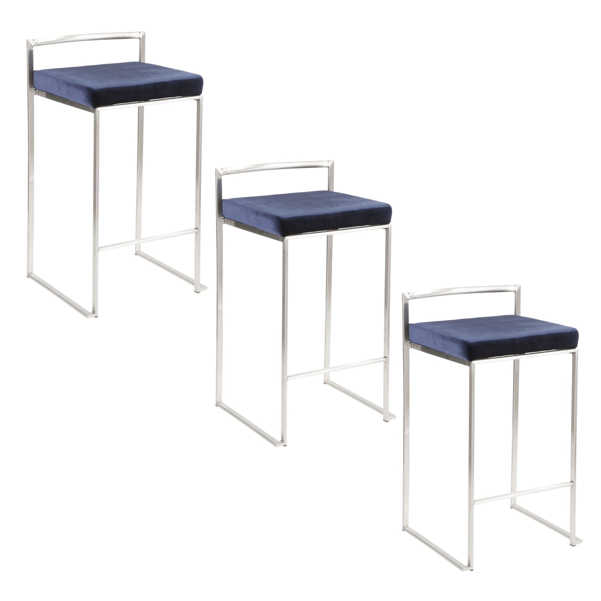 Fuji 26-Inch Contemporary Blue Velvet Stainless Steel Counter Stools (Set of 3)