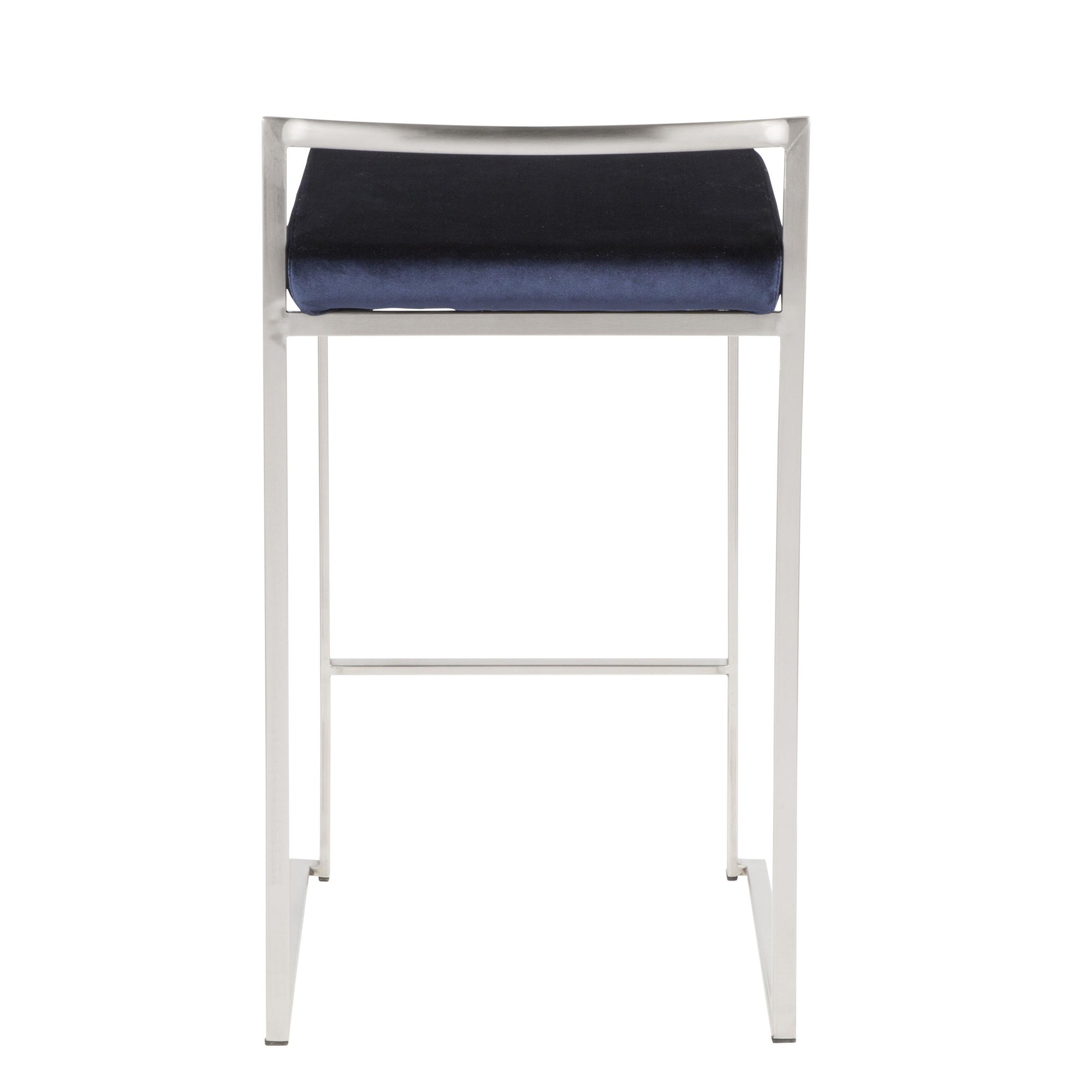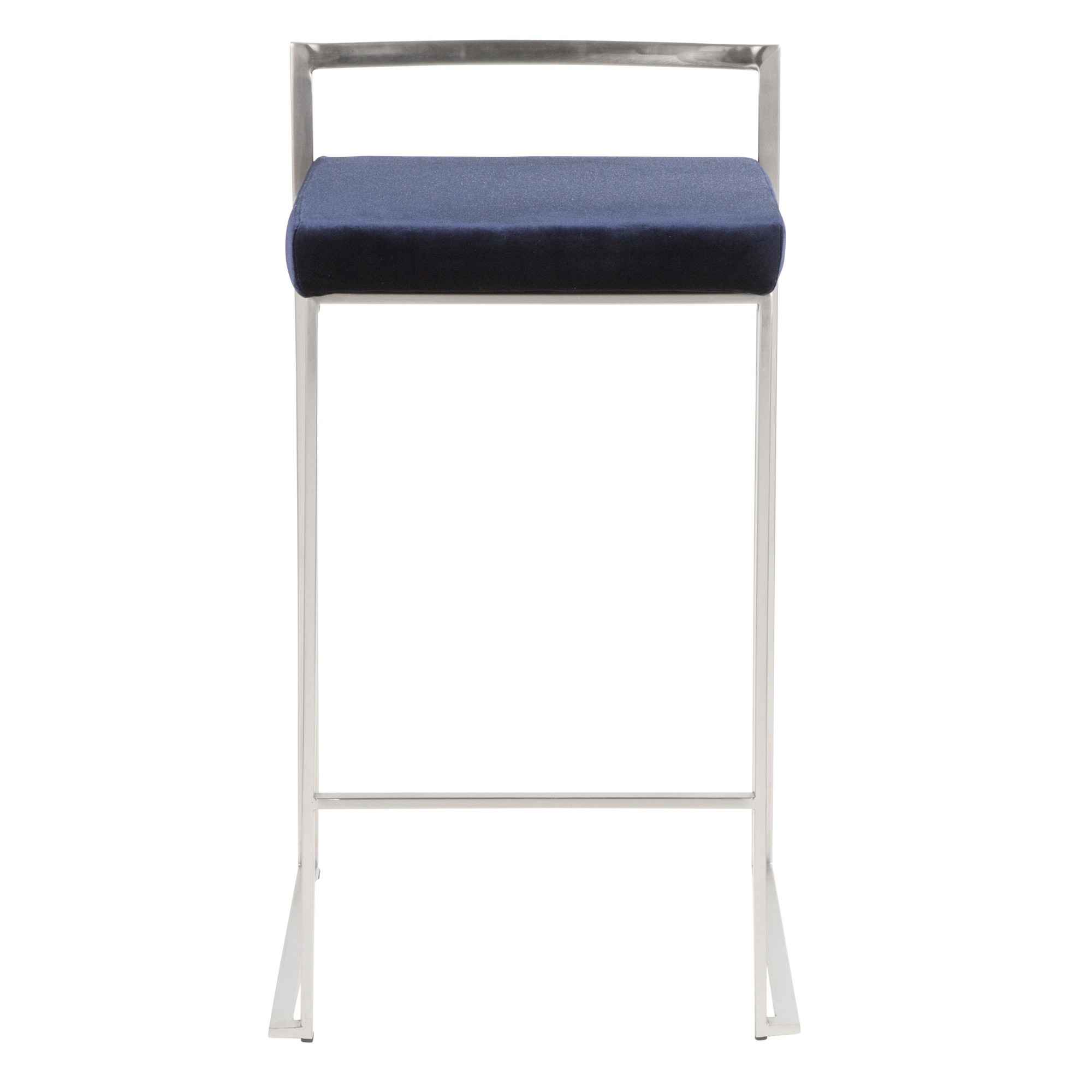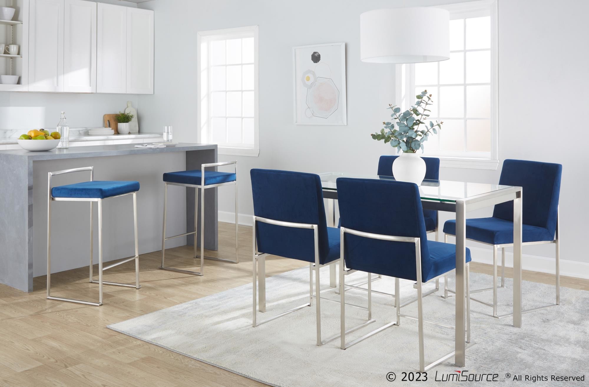 Fuji 26-Inch Contemporary Blue Velvet Stainless Steel Counter Stools (Set of 3)