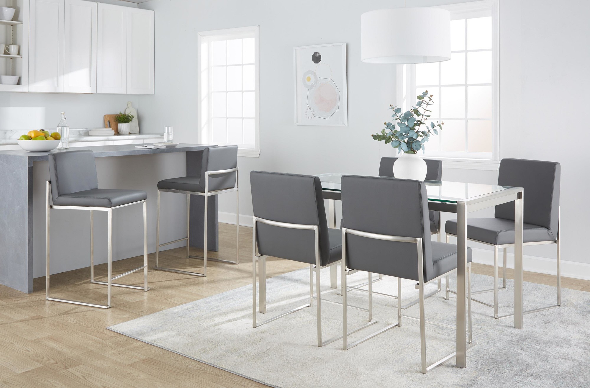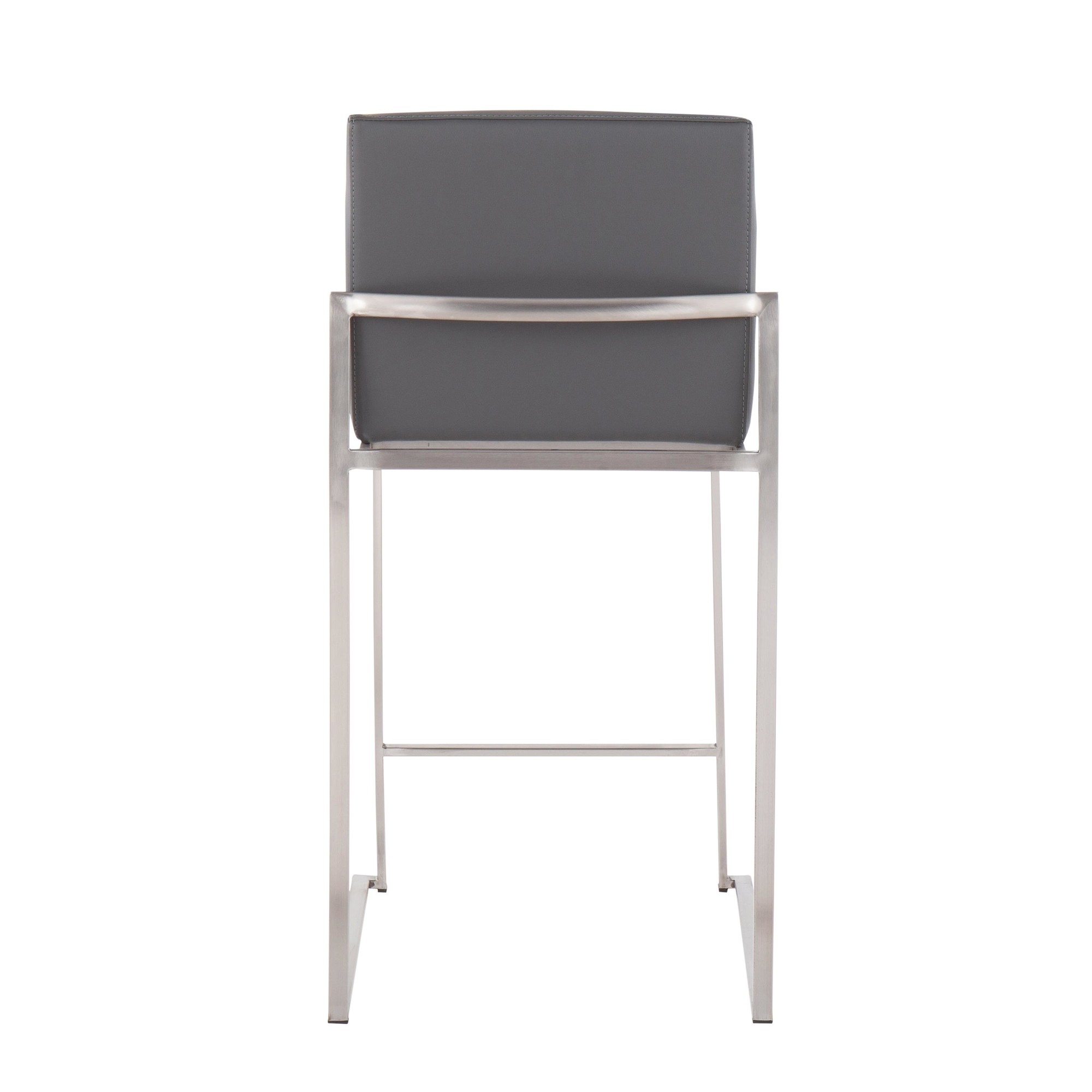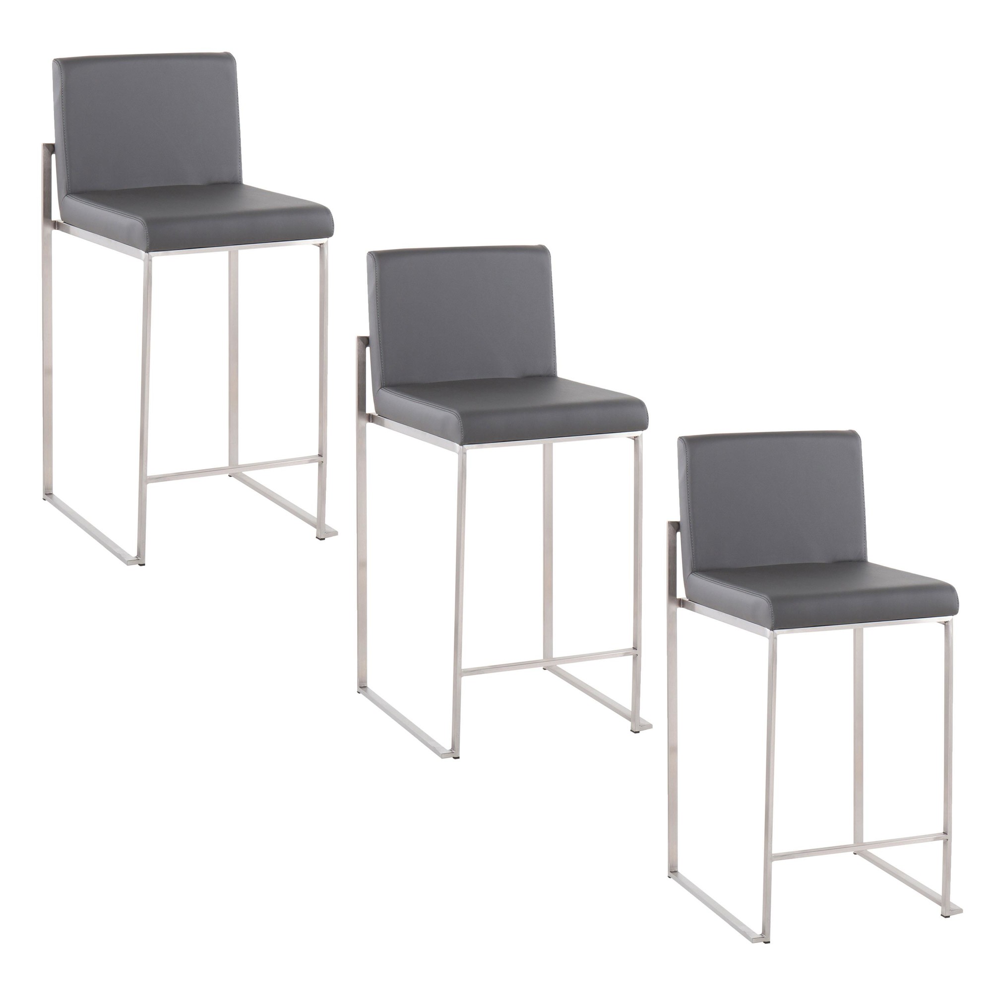 This stool’s contemporary styling is enhanced by its faux leather upholstery and padded seat and backrest. Sold in sets of three, these fixed-height counter stools are an easy way to complete your entertaining space.
