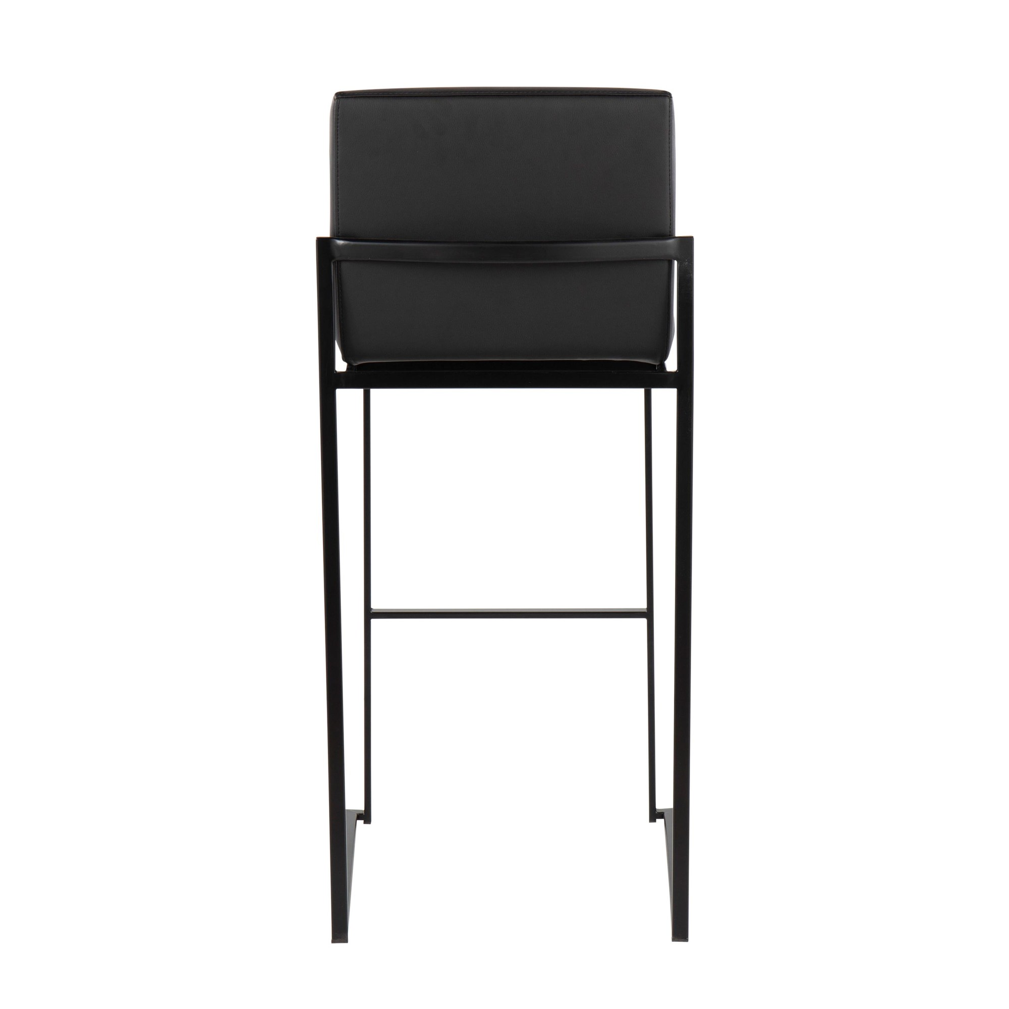 The Fuji High Back Barstool offers contemporary elegance. It features an extra-wide upholstered seat and a high padded backrest, ensuring comfortable seating. The stylish metal frame complements the sleek color combination, making it a perfect addition to any dining or bar area. Enjoy both comfort and style with this barstool.