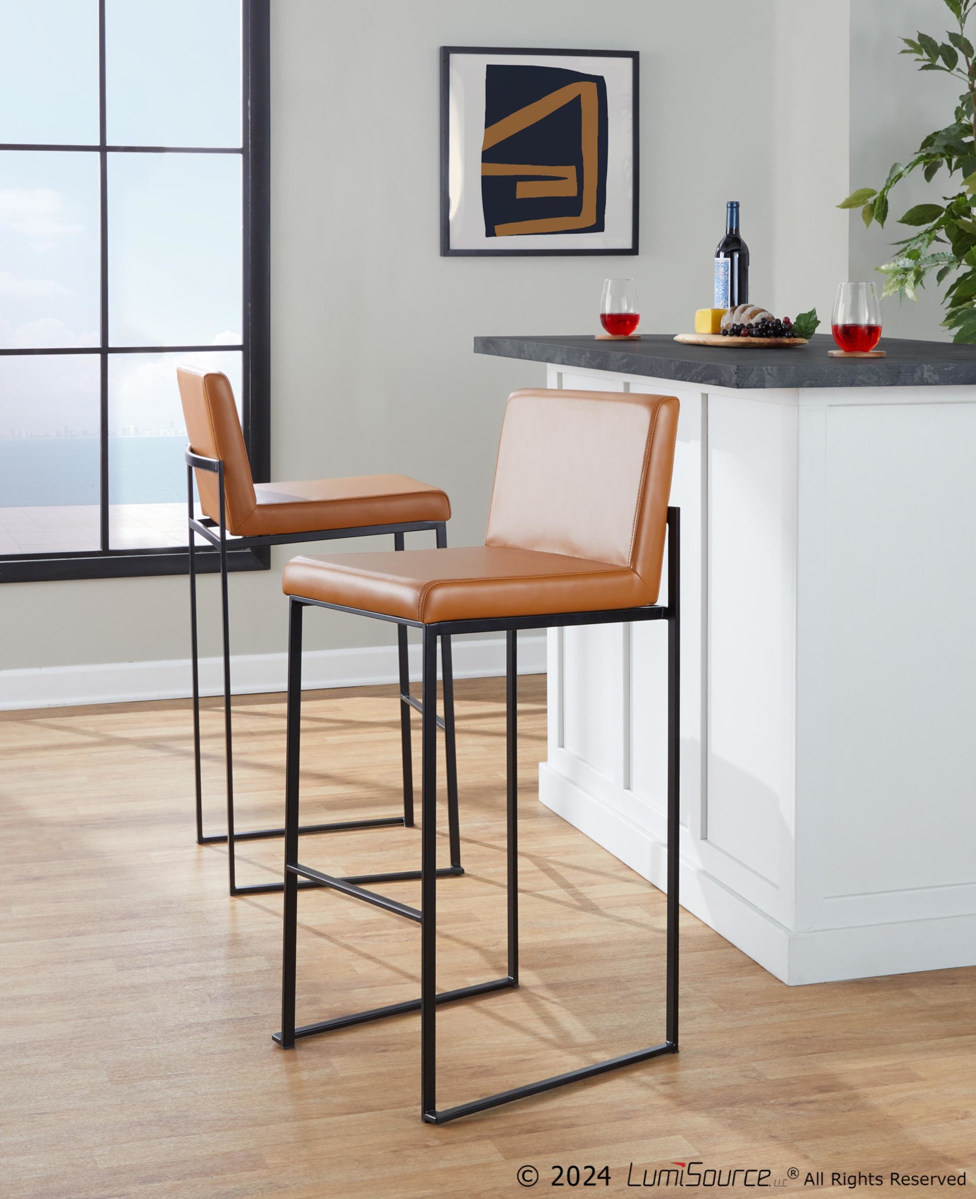 These bar stools are designed for both style and comfort. The padded seat and backrest provide excellent support, while the sleek color combination enhances your space. Enjoy the perfect blend of contemporary design and comfortable seating with the Fuji bar stools.