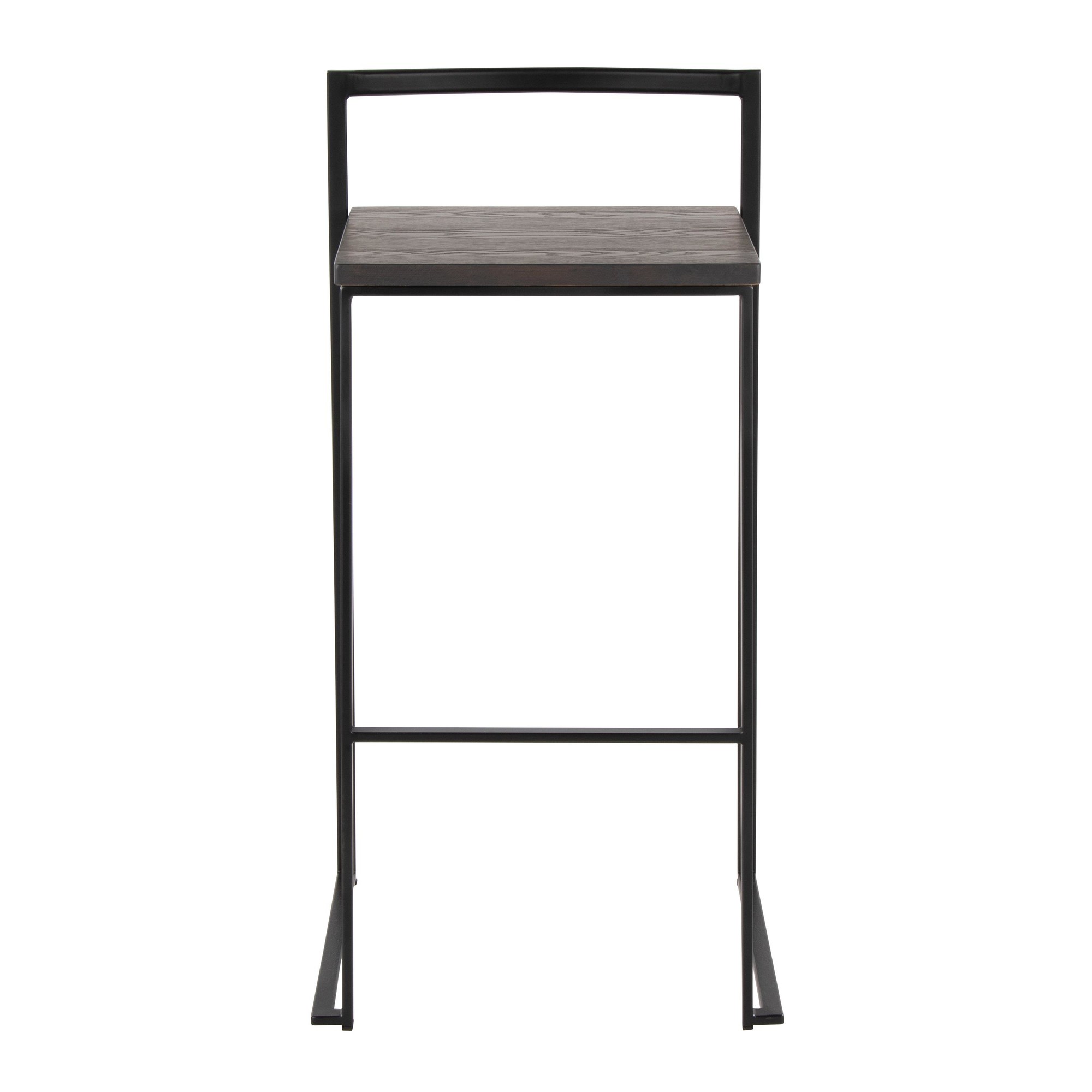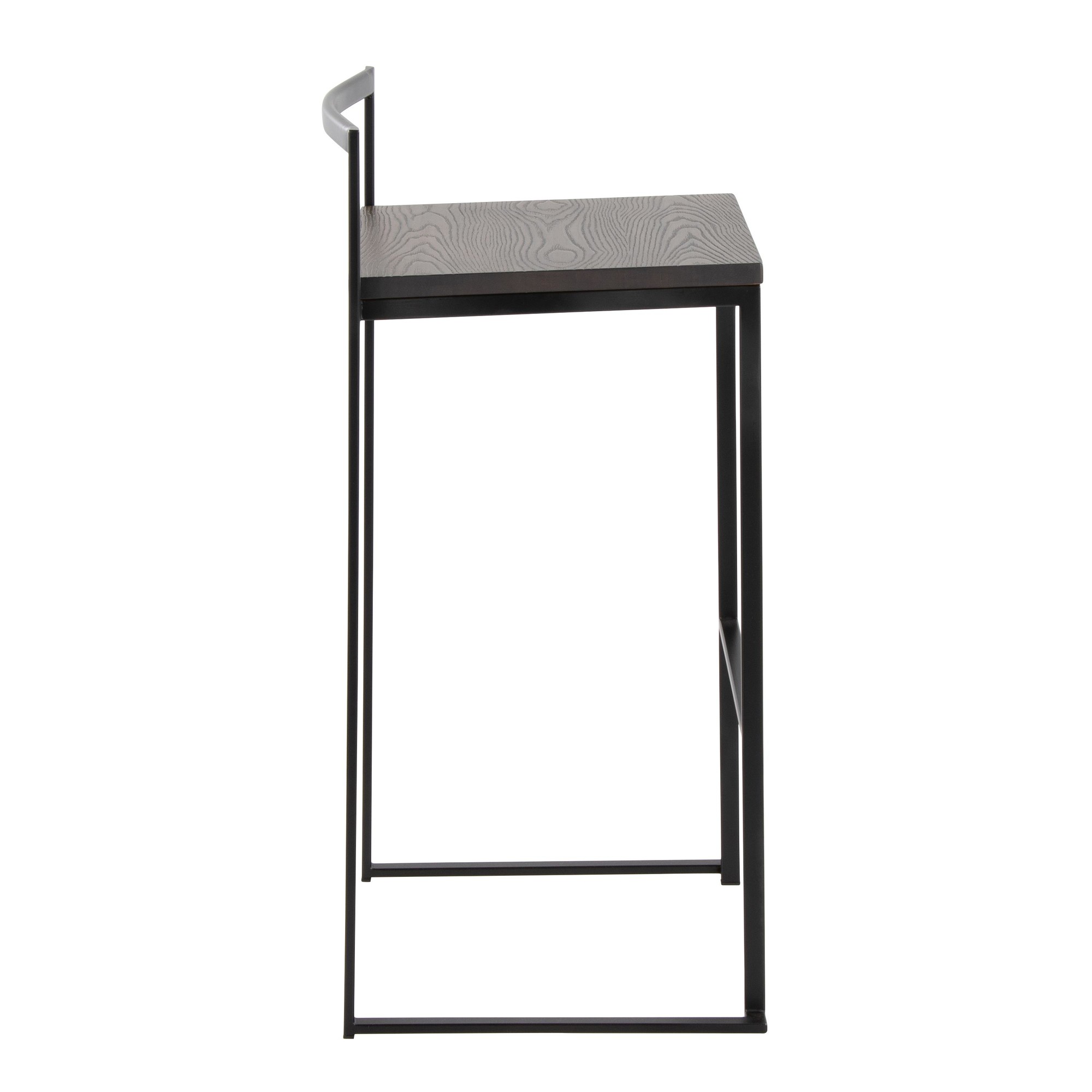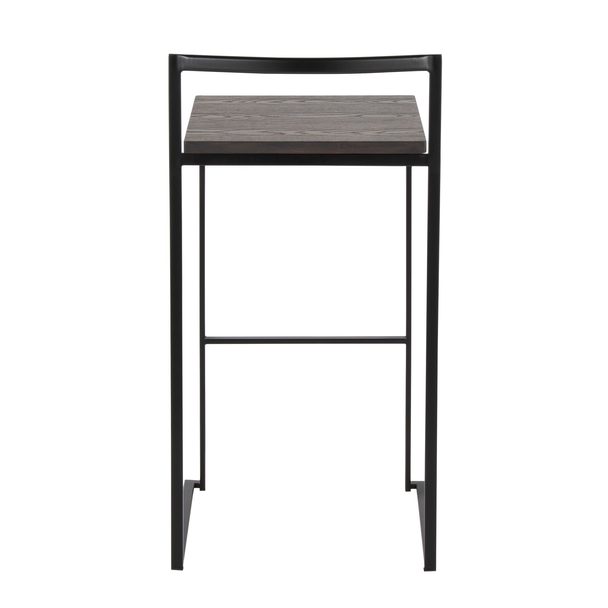 The Fuji 30 Industrial Black Metal Barstool offers simple elegance and astonishing comfort. Its lightweight, clean lines create a simplistic frame and backrest, providing excellent support. The sleek, wood-pressed grain bamboo seat adds a touch of sophistication. The stackable design makes this stool ideal for entertaining and easy storage.