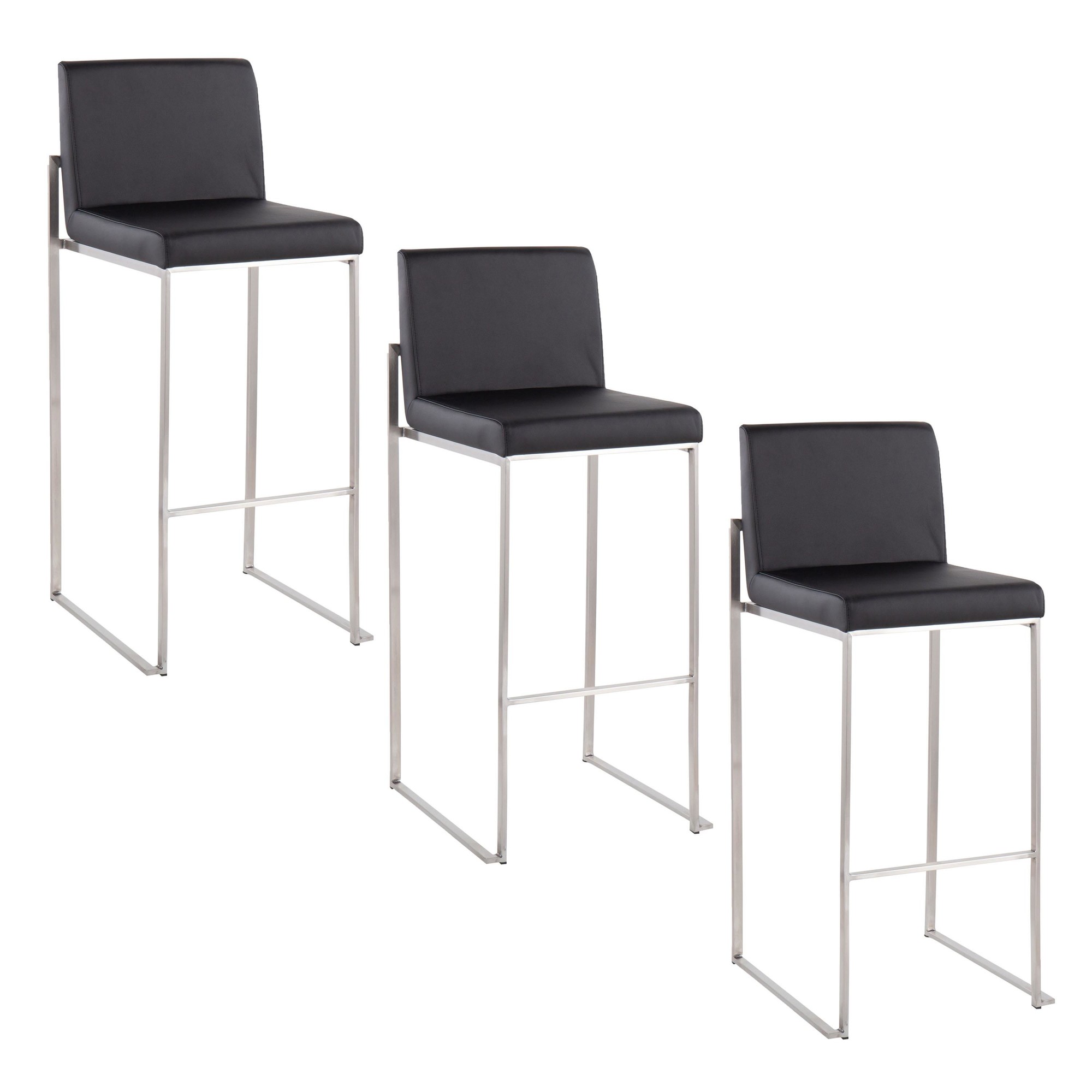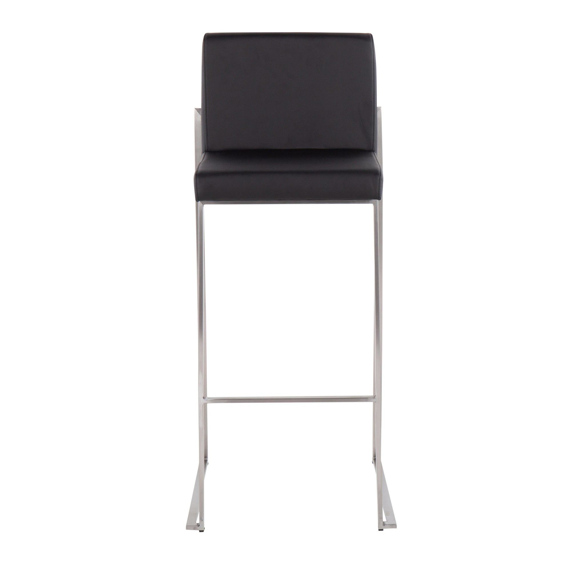 The Fuji High Back Barstool brings contemporary elegance to your space. This barstool features a wide, comfortable upholstered seat and a high, padded backrest, perfect for relaxing at your bar. The stylish metal frame adds a touch of sophistication. Available in sleek color combinations, the Fuji barstool allows you to choose the perfect look for your dining or bar area. Enjoy the comfort and style of this contemporary barstool set.