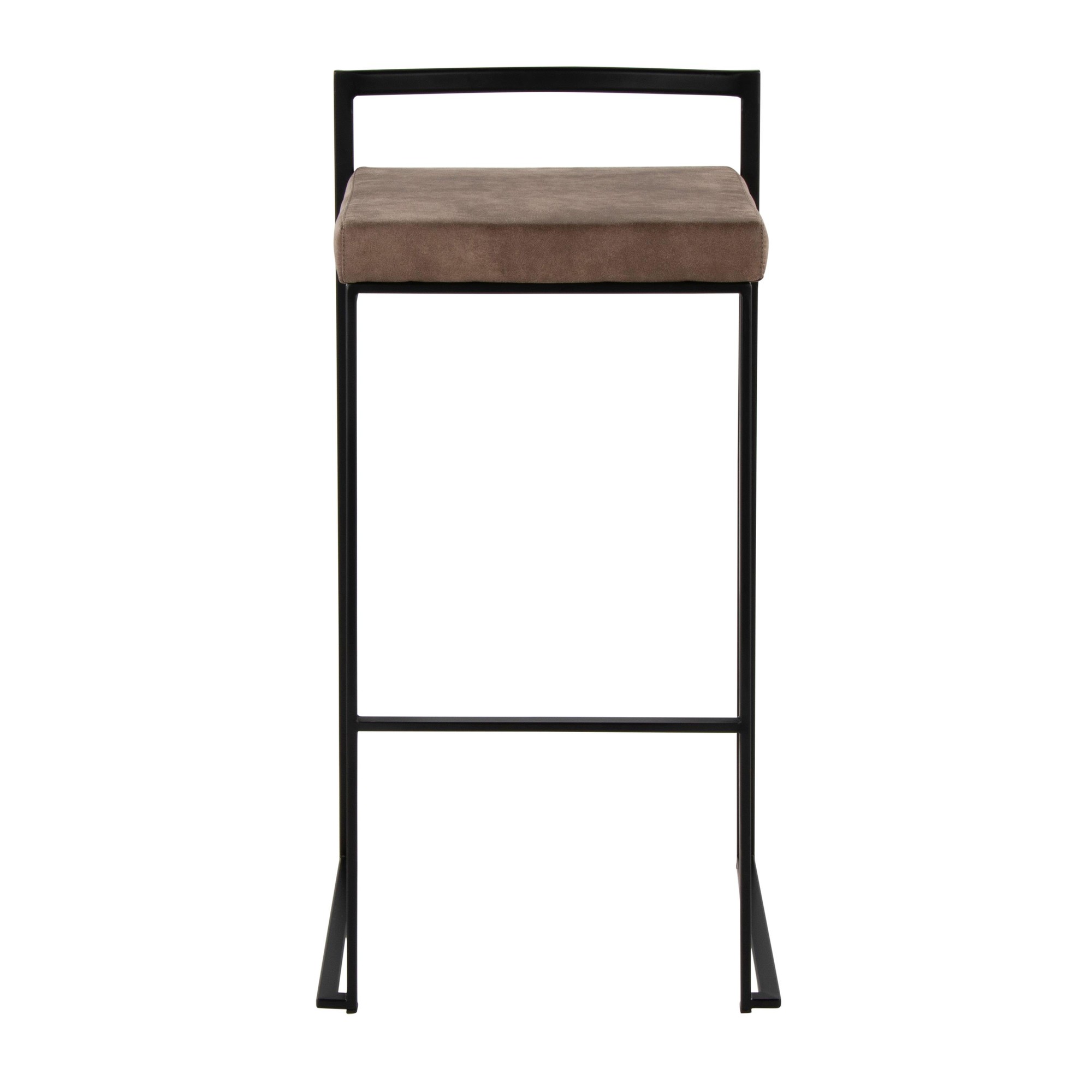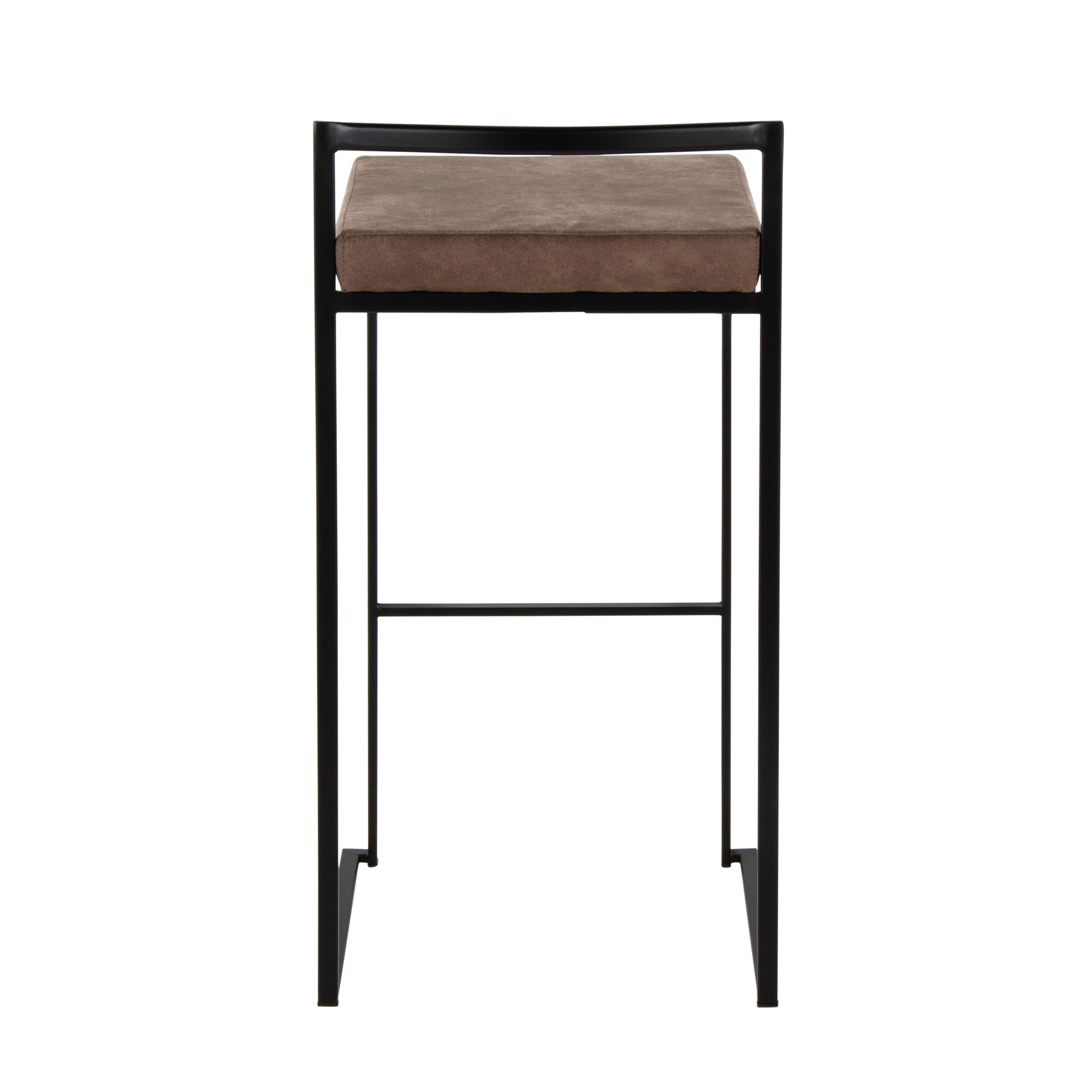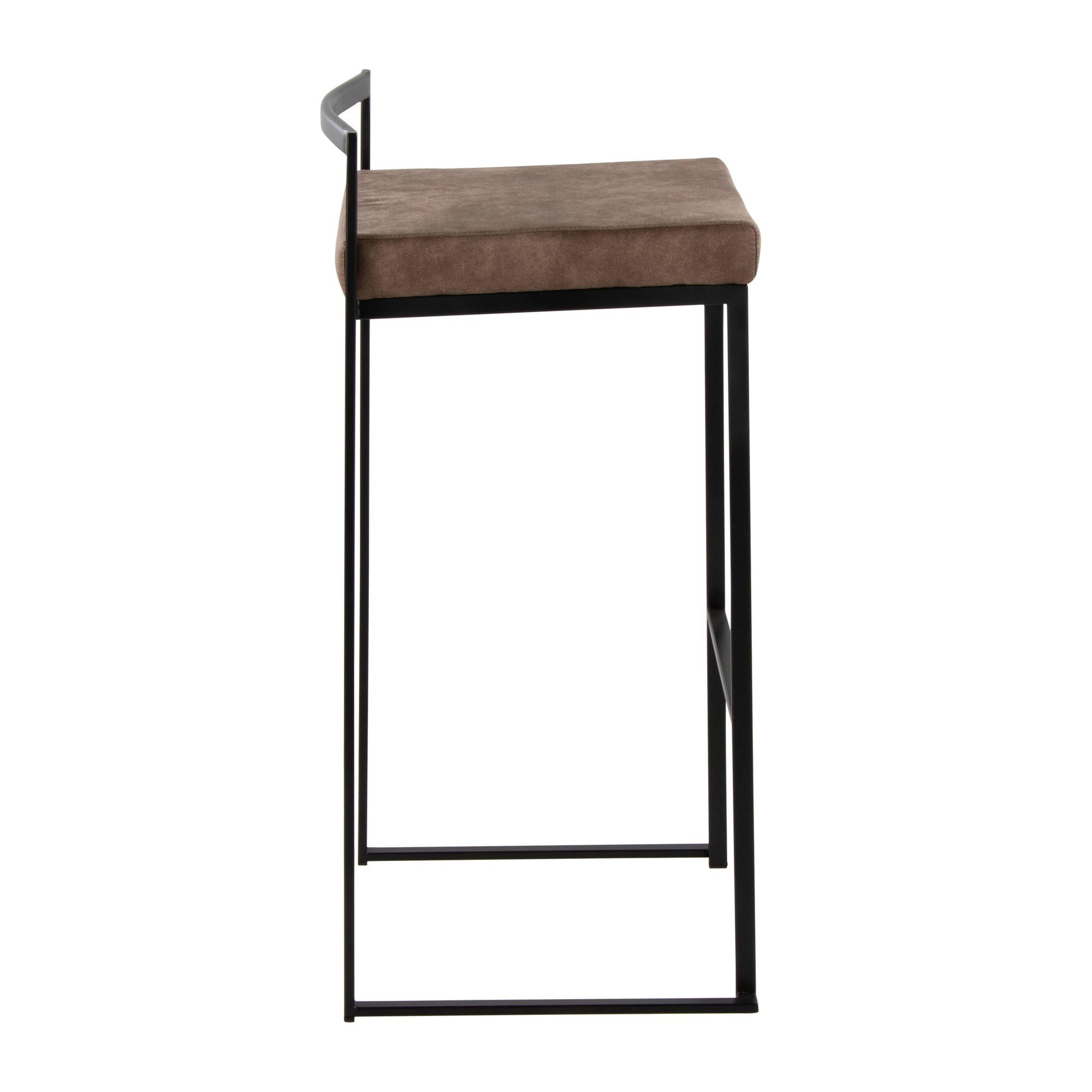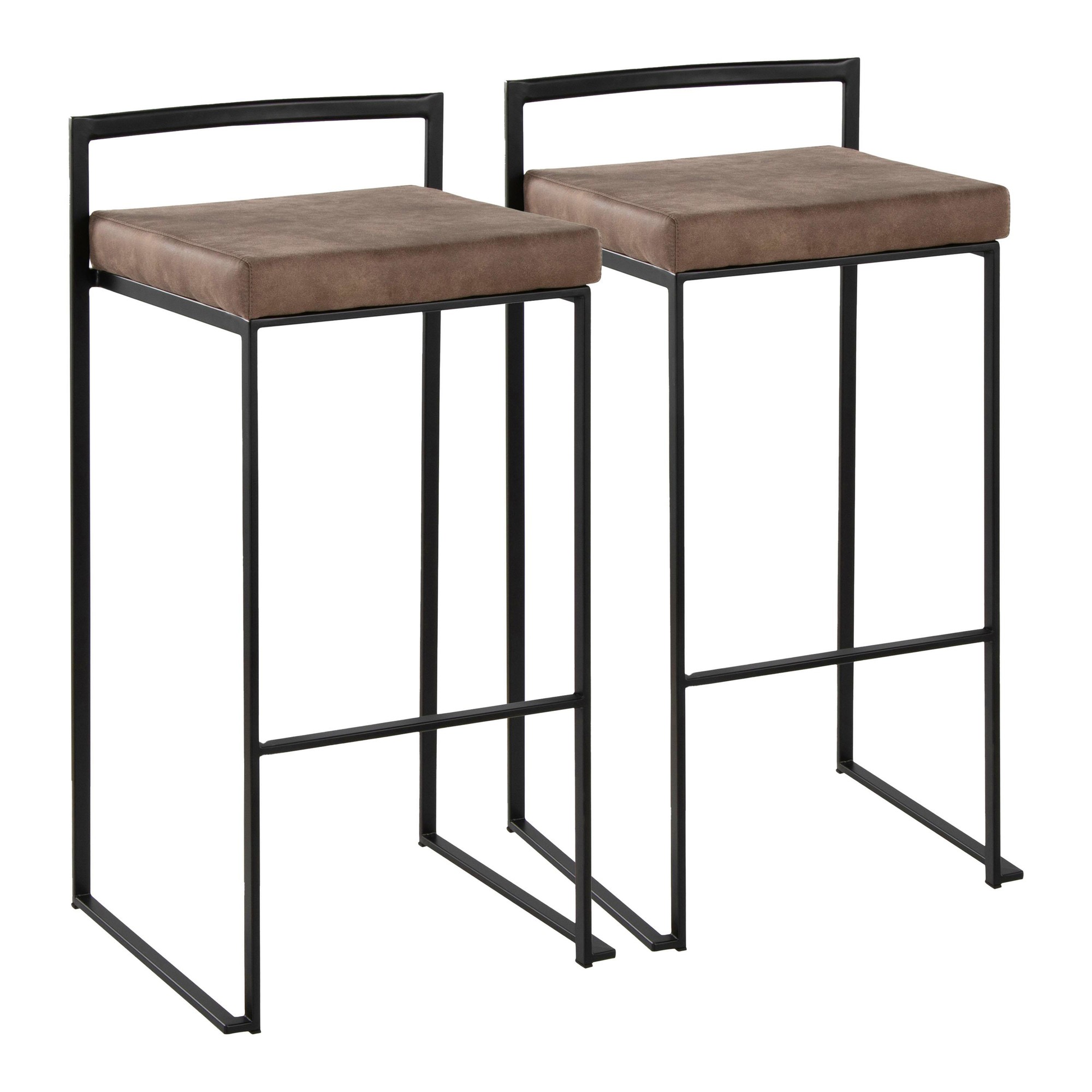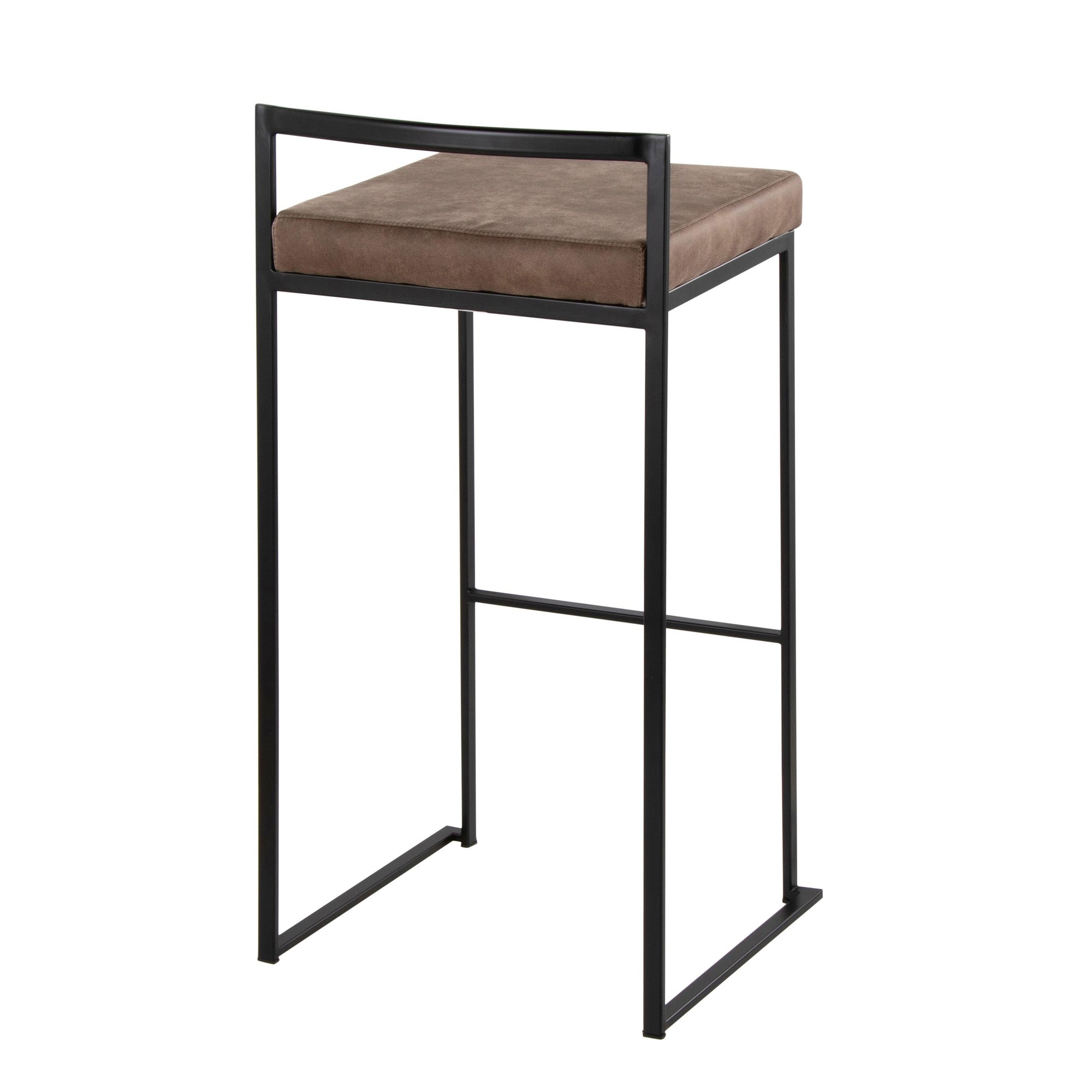 The Fuji Black Metal Brown Cowboy Fabric Contemporary Barstools offer simple elegance and astonishing comfort. These barstools feature lightweight, thin lines that create a simplistic, fully assembled frame and backrest to support a thick, padded seat cushion. The stackable design makes them perfect for easy storage, adding convenience for entertaining.