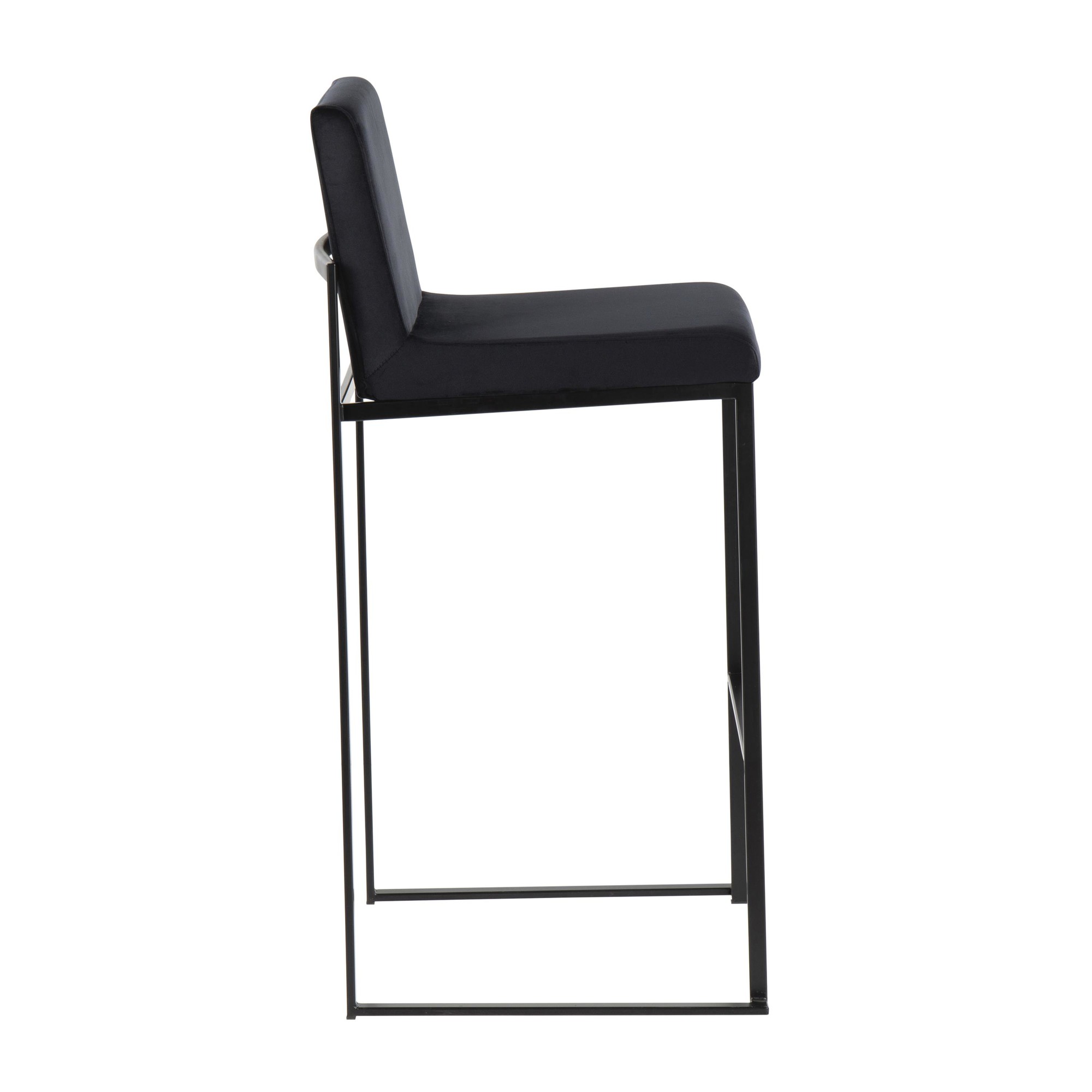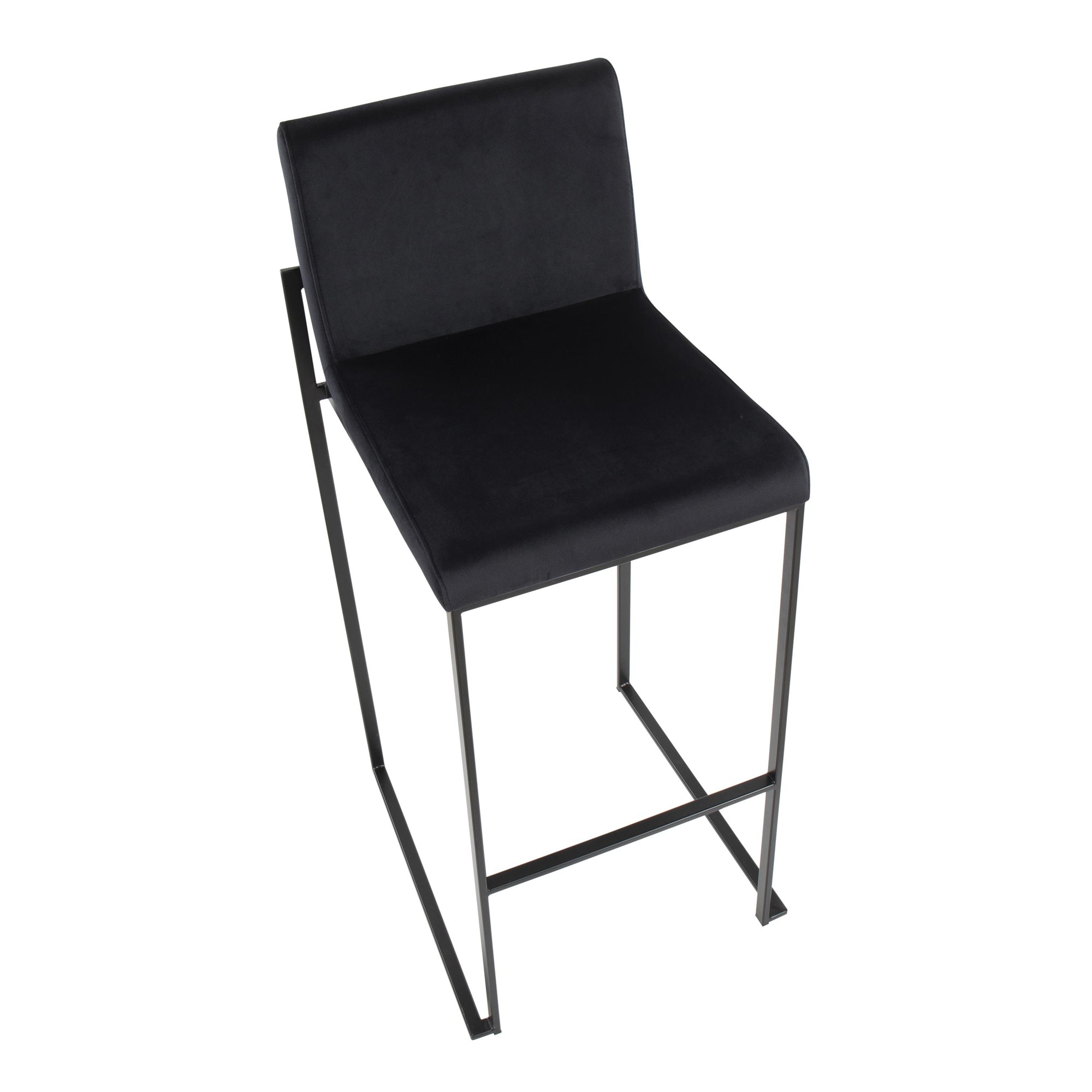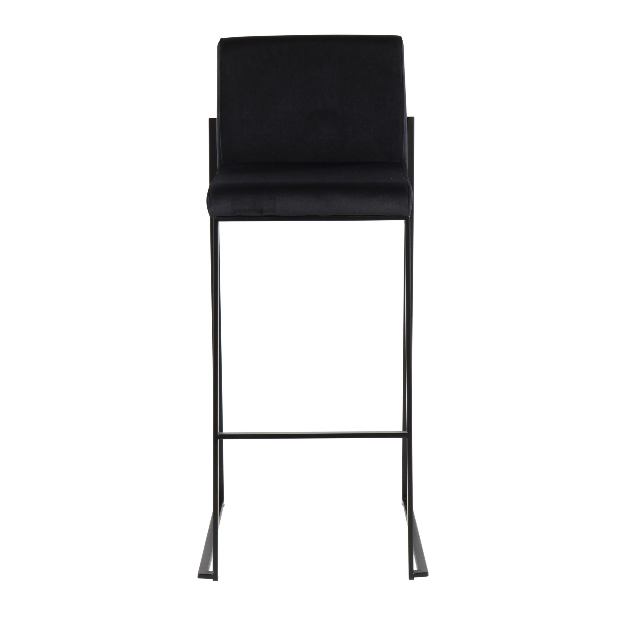 The Fuji High Back Bar Stool brings modern elegance to your space! This bar stool features an extra-wide upholstered seat for superior comfort and a high, supportive backrest. The stylish black metal frame complements the sleek black velvet upholstery, making it a perfect addition to any contemporary setting.