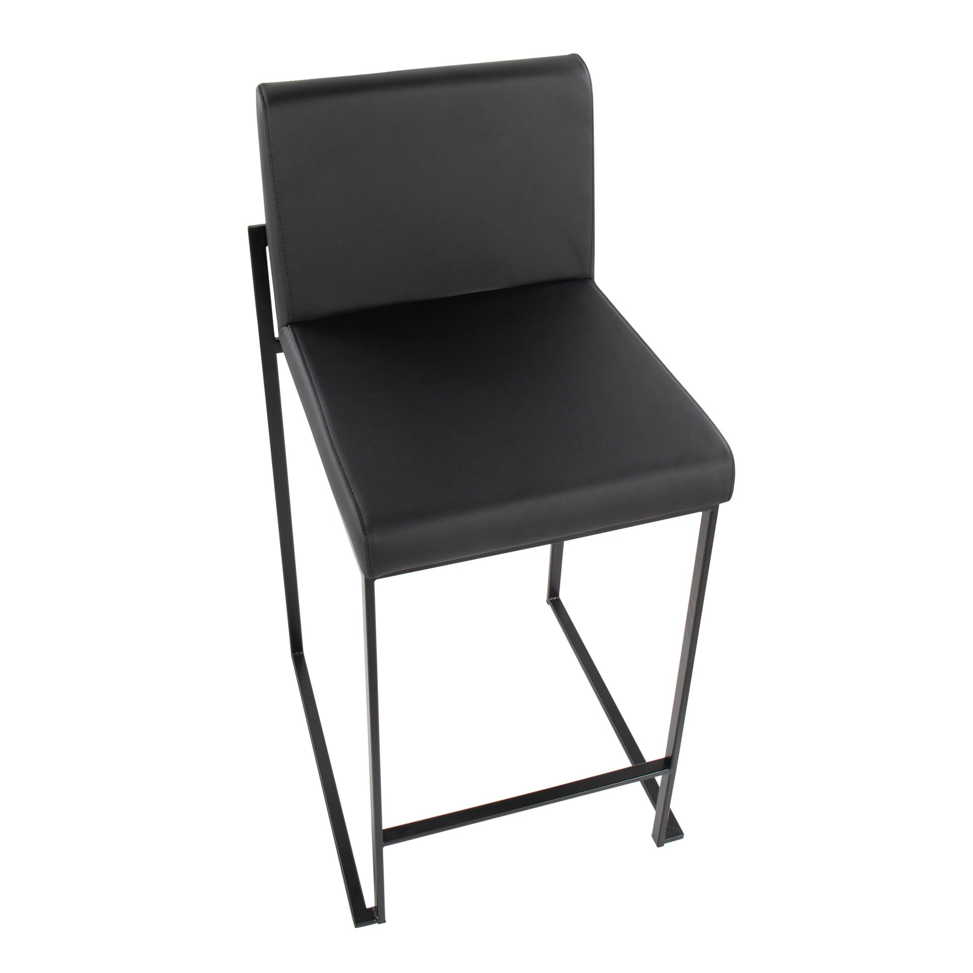 Add some style to your man cave with these Fuji Black Steel Contemporary High Back Counter Stools. This set features contemporary styling and a comfortable place to sit. The faux leather upholstery is easy to clean. The padded seat and backrest give you support. These stools have a fixed counter height, perfect for your bar area. You get two counter stools in each set. Product Specs: 19.5″L × 16.5″W × 35.5″H. Seat To Floor: 26″. These stools require assembly. They are made for indoor use only and have a weight limit of 250 lbs each. The color is black steel with black. The material is PU leather, foam, and painted steel.