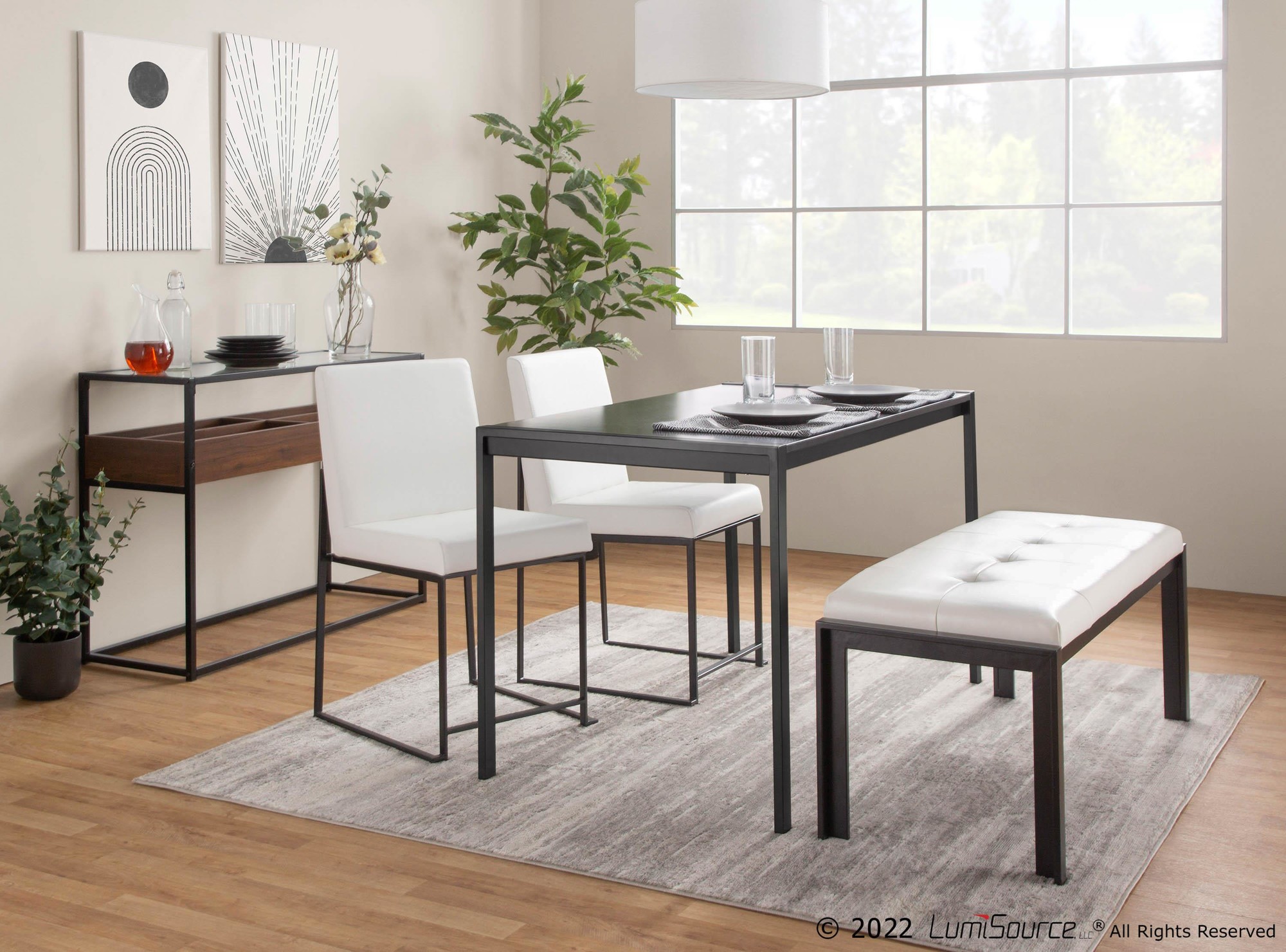 The Fuji Dinette Table is a sleek and sophisticated addition to any dining space. Its streamlined design features a solid metal frame paired with a black wood tabletop, creating a striking focal point. This table comfortably seats six, making it perfect for both everyday meals and entertaining.