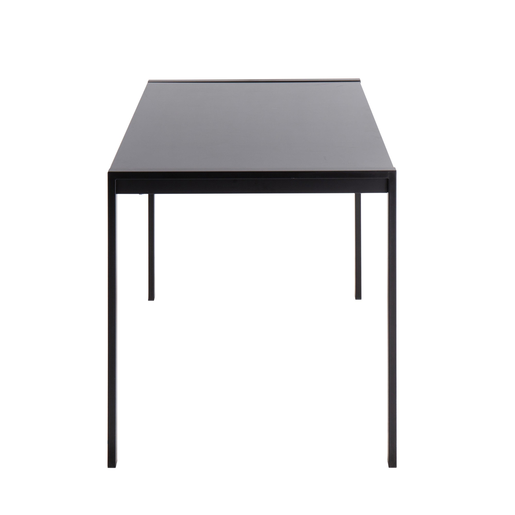 Enjoy its contemporary styling and fixed dining table height. The black wood top and black metal base combine for a modern aesthetic, ensuring this table will be a conversation starter.