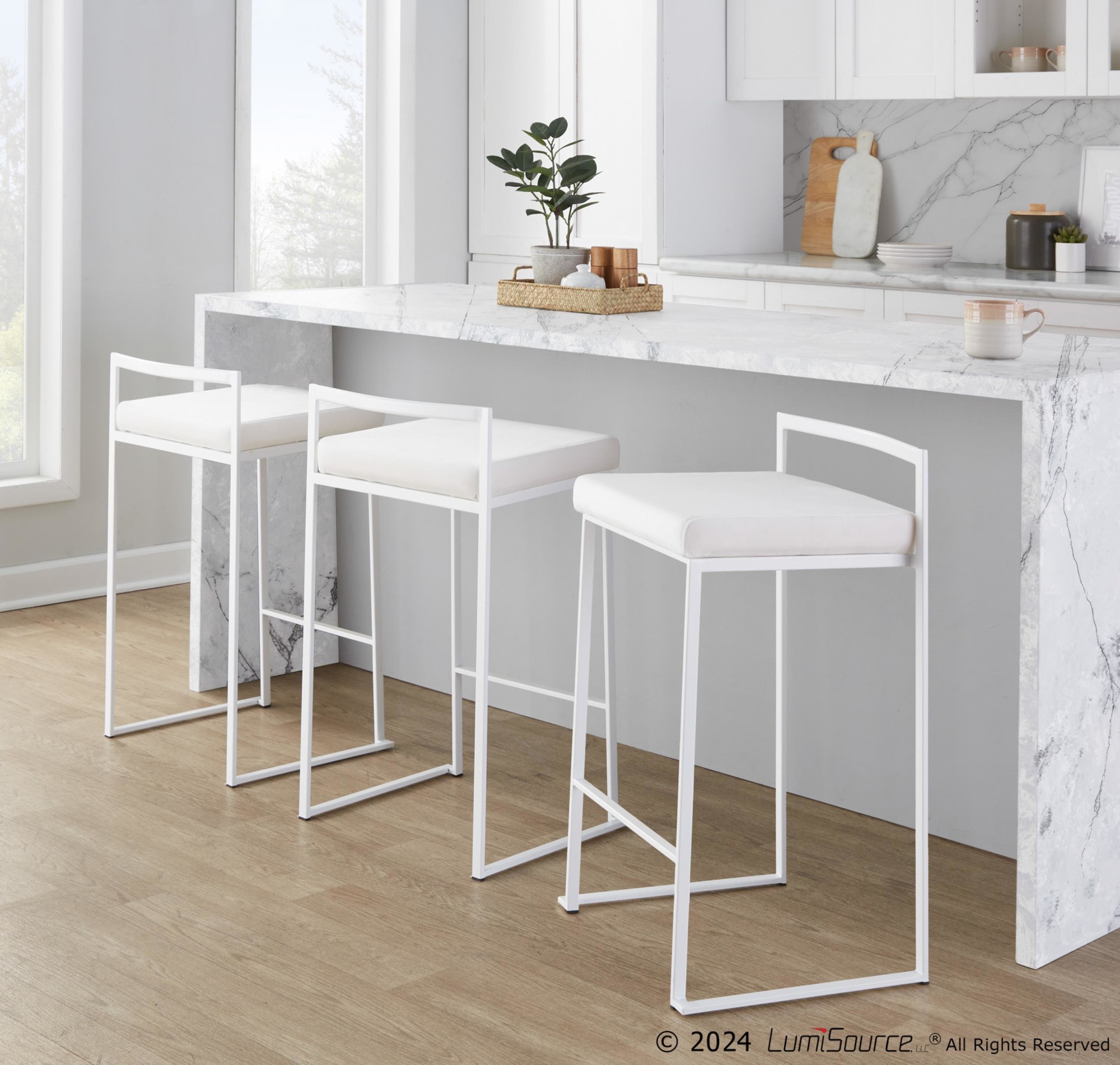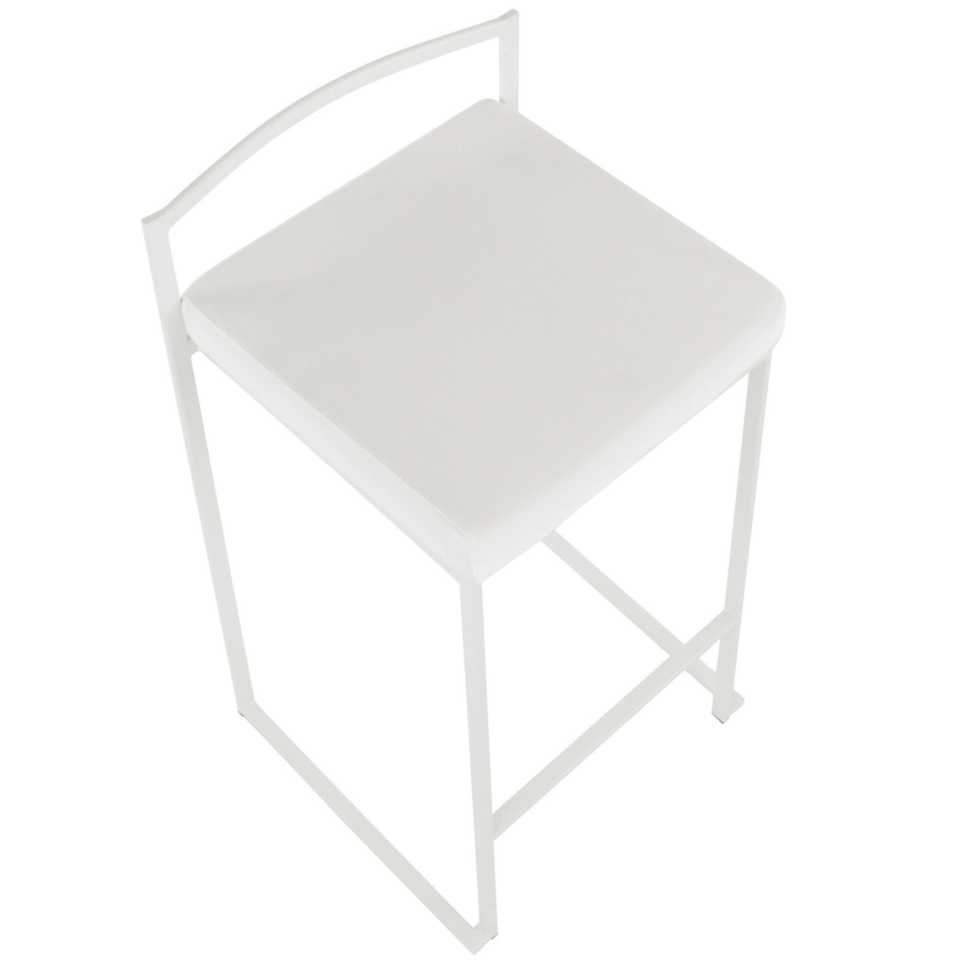 Fuji Contemporary White Velvet Stackable Counter Stools (Set of 2) (Set of 2)