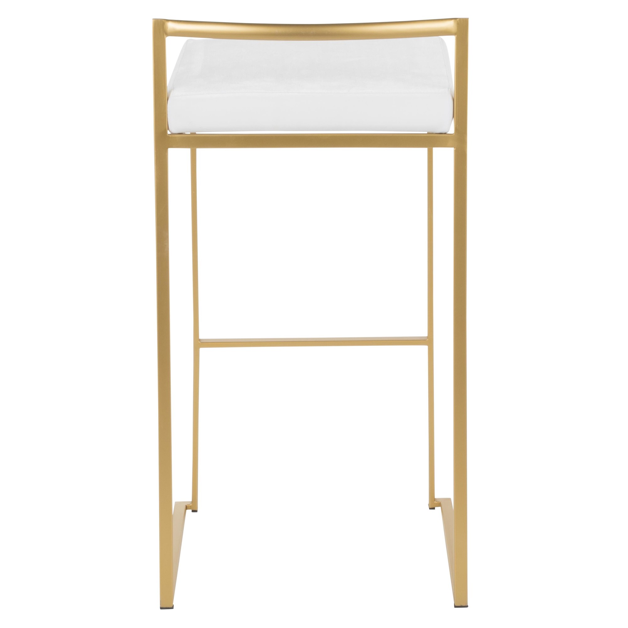 Fuji Gold White Velvet Glam Contemporary Barstool 30-Inch (Set of 2)