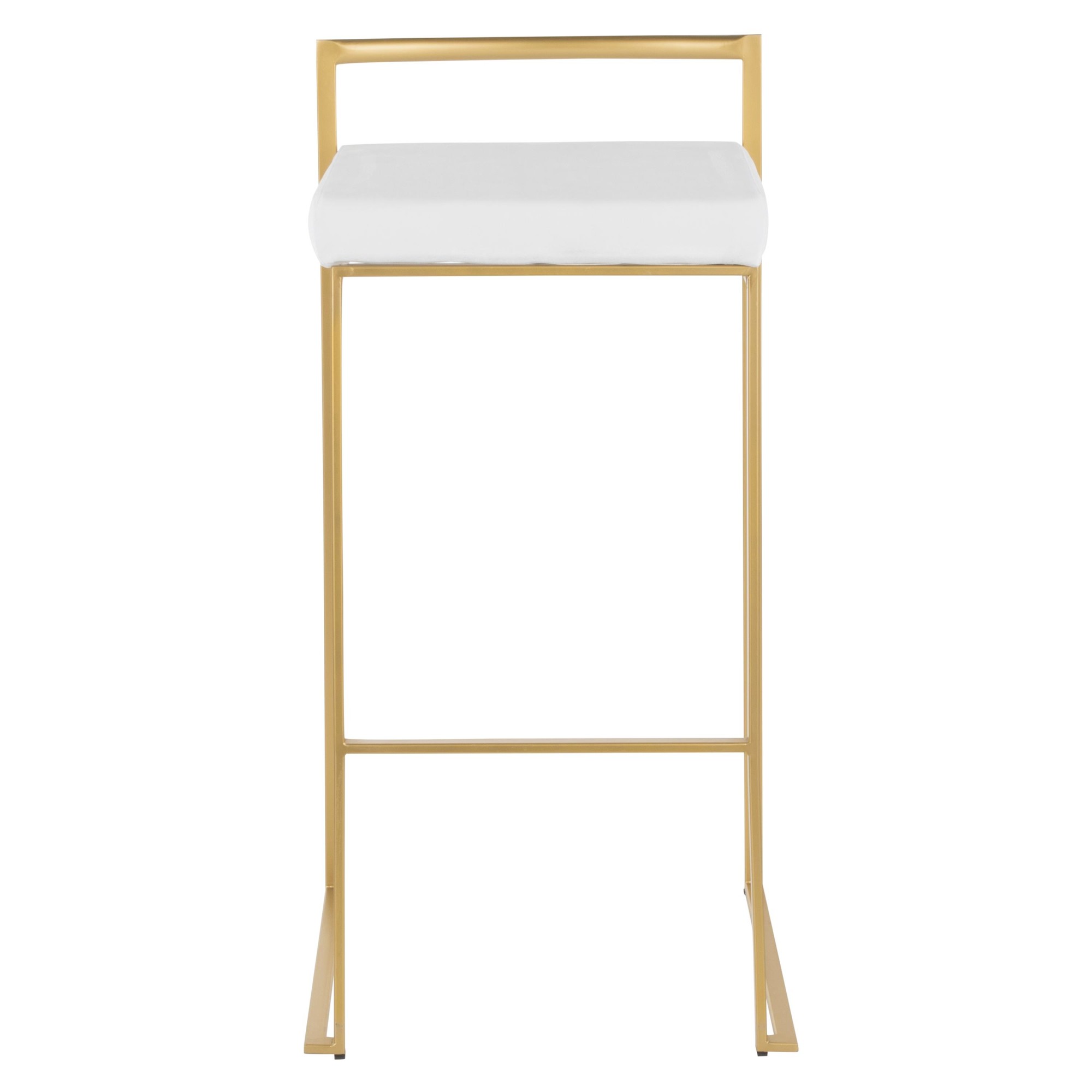The Fuji Gold White Velvet Glam Contemporary Barstool combines simple elegance with astonishing comfort. Its lightweight design features thin lines creating a simplistic, fully assembled frame and backrest, offering excellent support with a thick, padded seat cushion. The stackable design is ideal for easy storage, making it perfect for entertaining. With its stylishness, the Fuji barstool is sure to complement any decor.