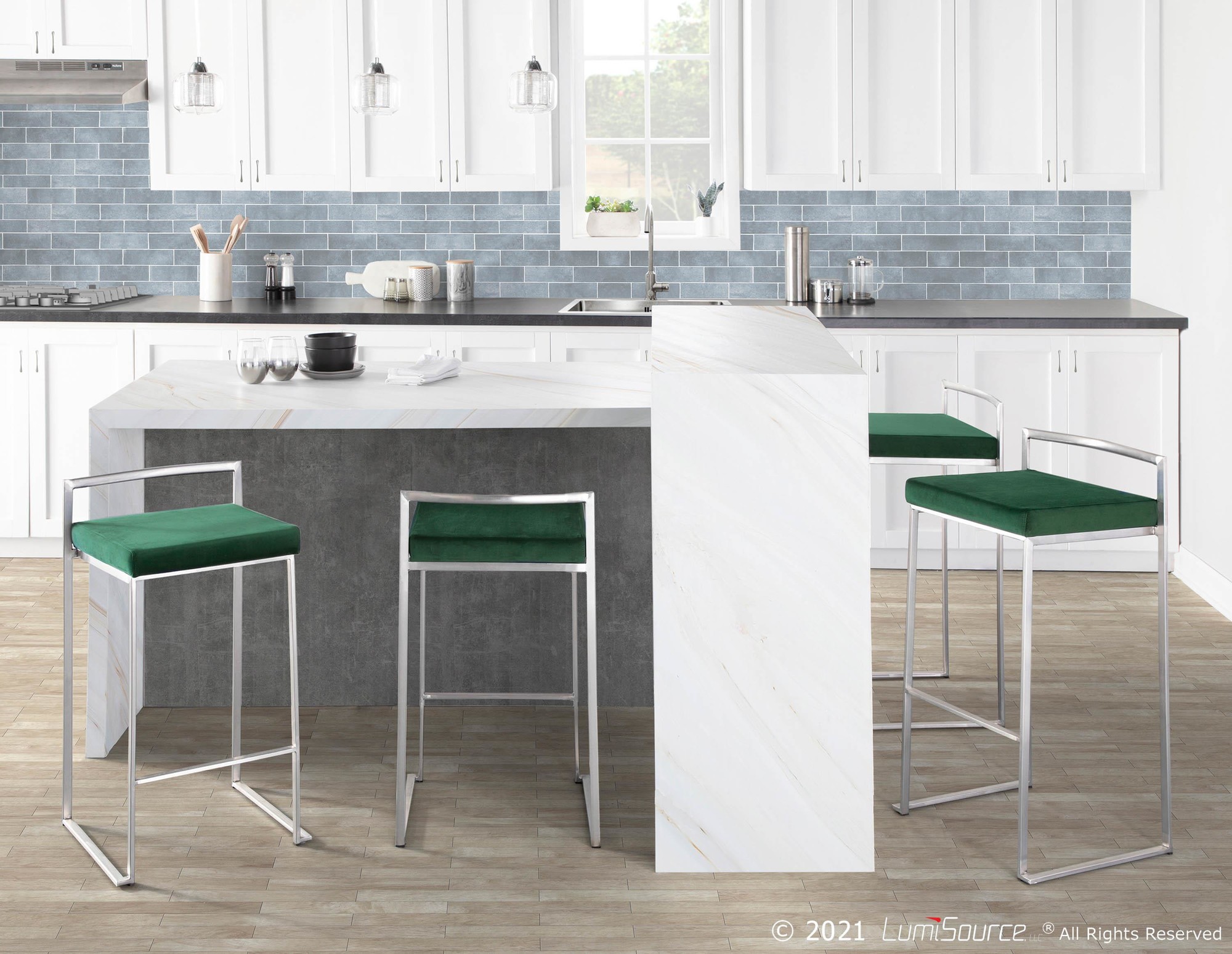 - Includes: Two counter stools