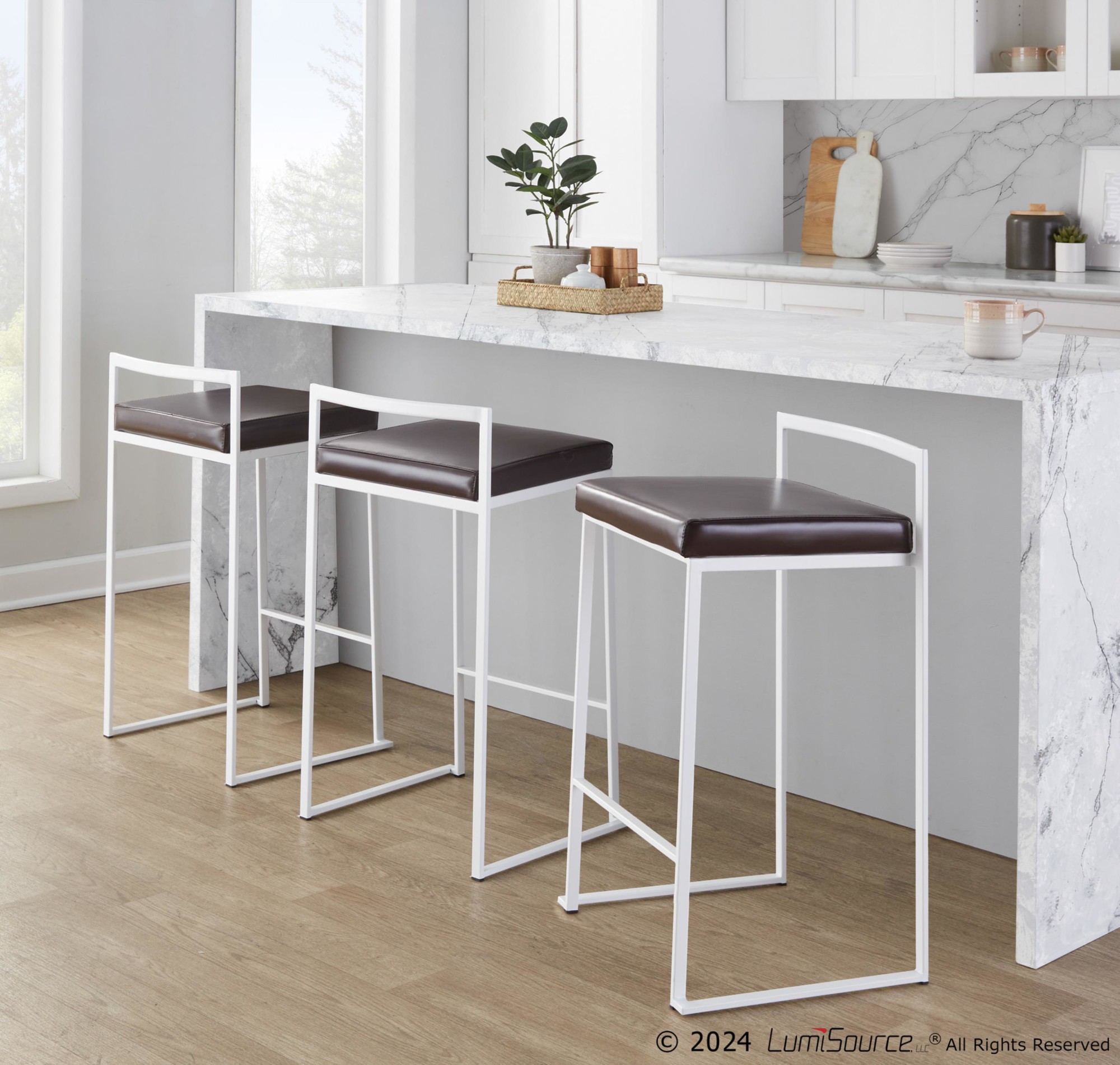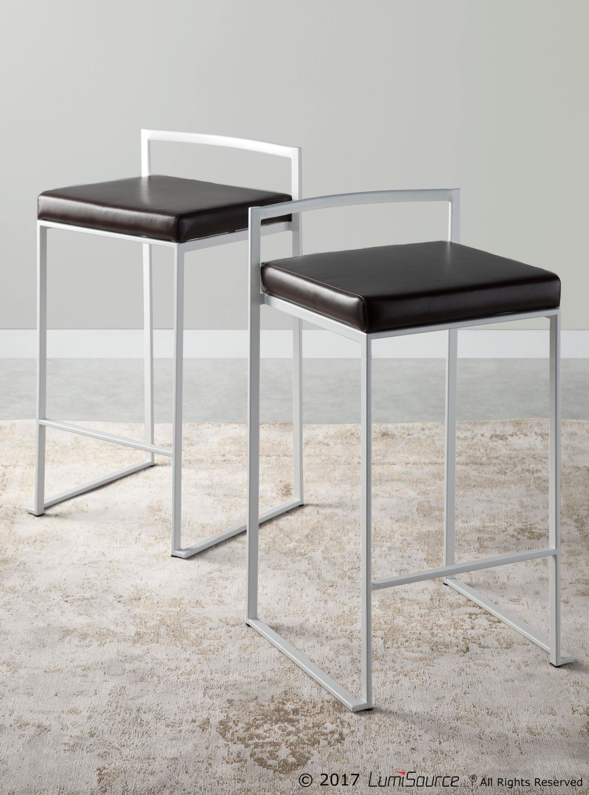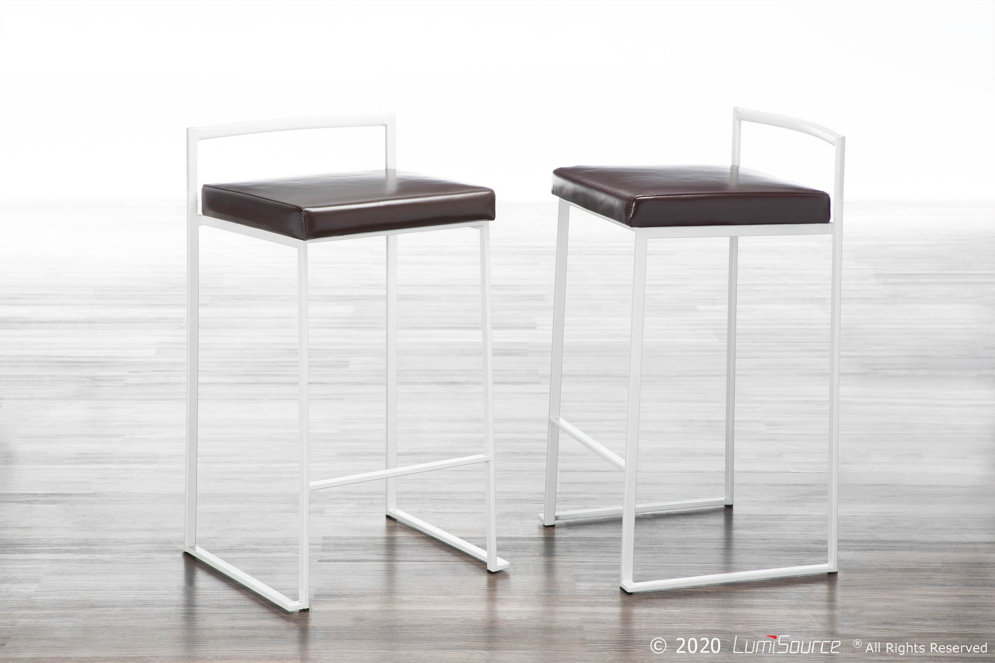 These counter stools offer simple elegance and surprising comfort. Their lightweight design features clean lines, creating a simplistic frame and backrest that provides support for the thick, padded seat cushion. The stackable design is perfect for easy storage, making them ideal for entertaining. With their versatile style, these stools are sure to complement any decor.