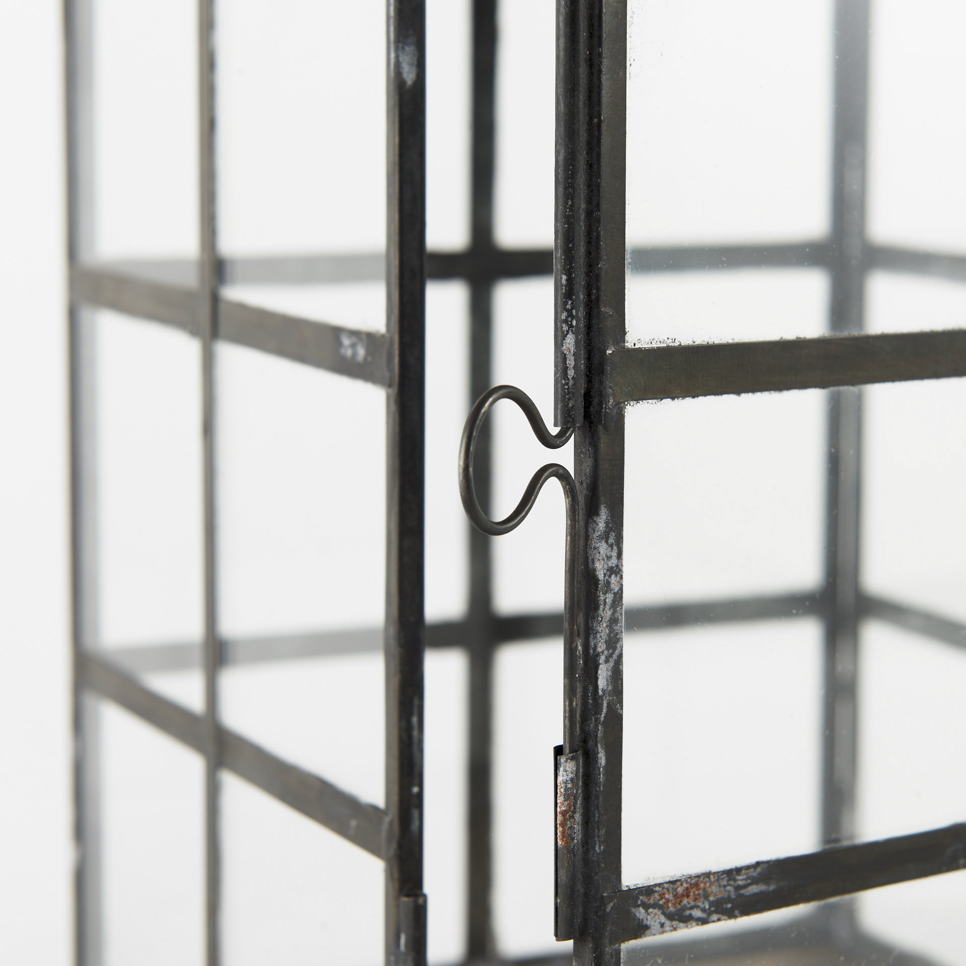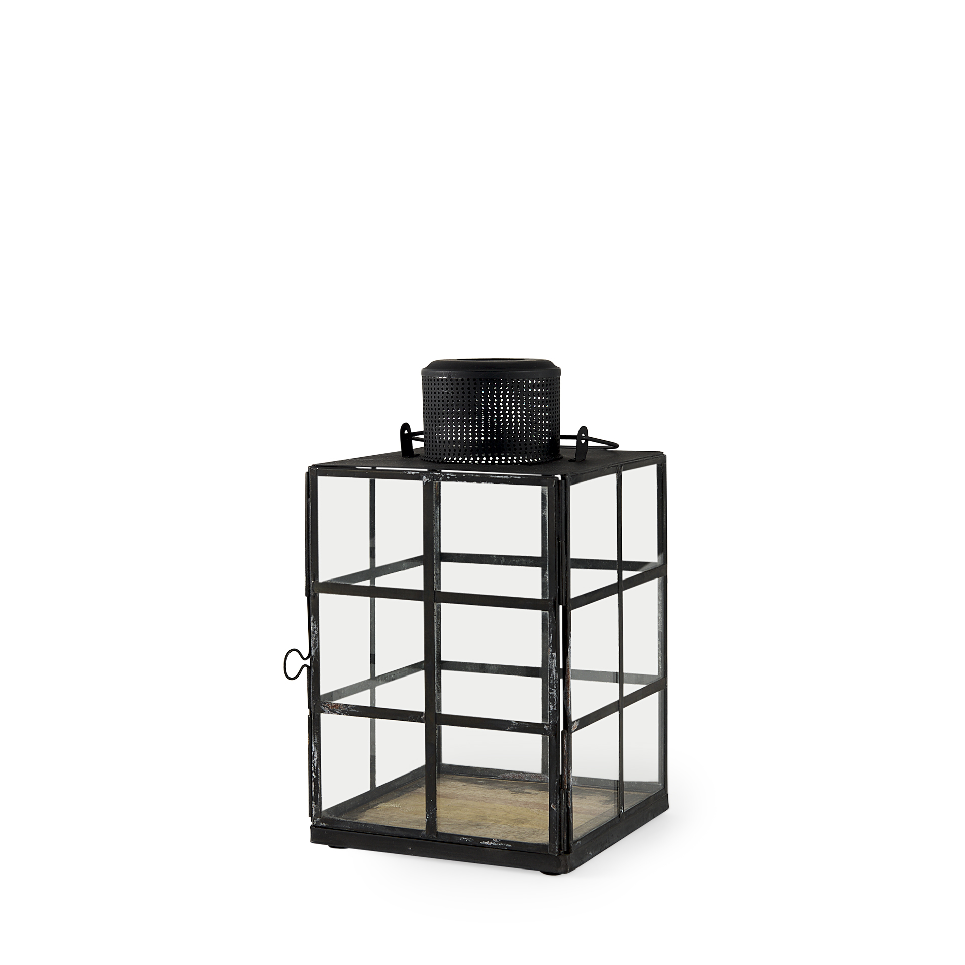 Bring an industrial touch to your space with the Gamfield lantern. Its transparent glass walls, framed by a distressed black metal grid, create a vibe reminiscent of factory windows. Perfect as a standalone piece or grouped together for a striking focal point, this lantern is sure to add versatile ambiance to any room.