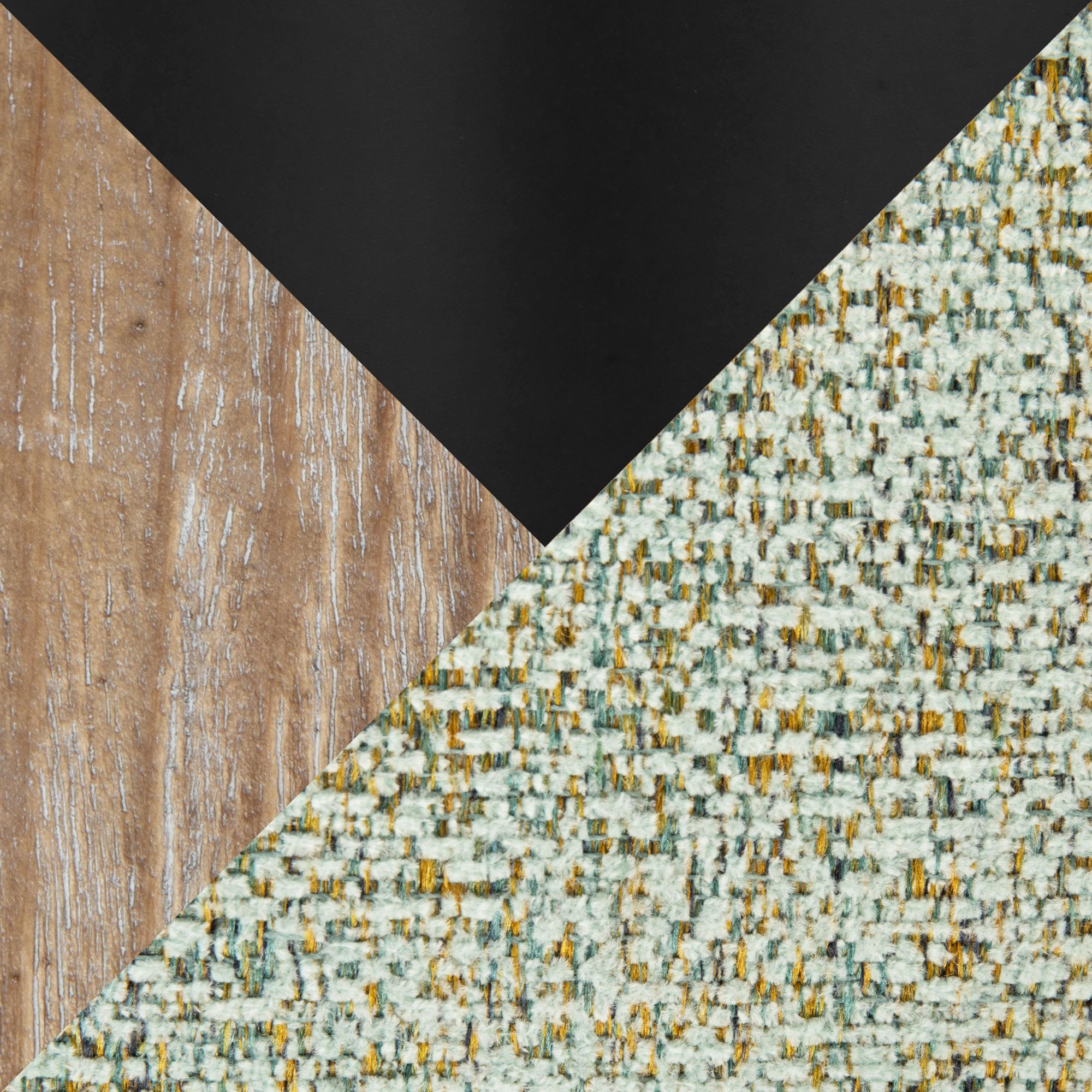 - Color: Whitewashed Wood, Black Metal, Seafoam Green Fabric