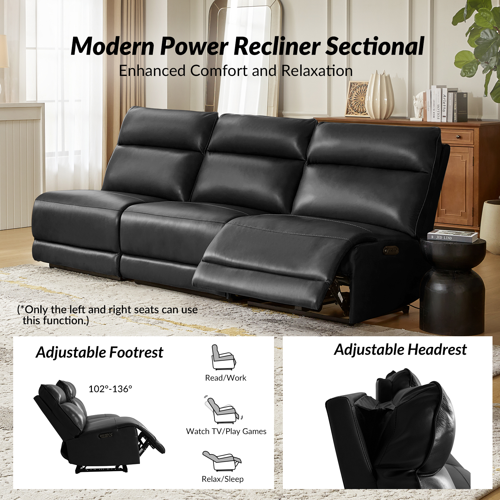 This modern genuine black leather power reclining sectional brings unparalleled comfort to your living room. Crafted with meticulous attention to detail, it offers independent motors for both the backrest and footrest, allowing personalized adjustments for each seat. With its oversized design and convenient USB and type-C ports, this sectional provides ample space for relaxation and device charging.