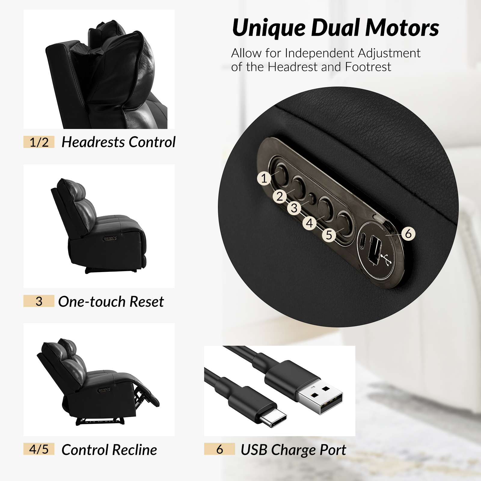 • Power Recliners with Independent Motors: Each seat is equipped with a power reclining mechanism to adjust the backrest and footrest independently.