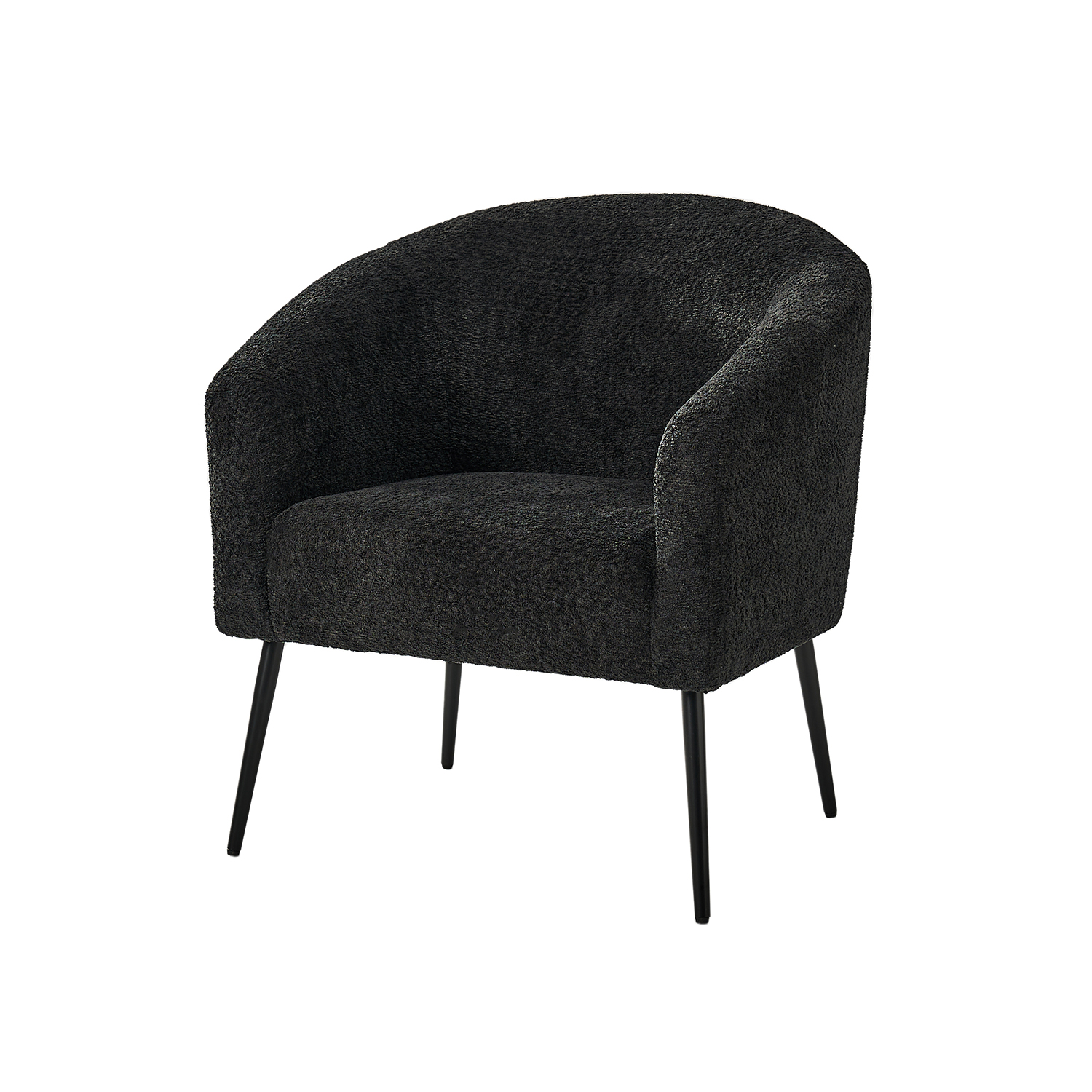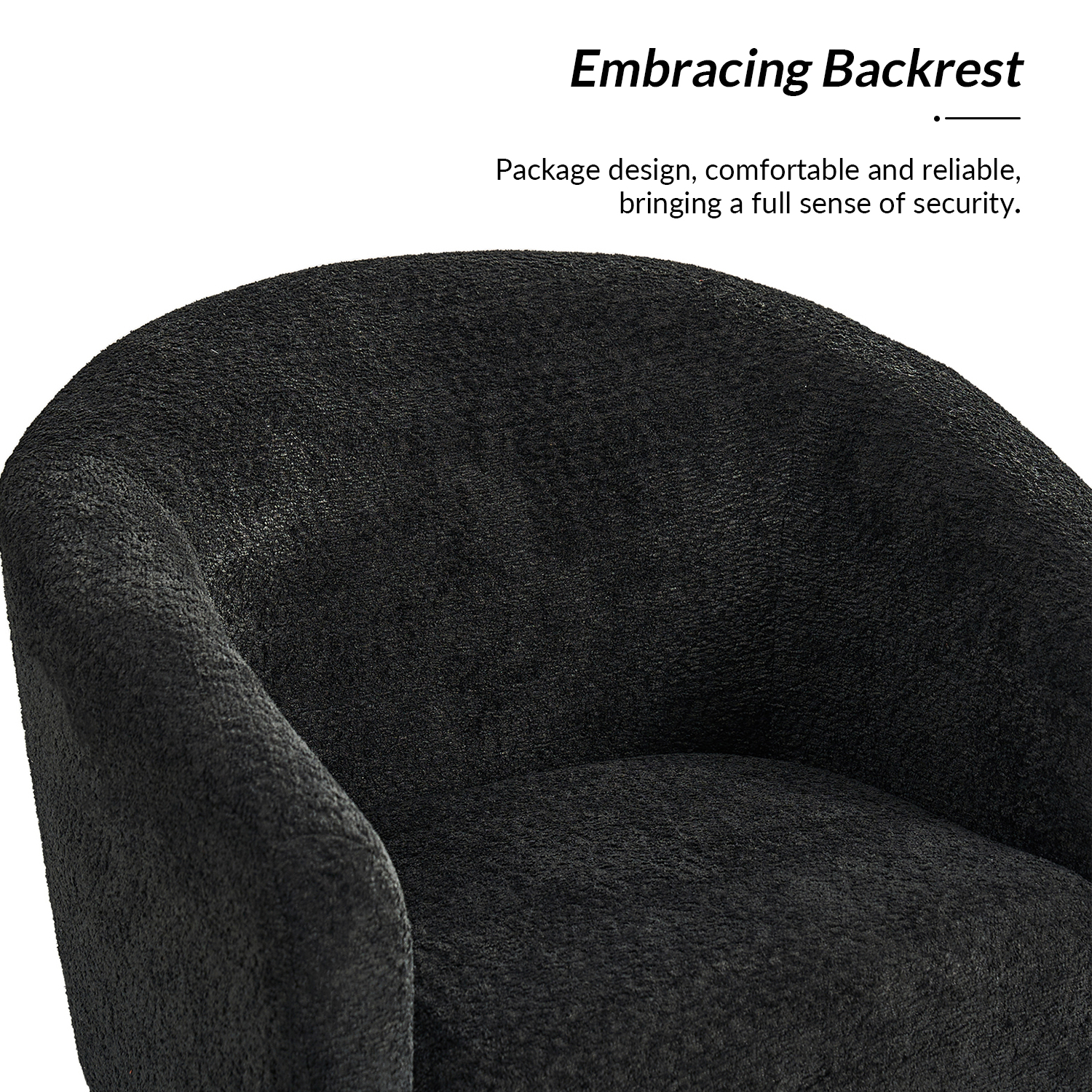 The George Black Chenille Modern Barrel Accent Chair seamlessly blends contemporary design with ultimate comfort. This chair is more than just a seat; it’s a stylish statement piece perfect for any modern living space. Its rounded back and plush chenille upholstery offer a cocoon-like feel, while the sturdy metal legs provide durability and a chic aesthetic.