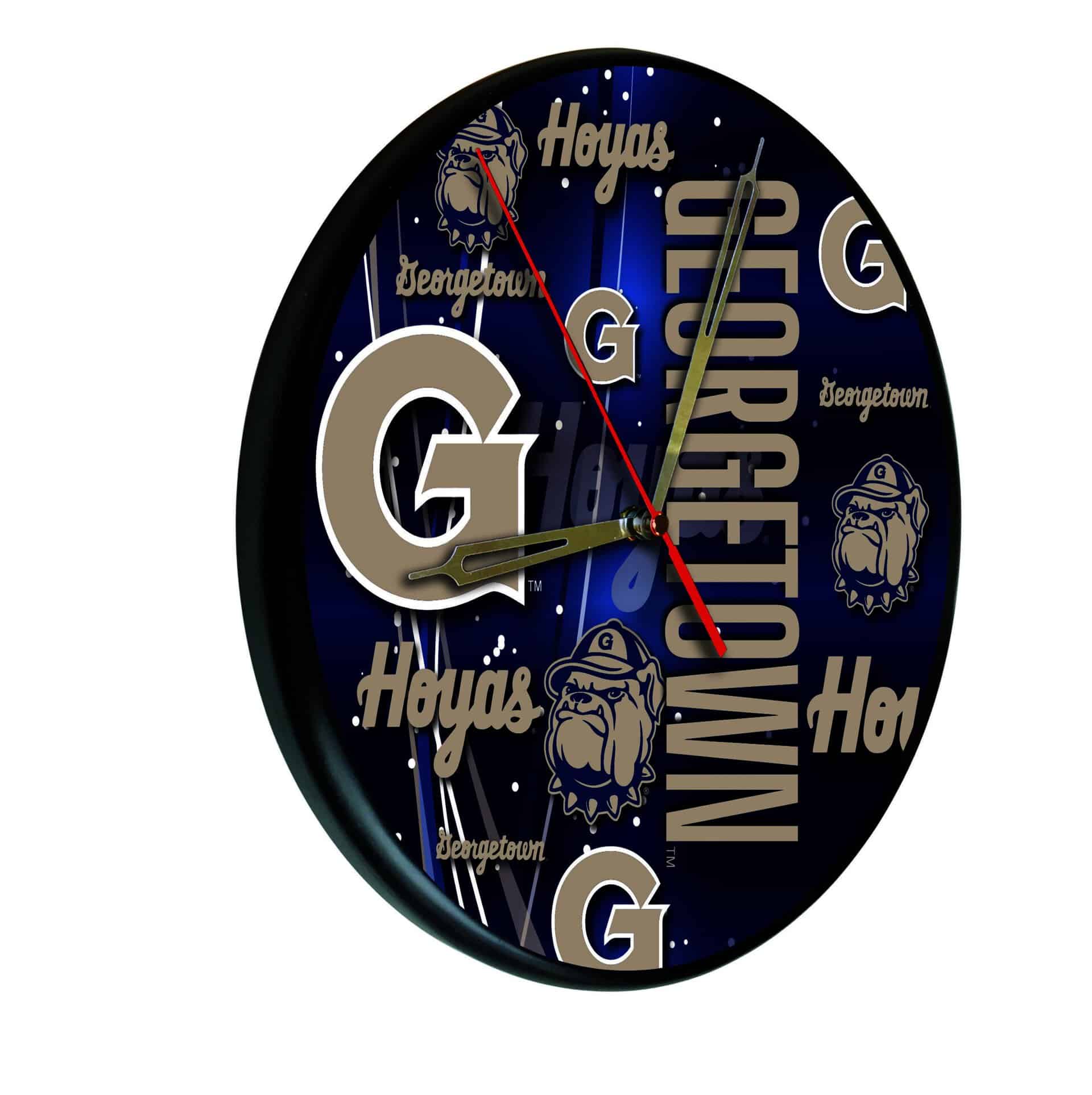 The Georgetown University 13-Inch Solid Wood Clock in Black is an ideal way to display your school pride while keeping perfect time. This officially licensed clock features first surface, digitally printed graphics using UV inks that ensure vibrant colors that won’t fade over time. With accurate quartz movement powered by a single AA battery (not included), this clock guarantees precision. The recessed keyhole hanger allows for a flush mount against the wall, providing a sleek and polished appearance. Whether for a recent graduate, a sports enthusiast, or as a personal treat, this clock combines functionality and style, making it a great addition to any space.