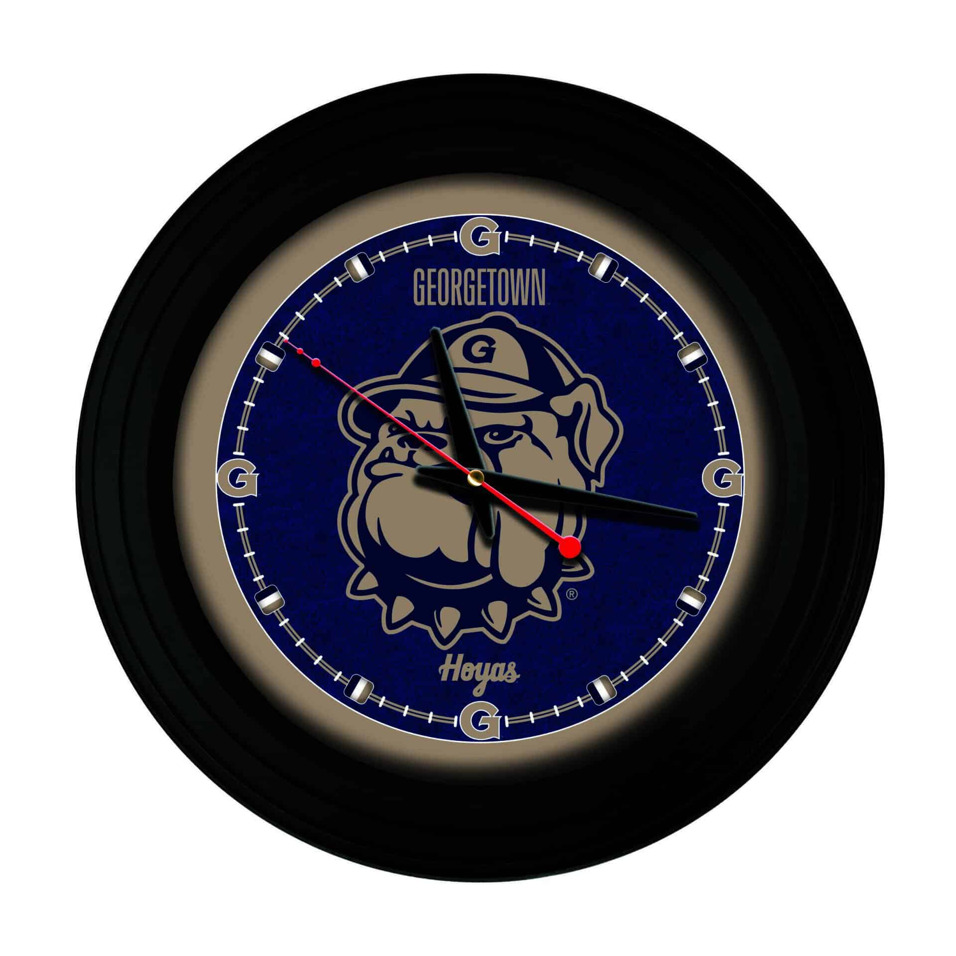 This Georgetown University 15-Inch Wall Clock in Black is the ideal addition to any man cave, showcasing your school spirit in style. With vibrant, full-color graphics and a sleek black casing, this clock not only tells time accurately but also serves as a striking decorative piece. The durable glass lens protects the artwork, ensuring it looks great for years to come. The recessed hanger allows for easy, flush mounting against the wall, creating a polished finish. Perfect as a gift for graduates, sports enthusiasts, or for personal use, this clock is designed to impress.