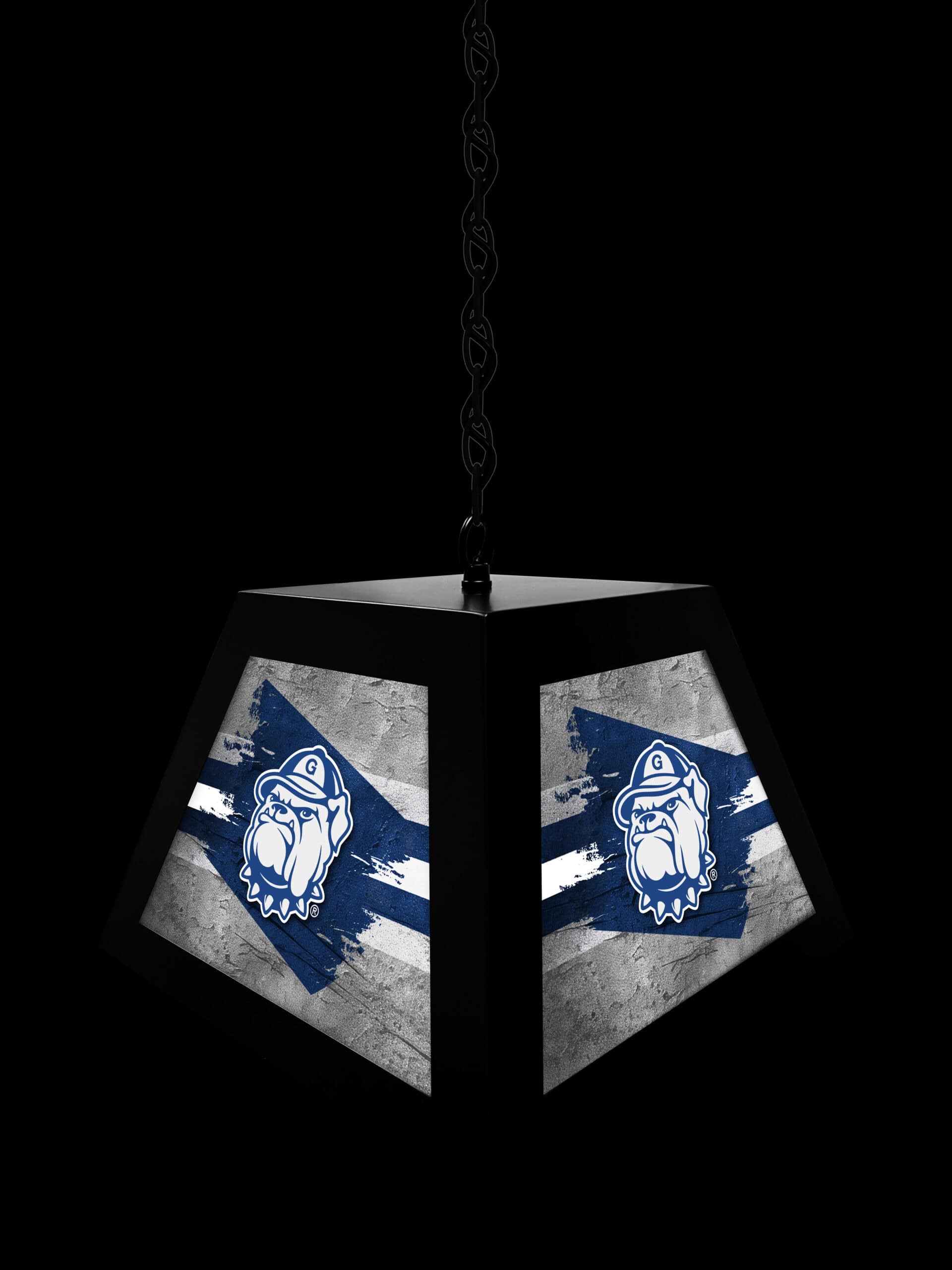 Dominate your game room with this Georgetown University Pendant Box Light! This high-quality, suspended light fixture is perfect for billiard tables, game tables, bars, and pub tables. Its bright backlit design and officially licensed logo will create the ultimate fan cave atmosphere. Enjoy the durable construction and vibrant graphics for years to come!