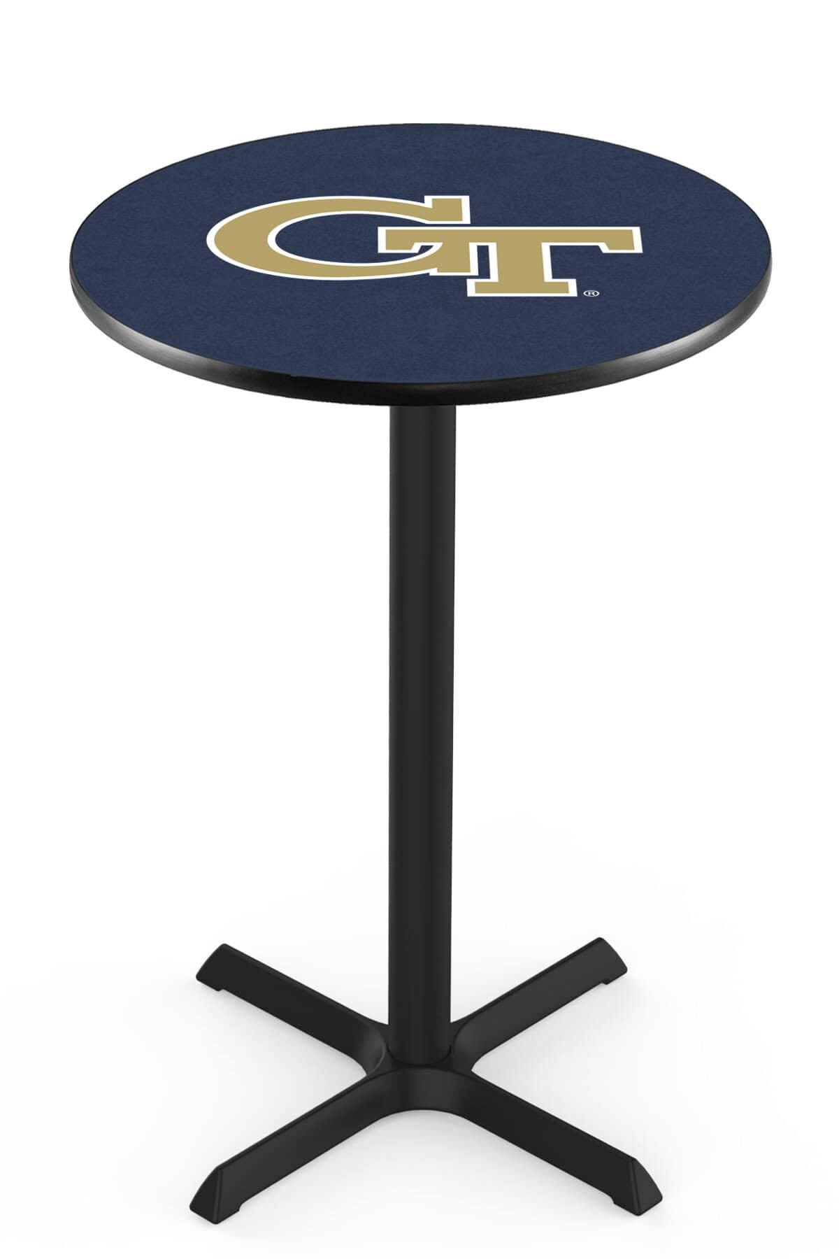 Enhance your bar, game room, or man cave with this high-quality 36-inch pub table with a 30-inch top and cross base design. This table is crafted for durability and style, featuring a vibrant, full-color laminate top that is both scratch-resistant and easy to clean. Its black wrinkle powder-coated base ensures a sleek, long-lasting finish, while adjustable levelers provide stability on any flooring. Built with commercial-grade materials, this table offers exceptional functionality and sophistication, making it a perfect addition to your space.