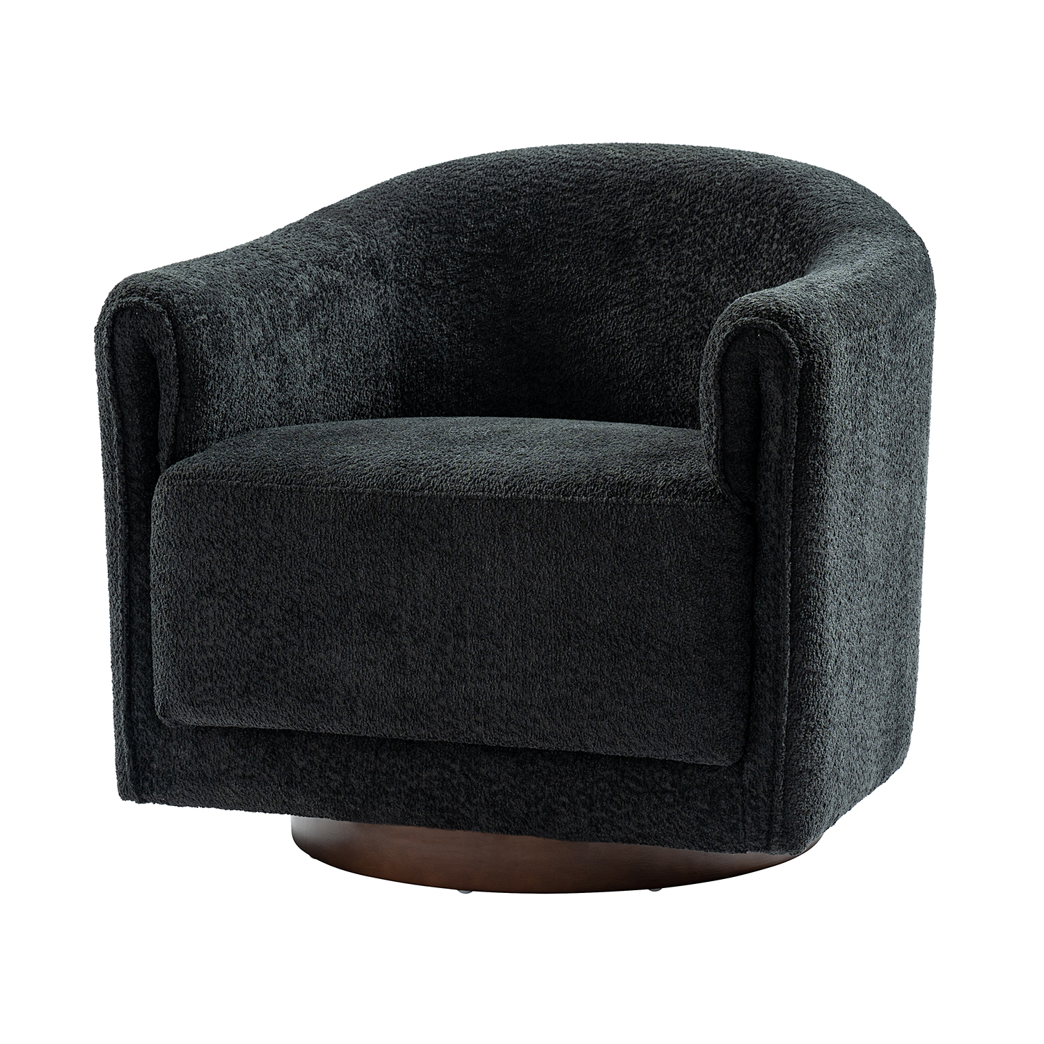 Experience the perfect blend of modern style and functionality with this modern barrel swivel chair. Designed to rotate a full 360 degrees, this chair provides flexibility and convenience, seamlessly integrating into any living room decor. Sink into the thick, wide cushion for an enhanced seating experience, perfect for relaxation or socializing. The fold-shaped armrests add an extra level of comfort, ensuring a cozy and supported feel. Elevate your living room with this chair and experience the perfect combination of style, comfort, and convenience.