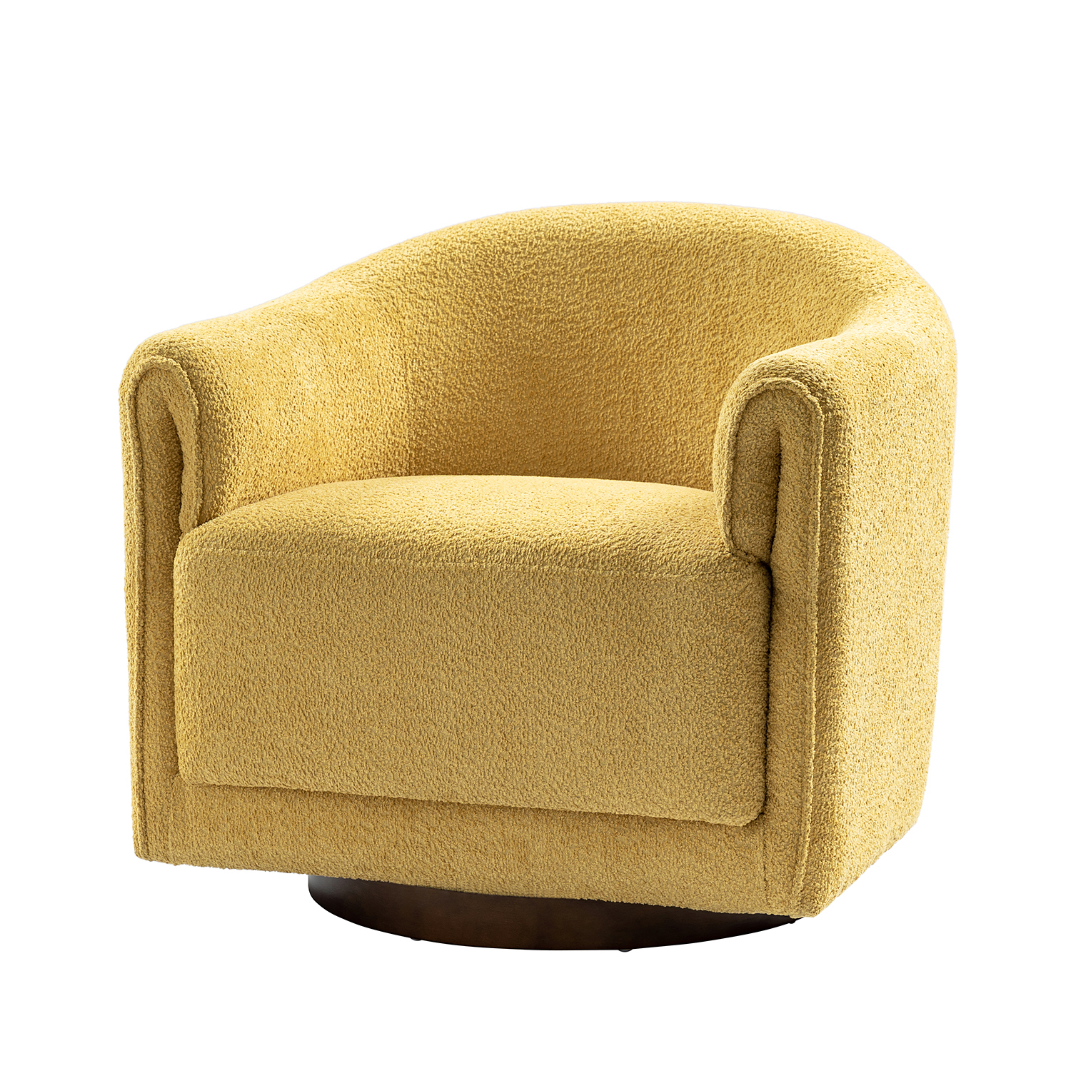 Experience the ultimate in modern comfort and versatility with the Gero Yellow Chenille 360 Swivel Modern Barrel Accent Chair. This chair seamlessly blends style and functionality, making it a sophisticated addition to any living space. Enjoy the freedom of a full 360-degree swivel, providing effortless movement and enhanced interaction within your room. The chair’s sleek design effortlessly complements a range of interior styles, from contemporary glam to classic boho.
