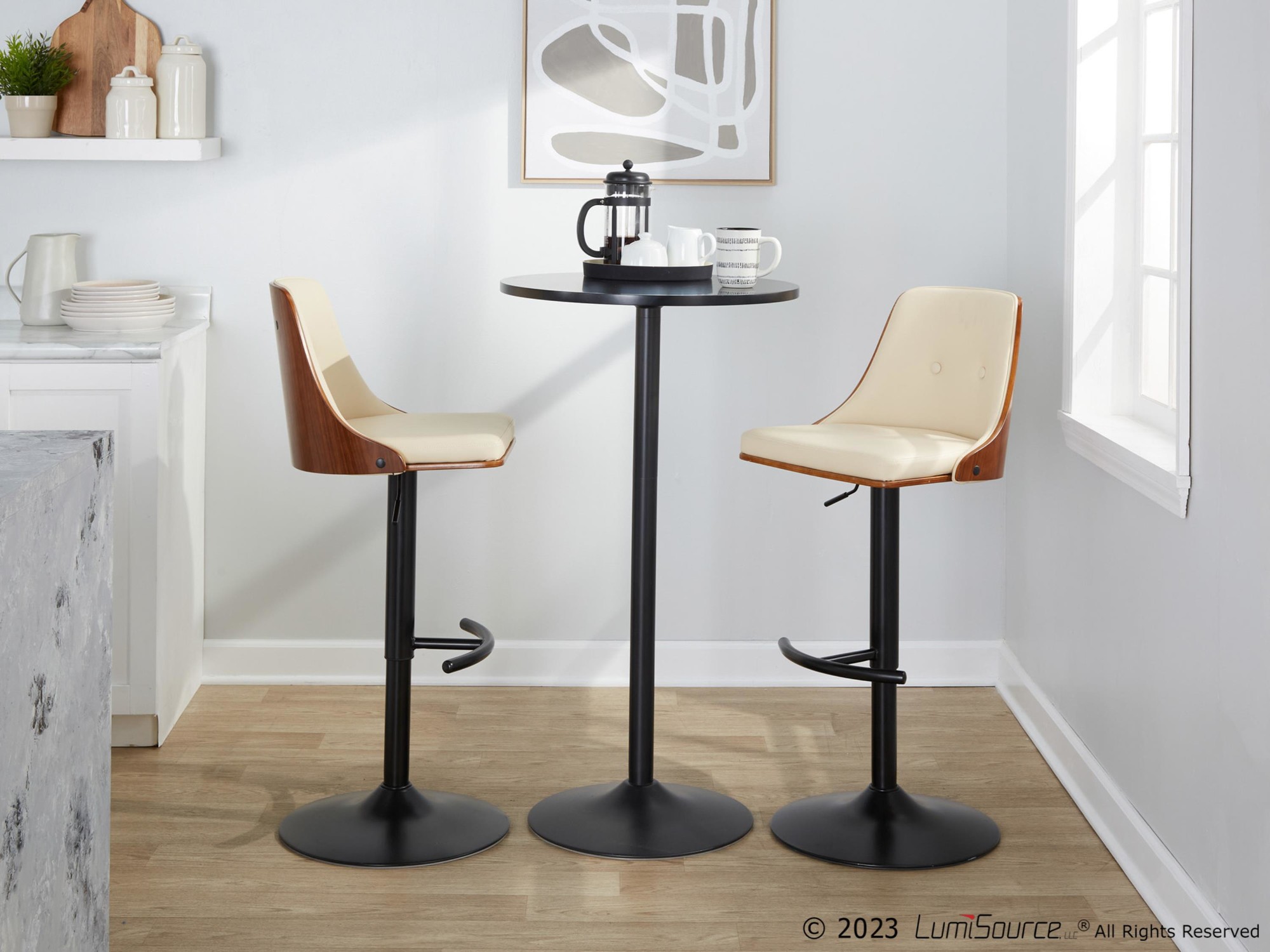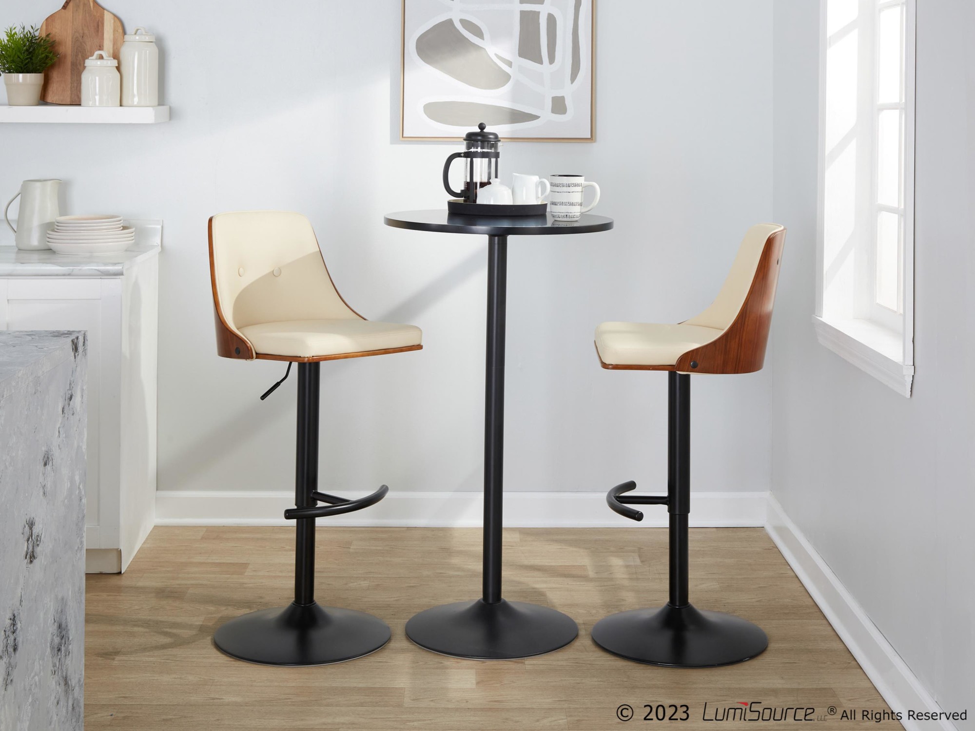 - Includes two barstools