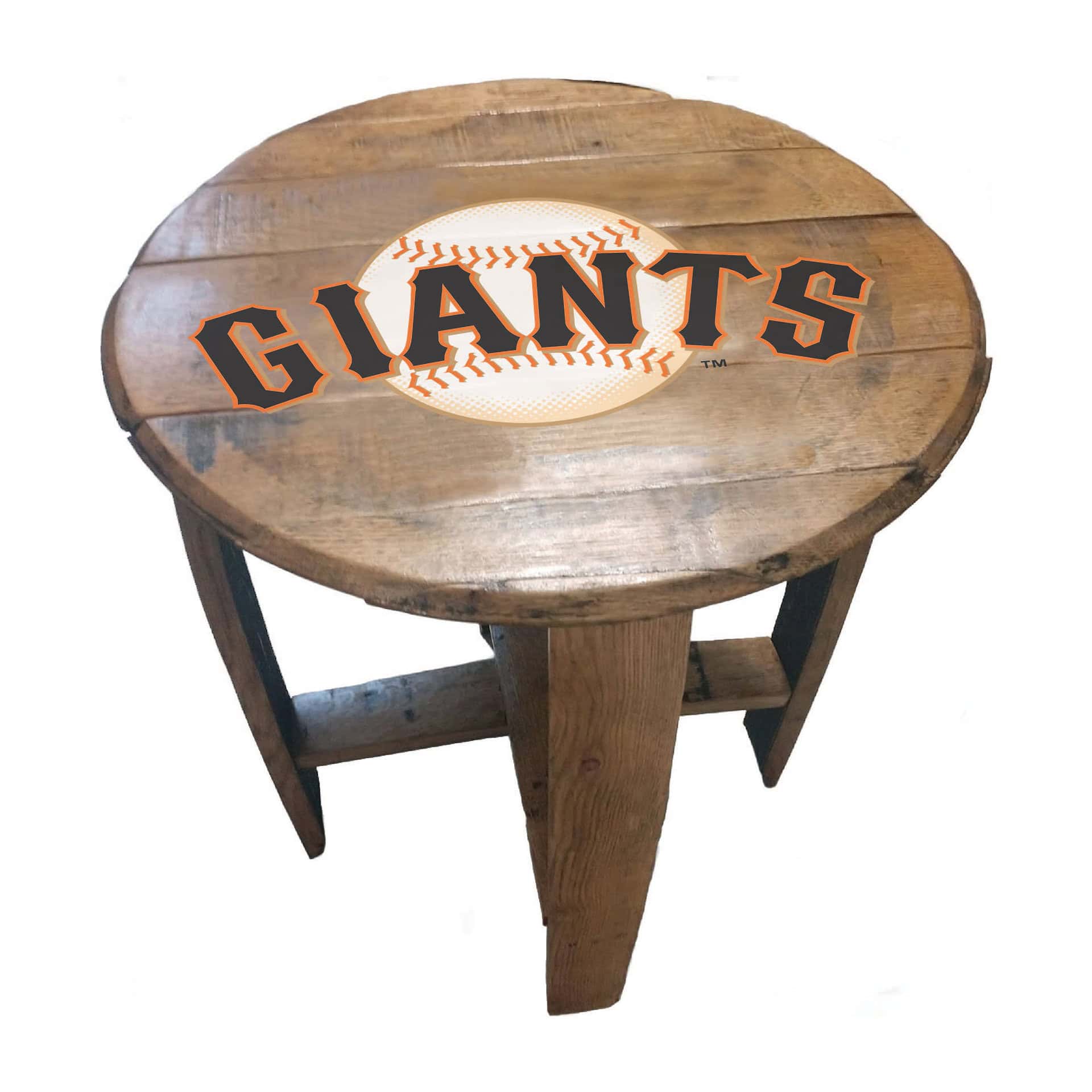 Bring rustic charm and team spirit to your living room or fan cave with this unique oak barrel end table. Crafted from an authentic charred whiskey barrel, each table is a one-of-a-kind piece. The team logo is directly injected with UV-resistant ink into the oak and sealed, ensuring long-lasting vibrancy. Perfect for showcasing your team pride while adding a touch of character to any room.