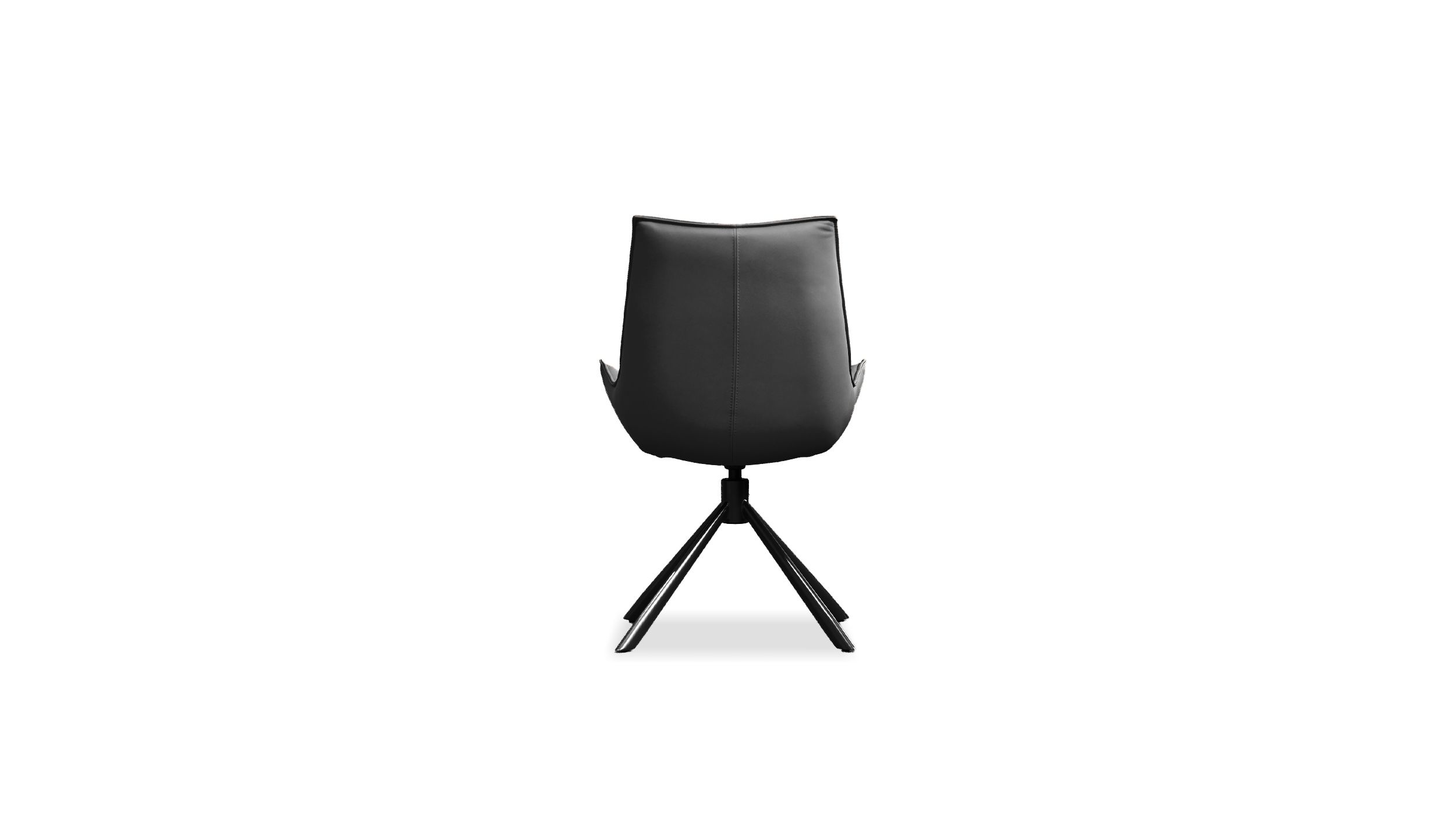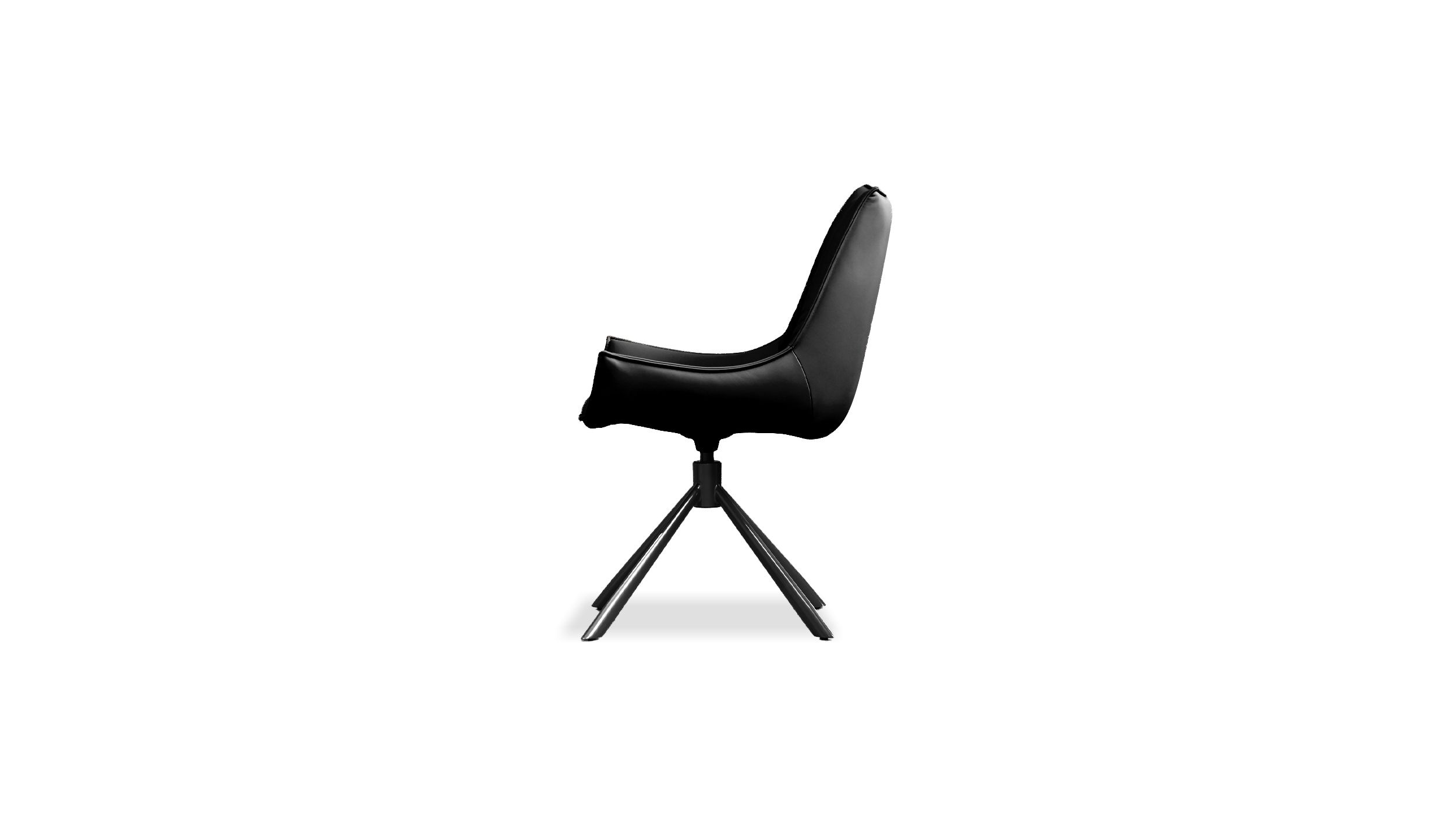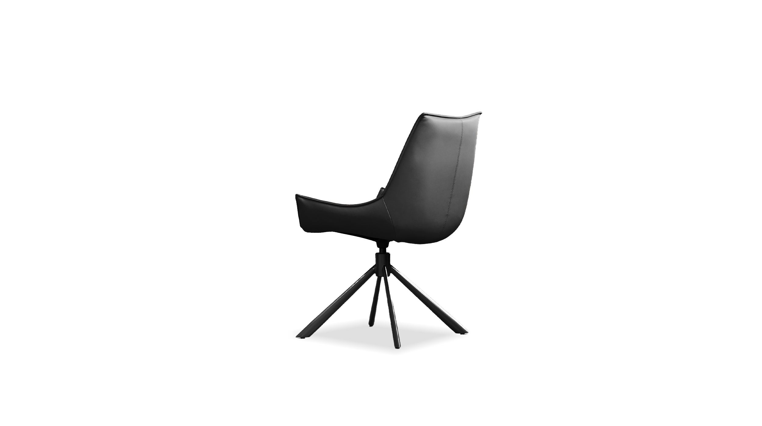 This dining chair is a stylish addition to any dining space! Upholstered in black leather with black legs, this chair also features a convenient 360-degree swivel base.