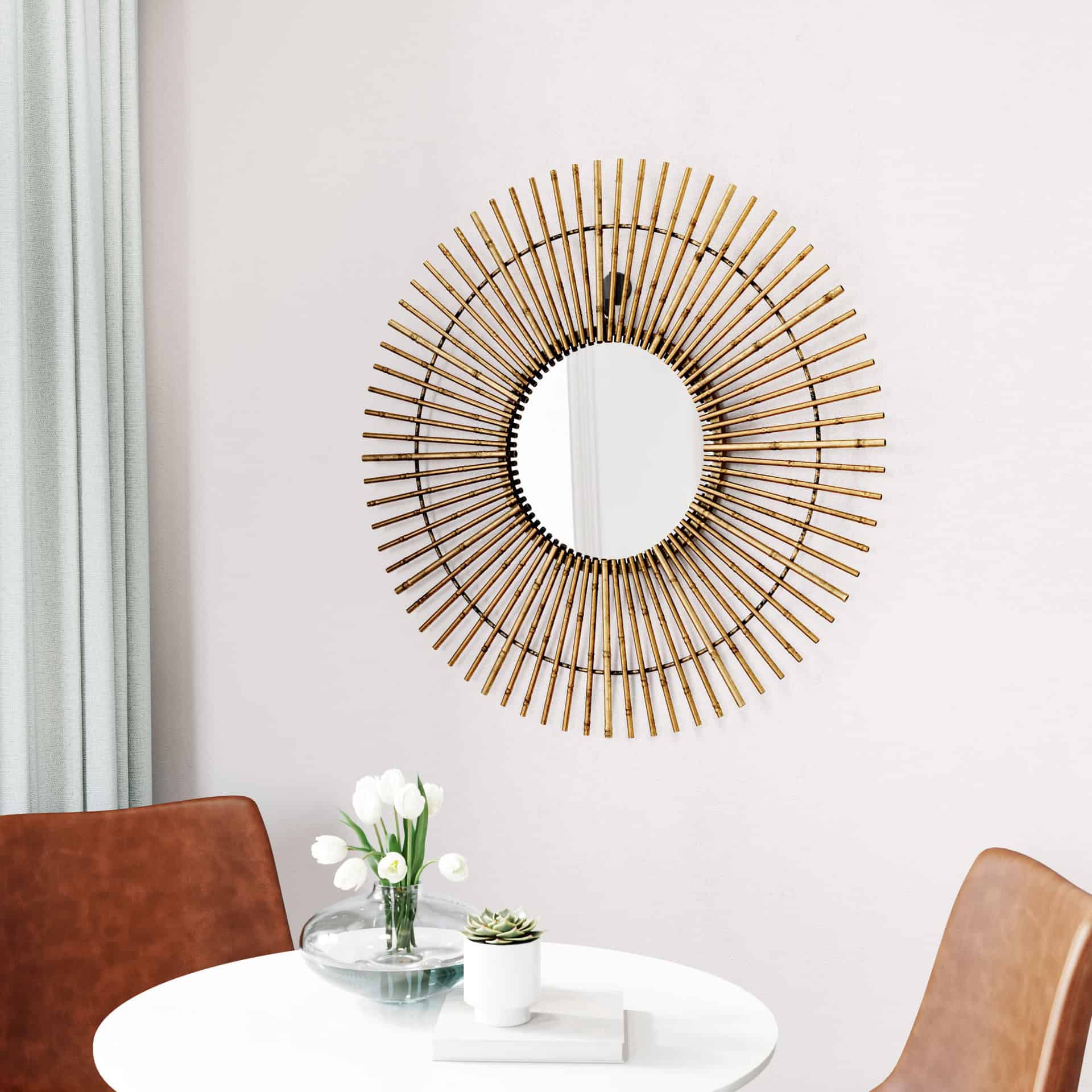 The Glam Industrial Gold Mirror with Painted Steel Frame offers a stylish and modern touch to any room. Featuring a sleek, industrial-inspired design, this mirror doubles as a decorative wall piece and a functional personal mirror. Its gold-painted steel frame adds an elegant finish that complements both contemporary and industrial decor styles. Perfect for adding a focal point to your man cave, living room, or hallway, this mirror is designed to hang vertically, making it versatile for various spaces.