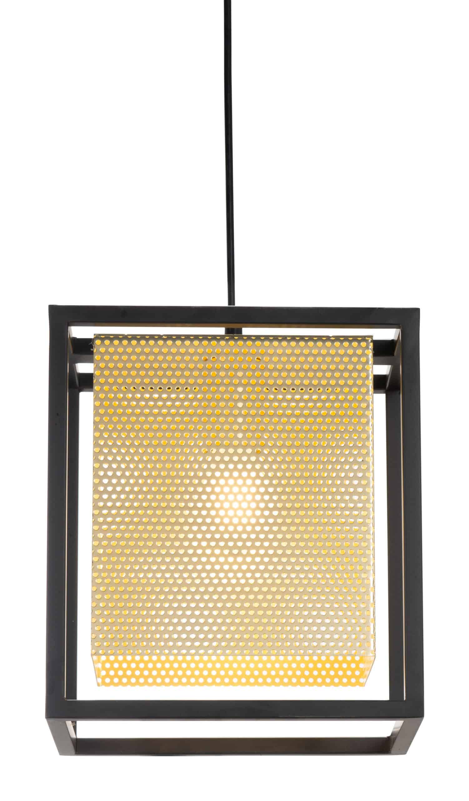 The Gold and Black Ceiling Lamp with Steel Frame and Perforated Shade brings a modern industrial touch to any space, making it perfect for man caves, residential, or hospitality settings. Featuring a durable steel frame and a perforated shade, this lamp adds a stylish design statement to your ceiling while providing functional lighting. With an adjustable cord length, it offers flexibility in installation and can be customized to fit various ceiling heights.