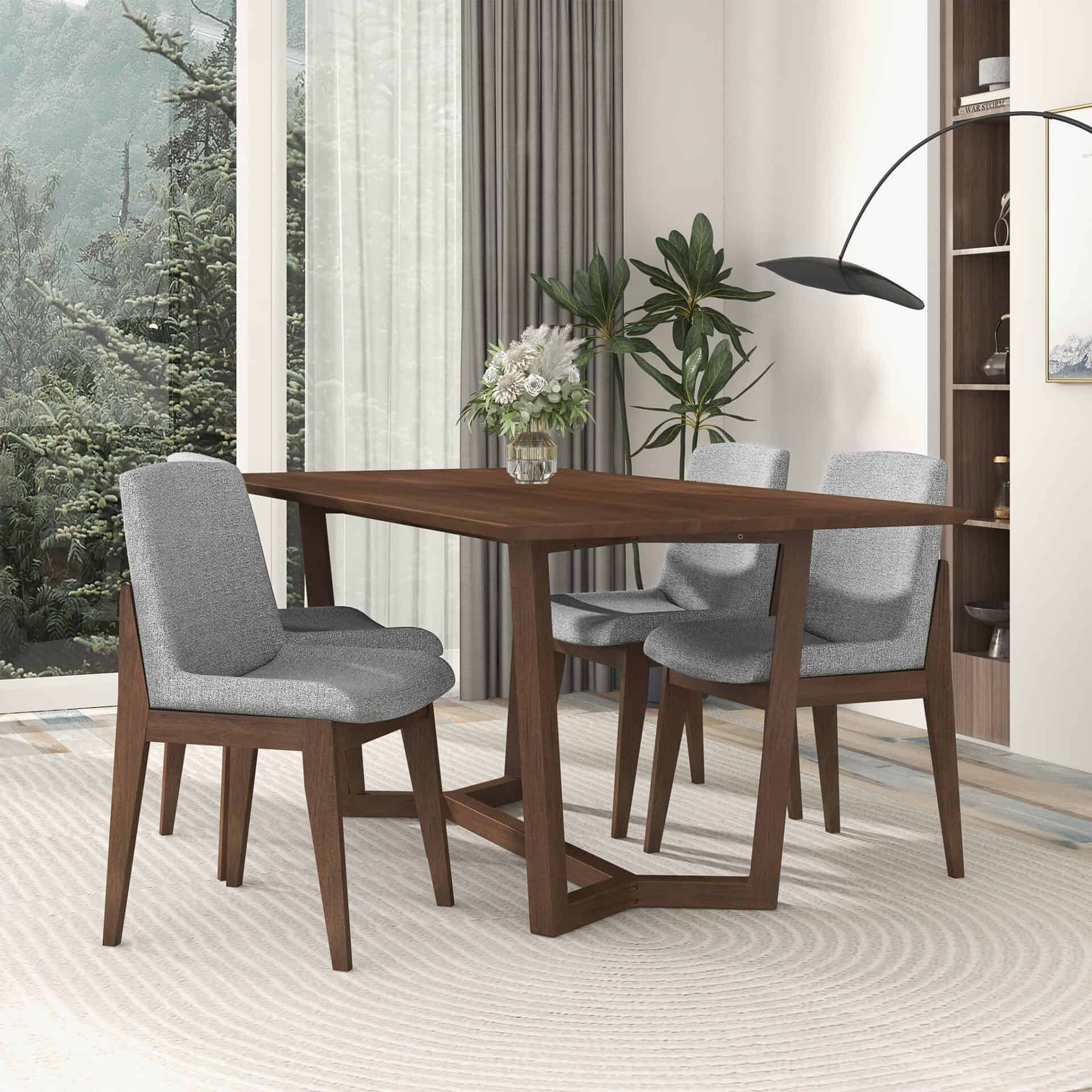Indulge in the iconic elegance of this set of two Danish-style dining chairs. These chairs blend simplicity and sophistication, making them a perfect addition to any dining space or man cave. Featuring a durable gray fabric upholstery, foam cushioning for comfort, and a stunning walnut finish, they are as stylish as they are functional. Whether you’re hosting guests or enjoying a casual meal, these chairs offer a timeless design and lasting comfort.