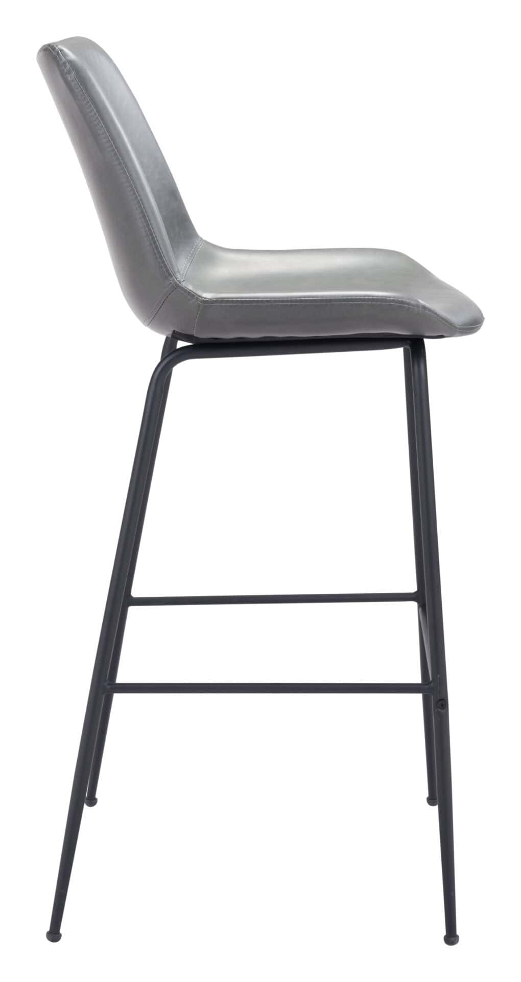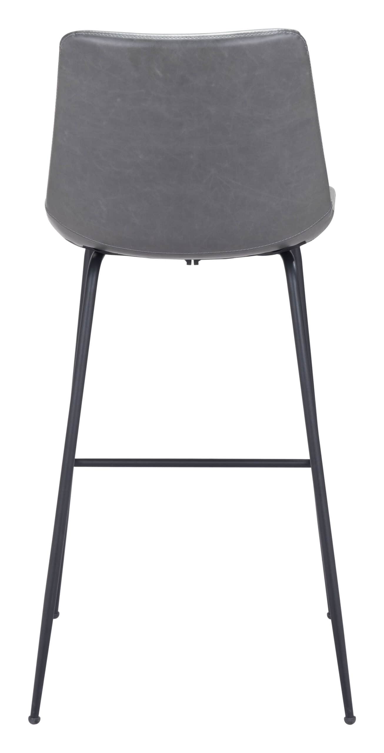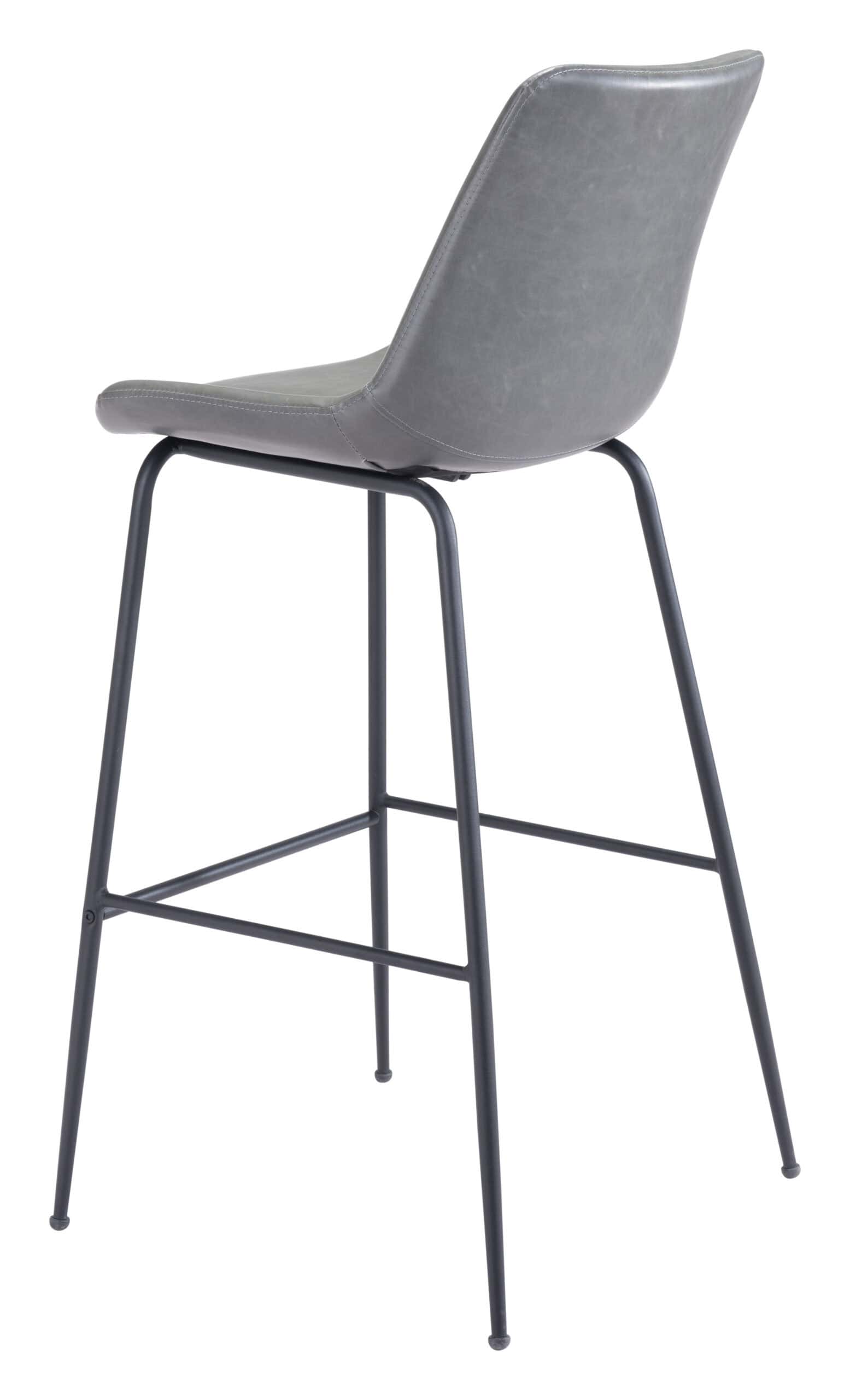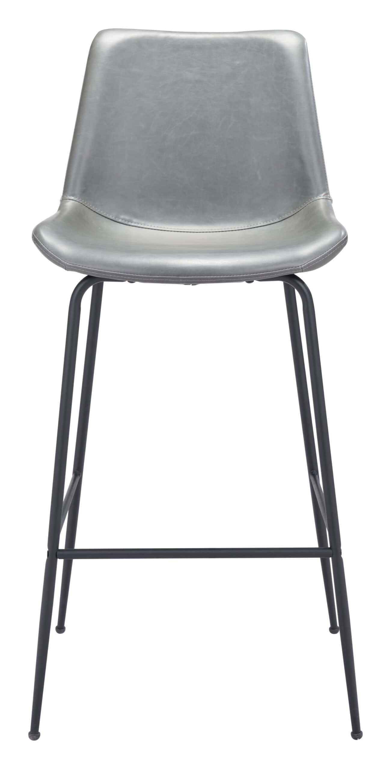 The Gray Faux Leather Barstool with Black Steel Legs and Footrest blends mid-century modern design with urban style, making it an excellent addition to any space, from a man cave to a kitchen or bar. This barstool offers both comfort and durability with its plush faux leather upholstery and sturdy steel frame. The matte black powder-coated legs are built for lasting use, and the integrated footrest adds extra comfort. Rubber feet ensure your flooring stays scratch-free.