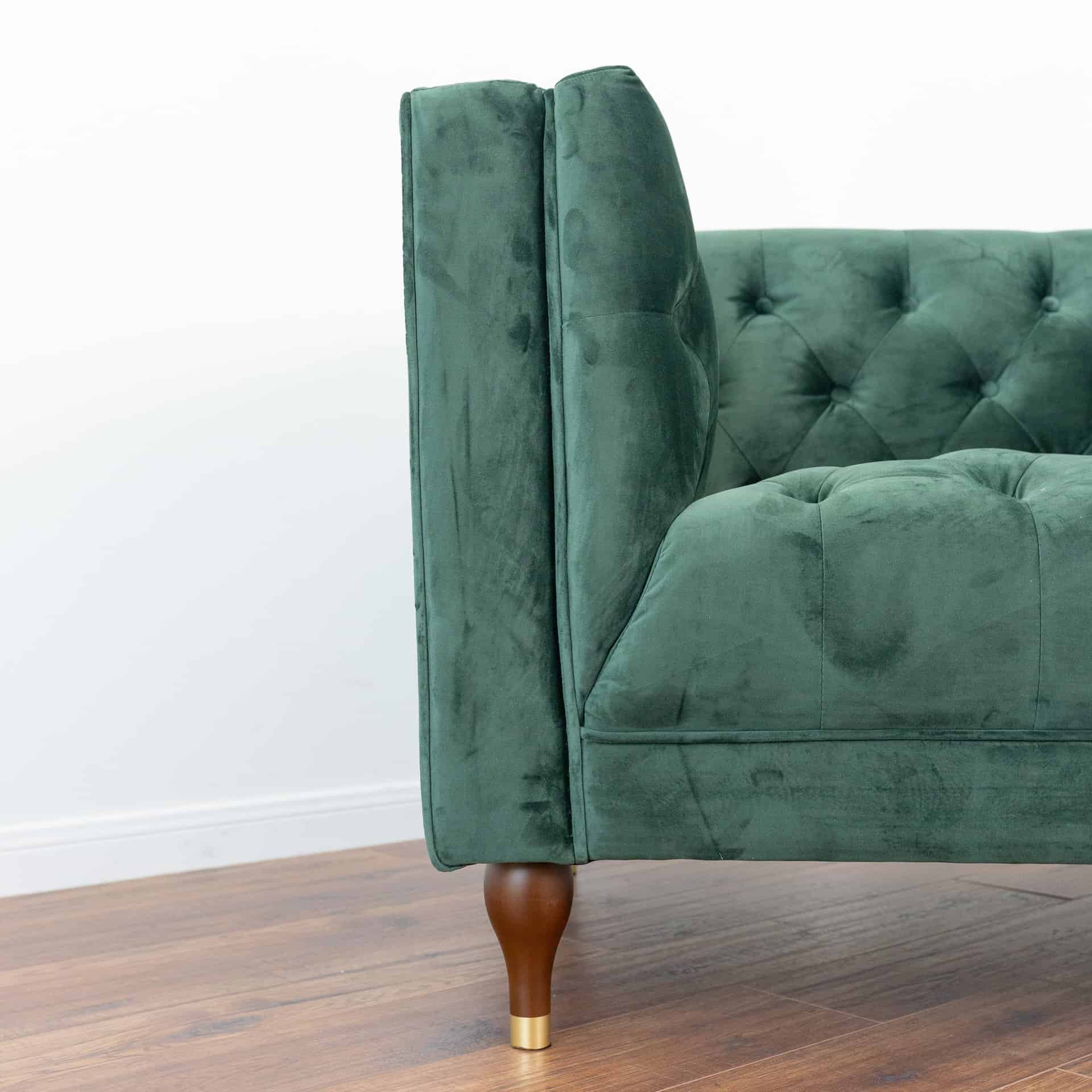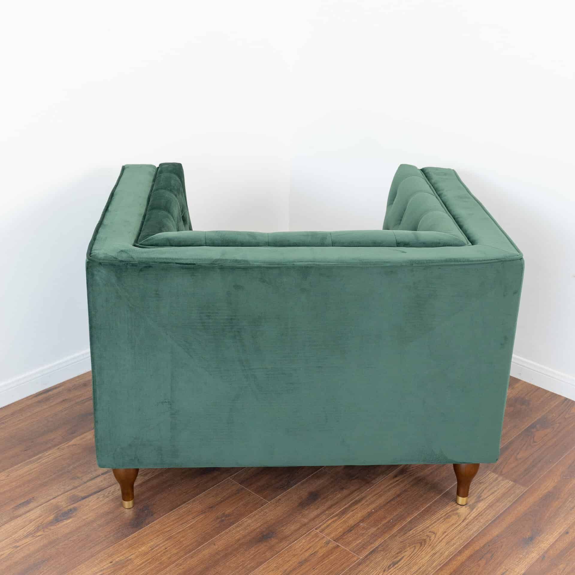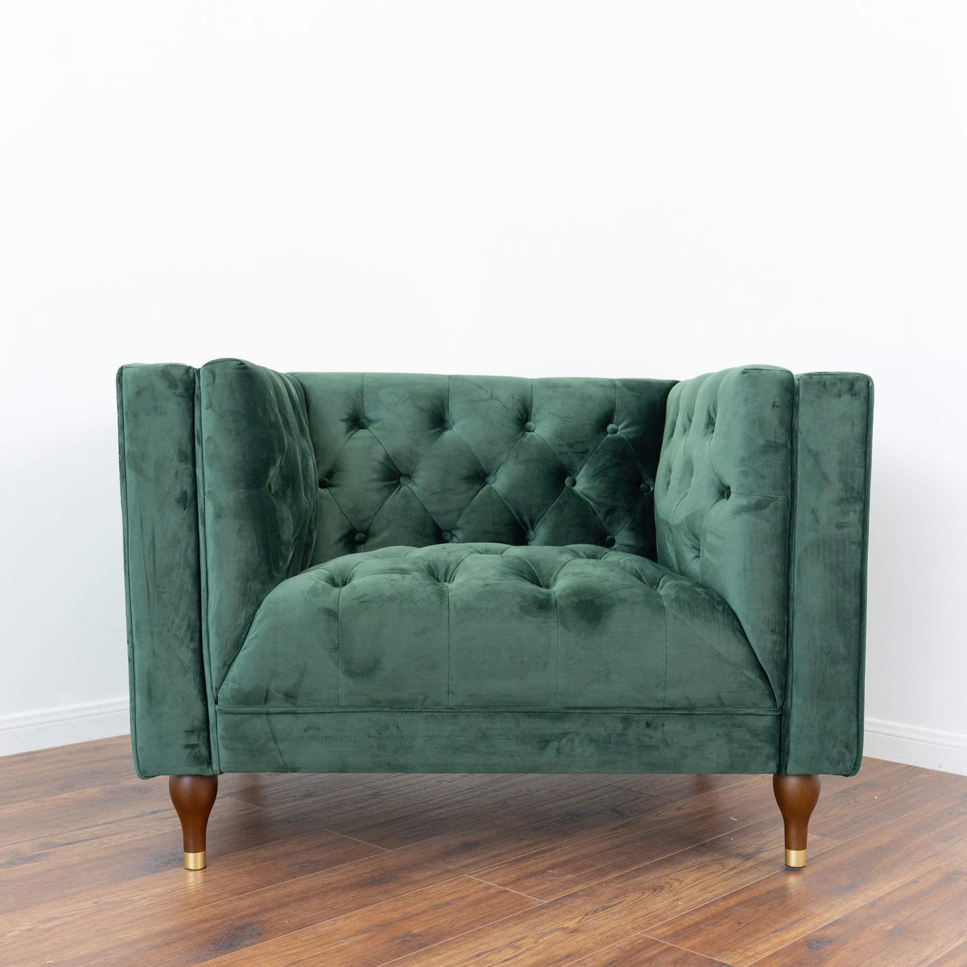 Built with a sturdy frame made of high-quality materials, this chair is designed to last. Generous padding with high-density foam ensures a soft and cozy seating experience, while its sleek green velvet fabric adds a touch of luxury to any room. Perfect for the man cave, living room, bedroom, or study, this tufted lounge chair doubles as a functional and stylish statement piece. Its spacious seating and supportive backrest make it ideal for relaxation, reading, or even a quick nap.
