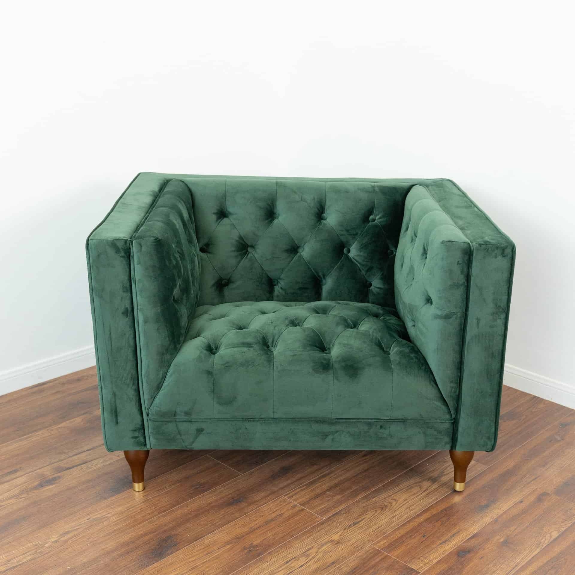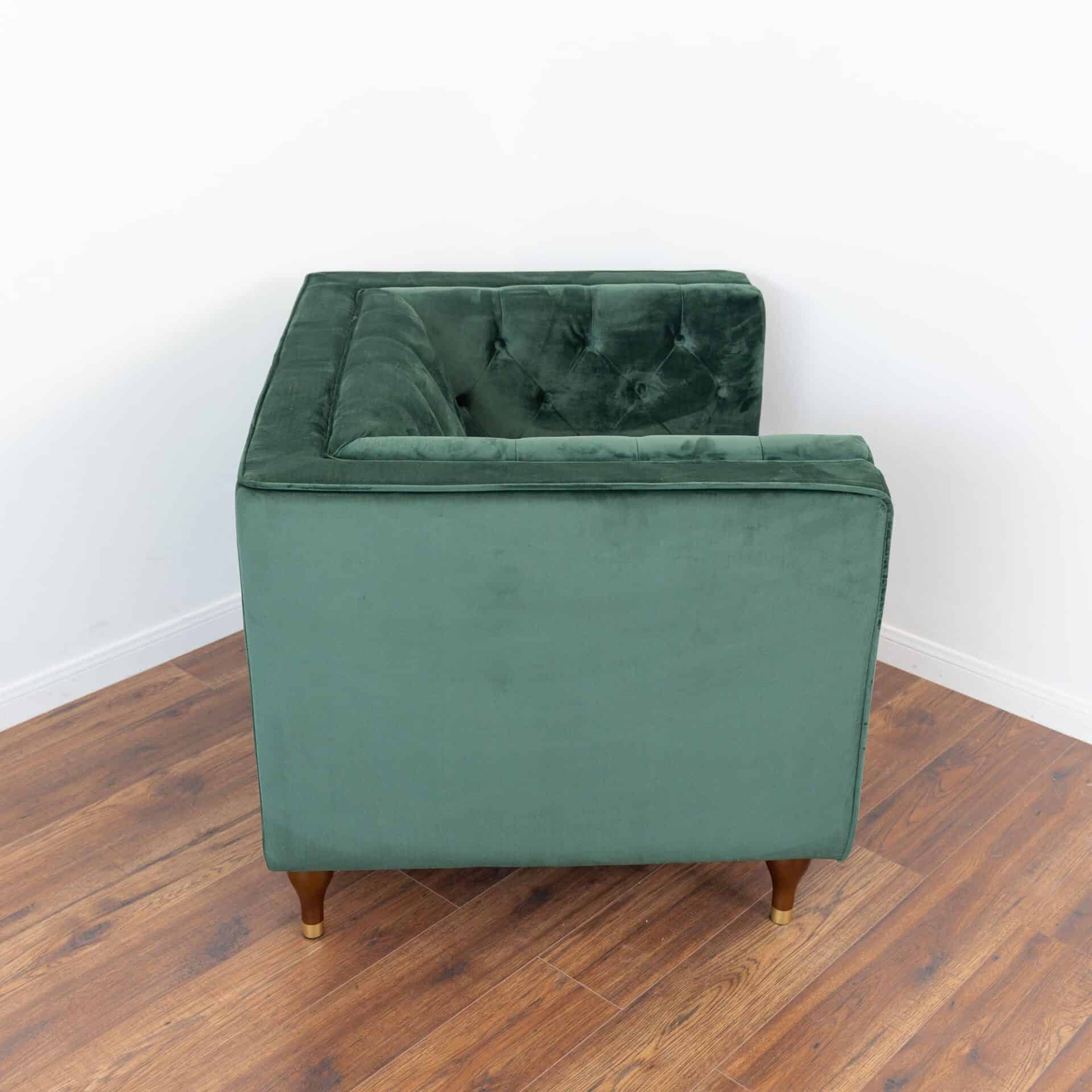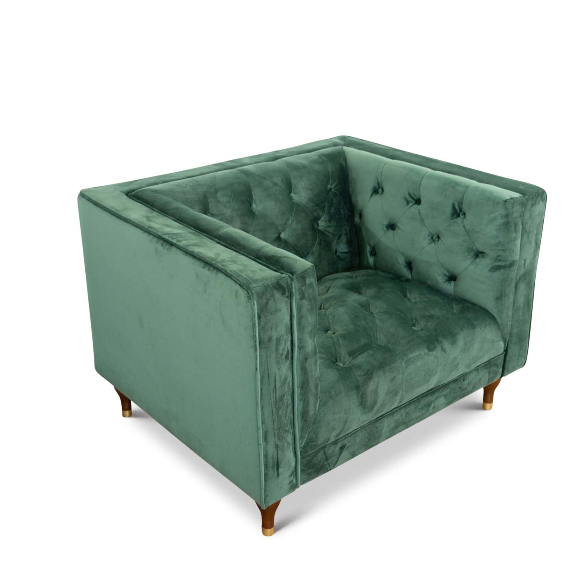 Built with a sturdy frame made of high-quality materials, this chair is designed to last. Generous padding with high-density foam ensures a soft and cozy seating experience, while its sleek green velvet fabric adds a touch of luxury to any room. Perfect for the man cave, living room, bedroom, or study, this tufted lounge chair doubles as a functional and stylish statement piece. Its spacious seating and supportive backrest make it ideal for relaxation, reading, or even a quick nap.
