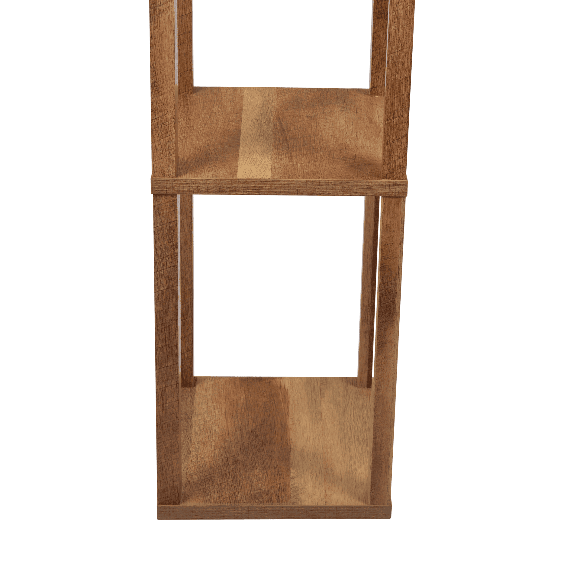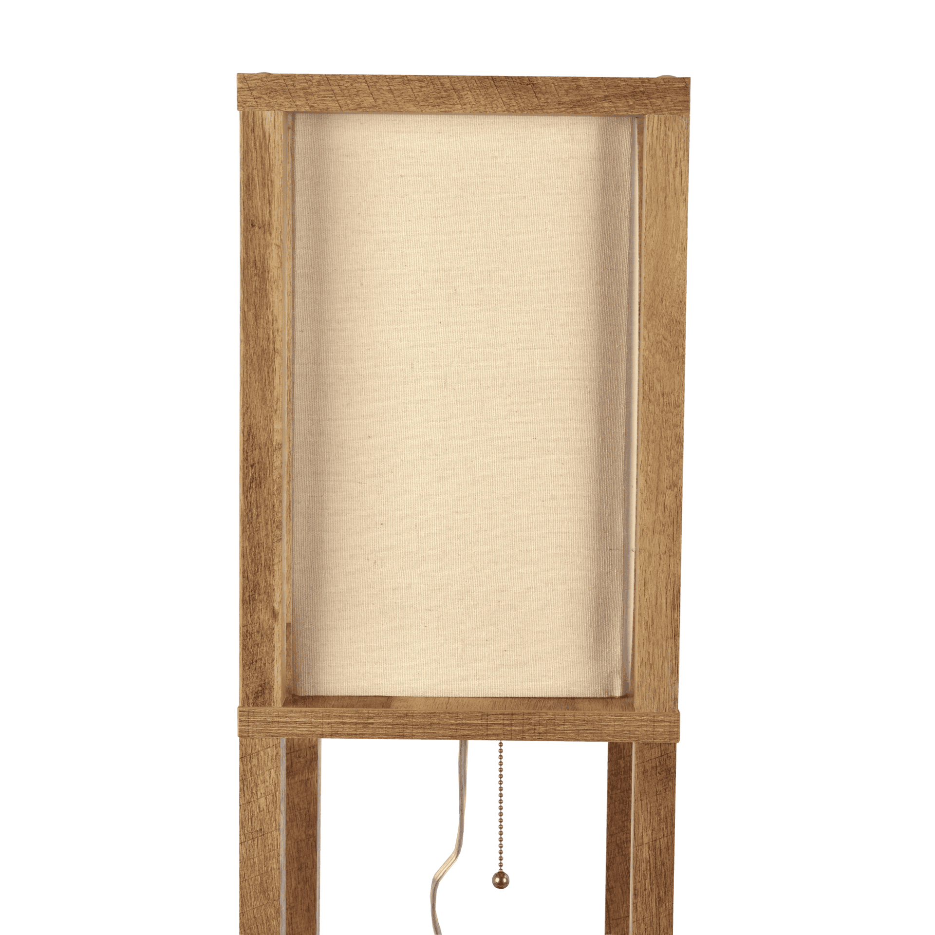 - Unique Design: Combines lighting and storage with built-in MDF shelves and a long fabric shade.