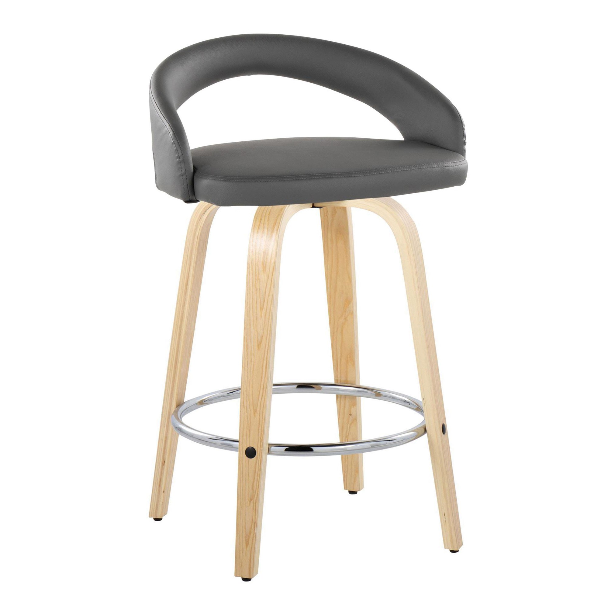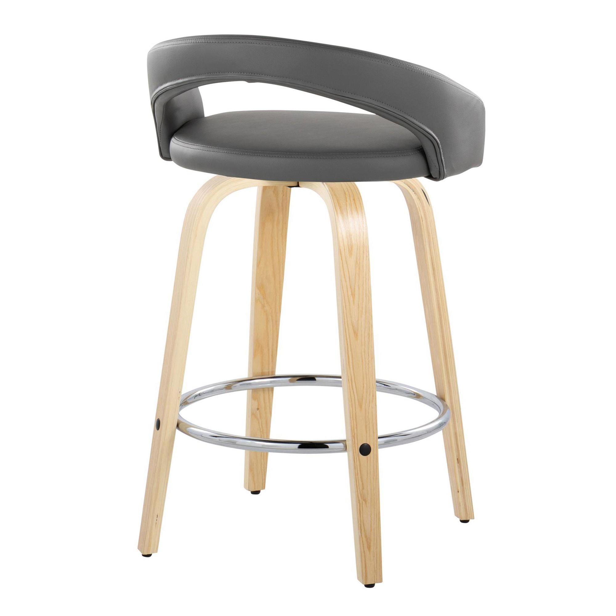 - Color: Natural Wood, Grey PU, Chrome Metal