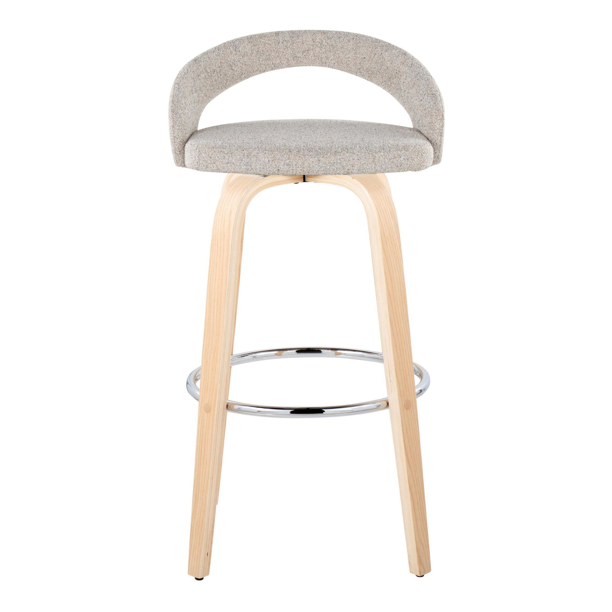 Enjoy the stylish fabric upholstery and the 360-degree swivel, perfect for entertaining. The bent wood legs provide a sturdy base, complemented by a round chrome metal footrest for added comfort. Sold in pairs, these barstools are an excellent value and a fantastic way to upgrade your seating!