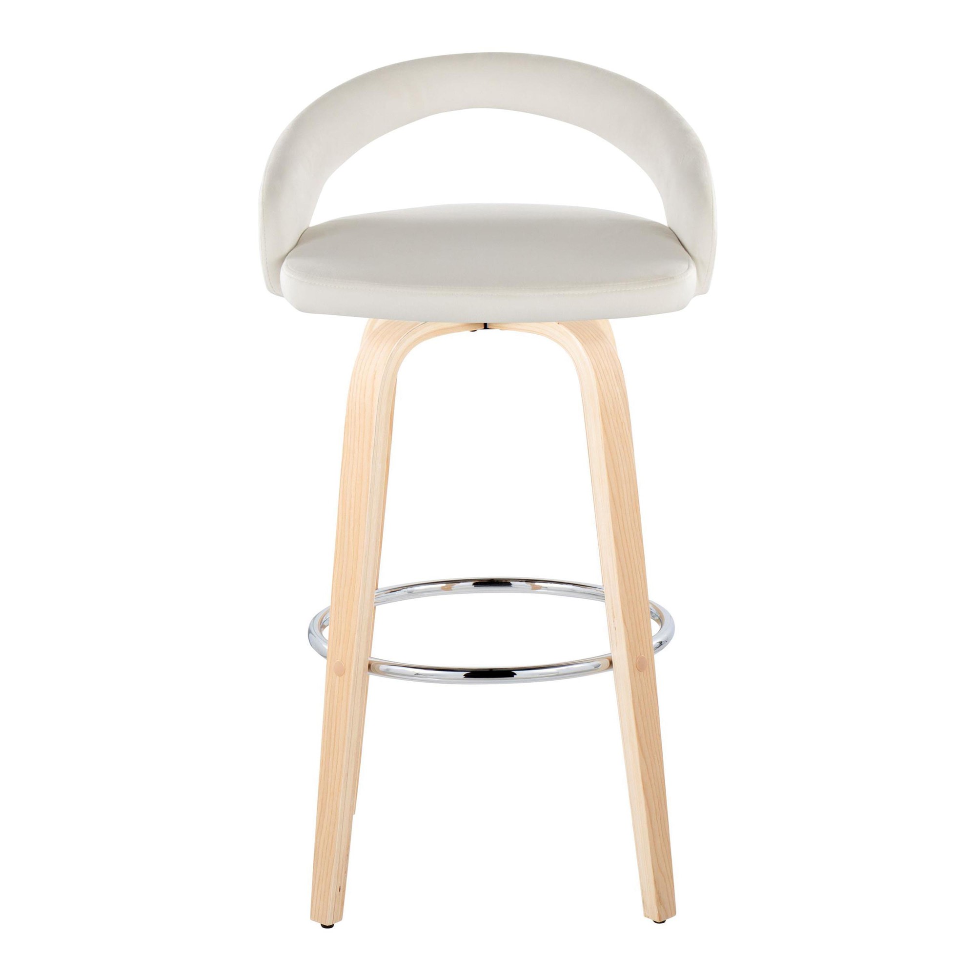The Grotto 30-Inch Contemporary White Velvet Swivel Barstools bring a refined and versatile seating option to your kitchen or bar area. These stools offer both style and comfort with a fully upholstered seat and a low backrest. The clean-lined design of the frame complements the plush upholstery, allowing the Grotto stools to blend seamlessly into a variety of decor styles. Enjoy the 360-degree swivel feature and the added comfort of the round chrome metal footrest. These stools are sold in pairs, making them a perfect addition to your space.