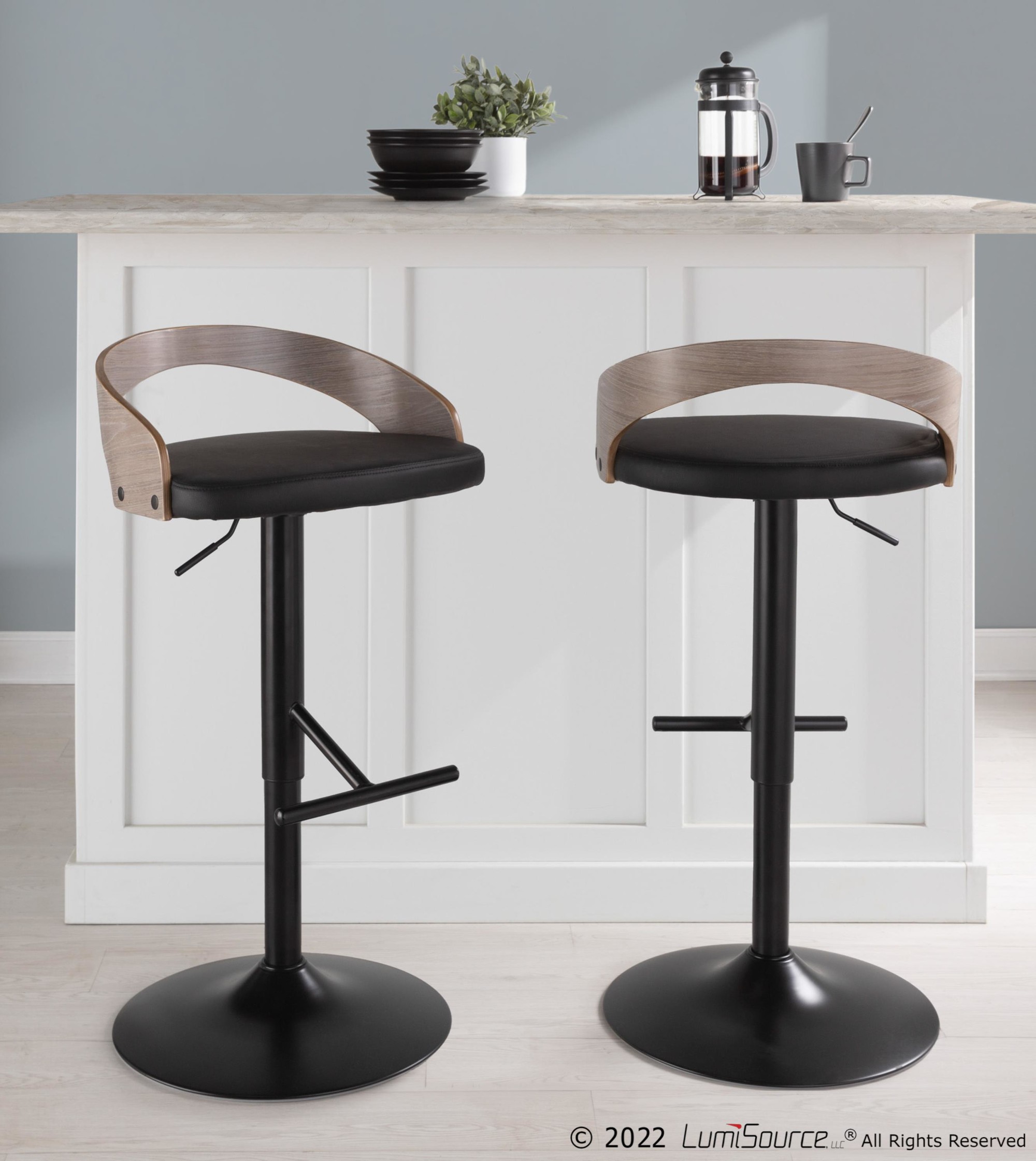 The Grotto Adjustable Barstool Pair offers a sleek, sophisticated seating solution perfect for any modern space. Featuring a curved, low-back design, these barstools provide both style and comfort. Enjoy the convenience of an adjustable height, a 360-degree swivel, and a built-in footrest, making these stools a class of their own!