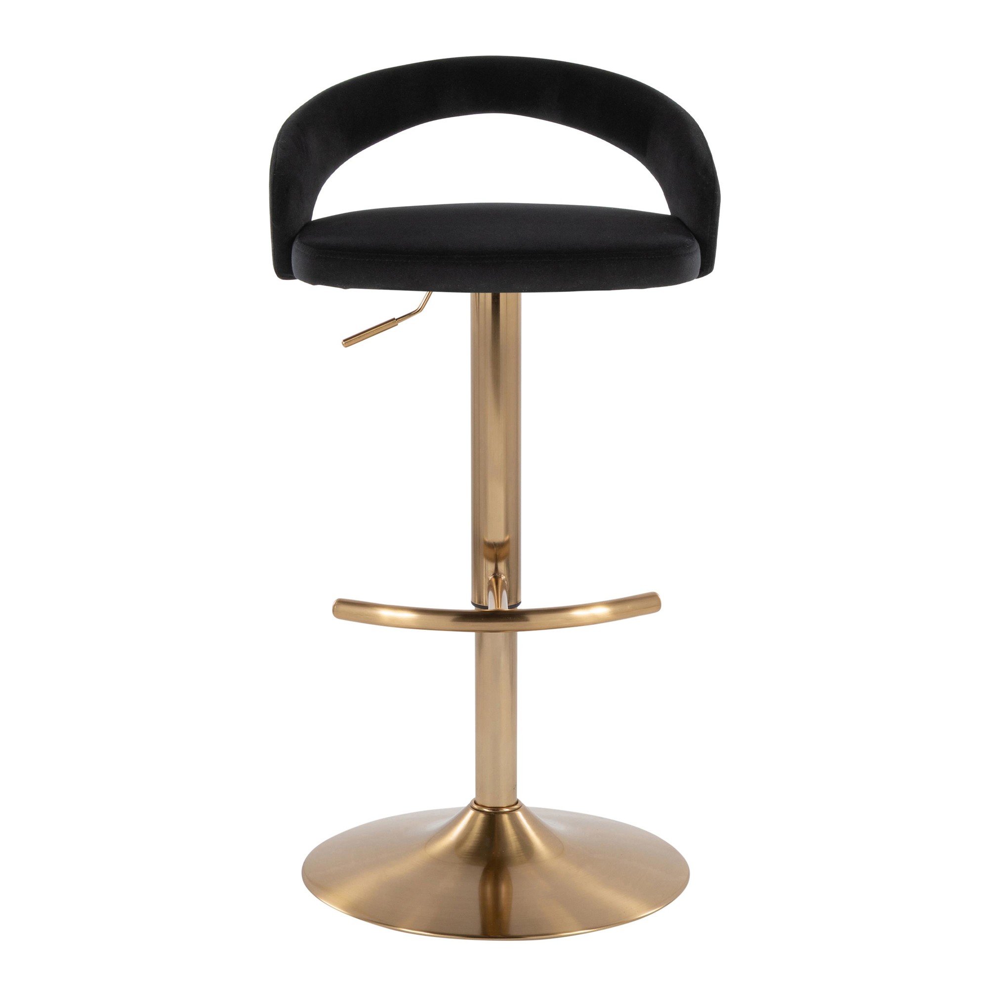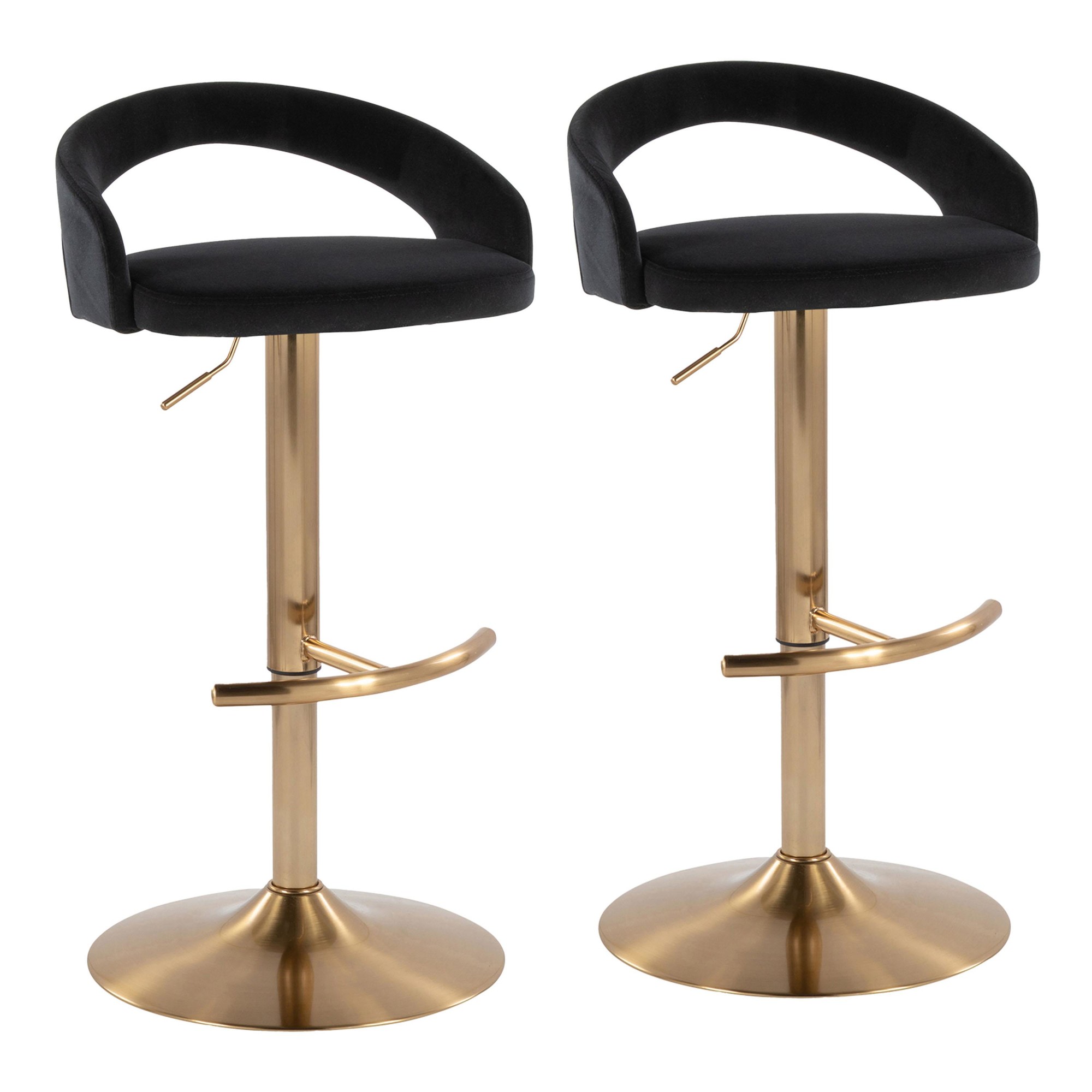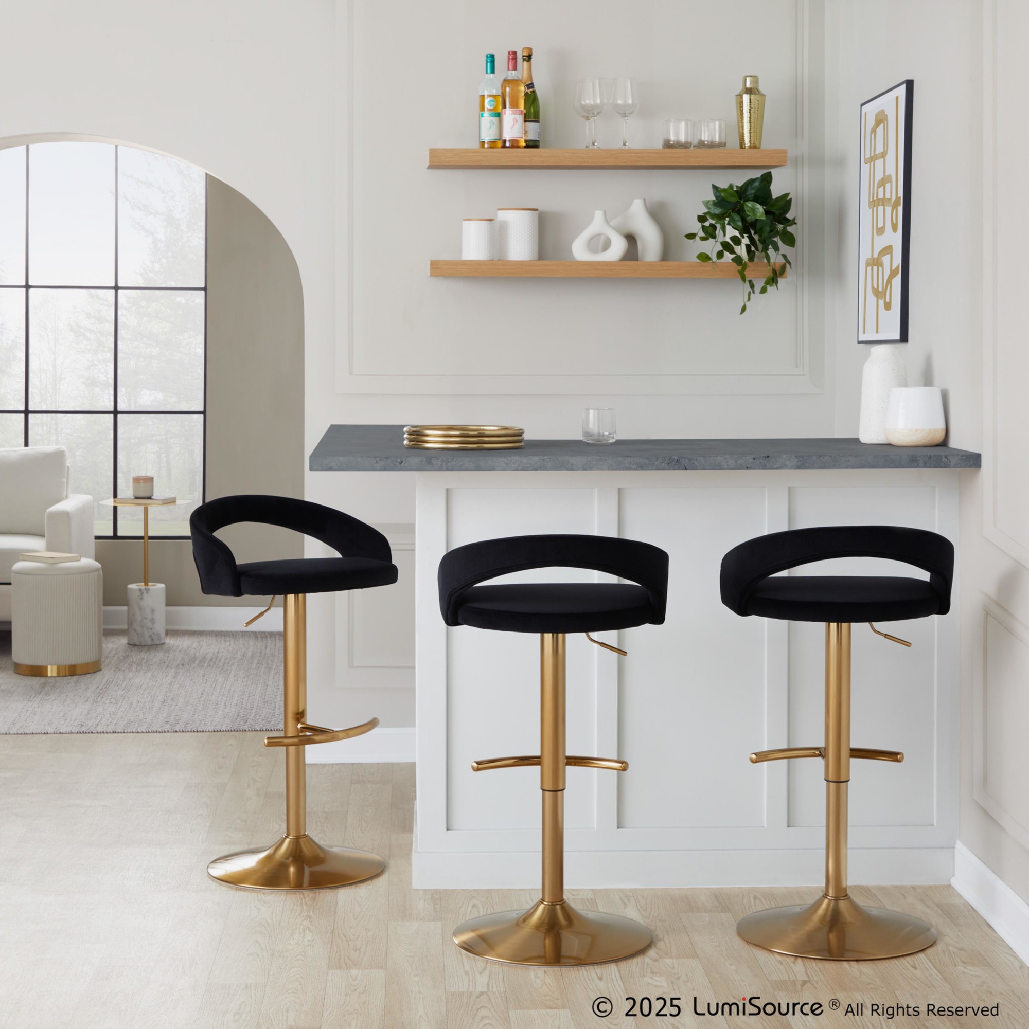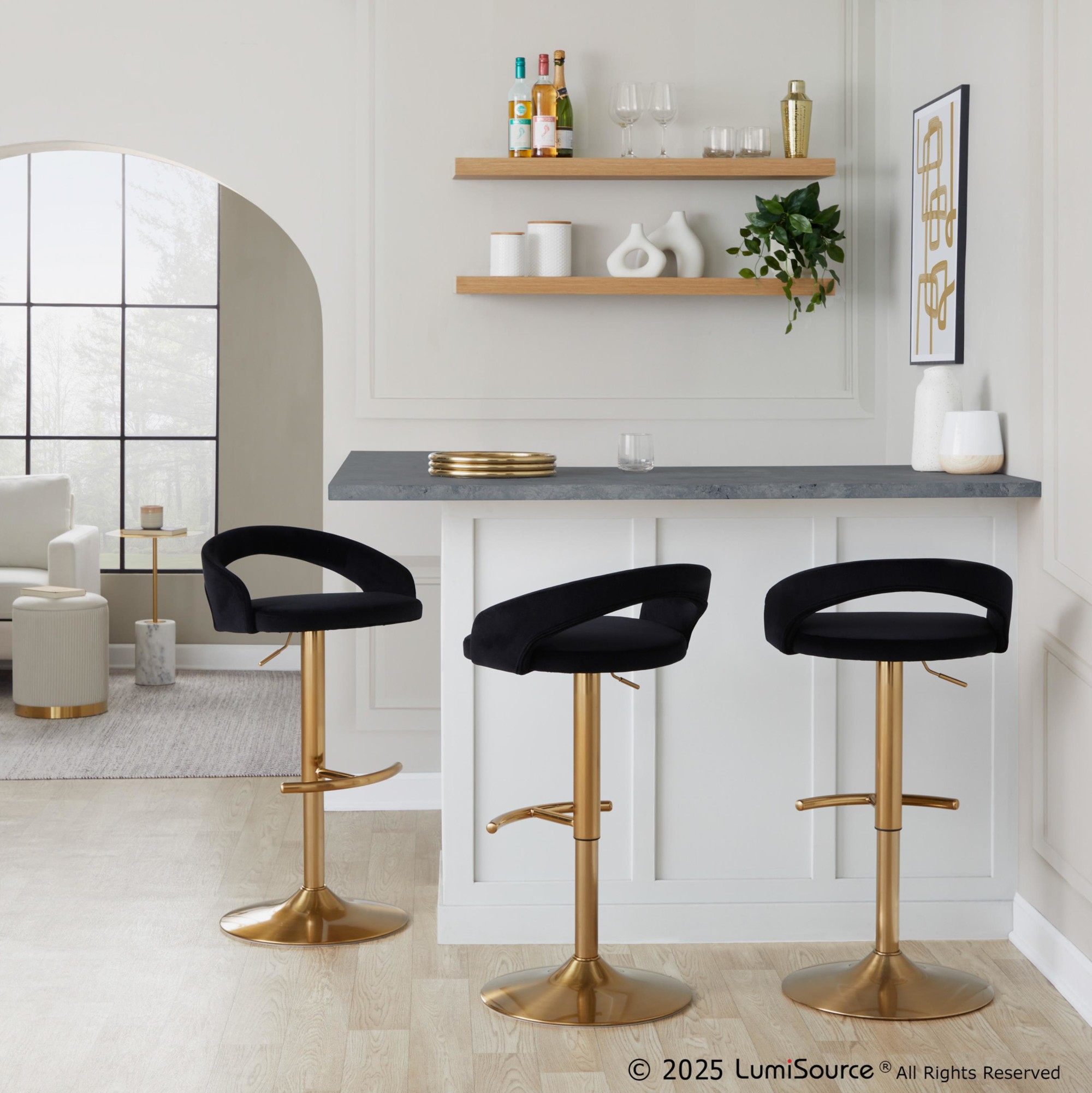 The Grotto Black Velvet Gold Contemporary Adjustable Barstools bring a touch of refined sophistication to any kitchen or bar area. These barstools feature a fully upholstered seat and a low backrest, providing both exceptional style and comfort.