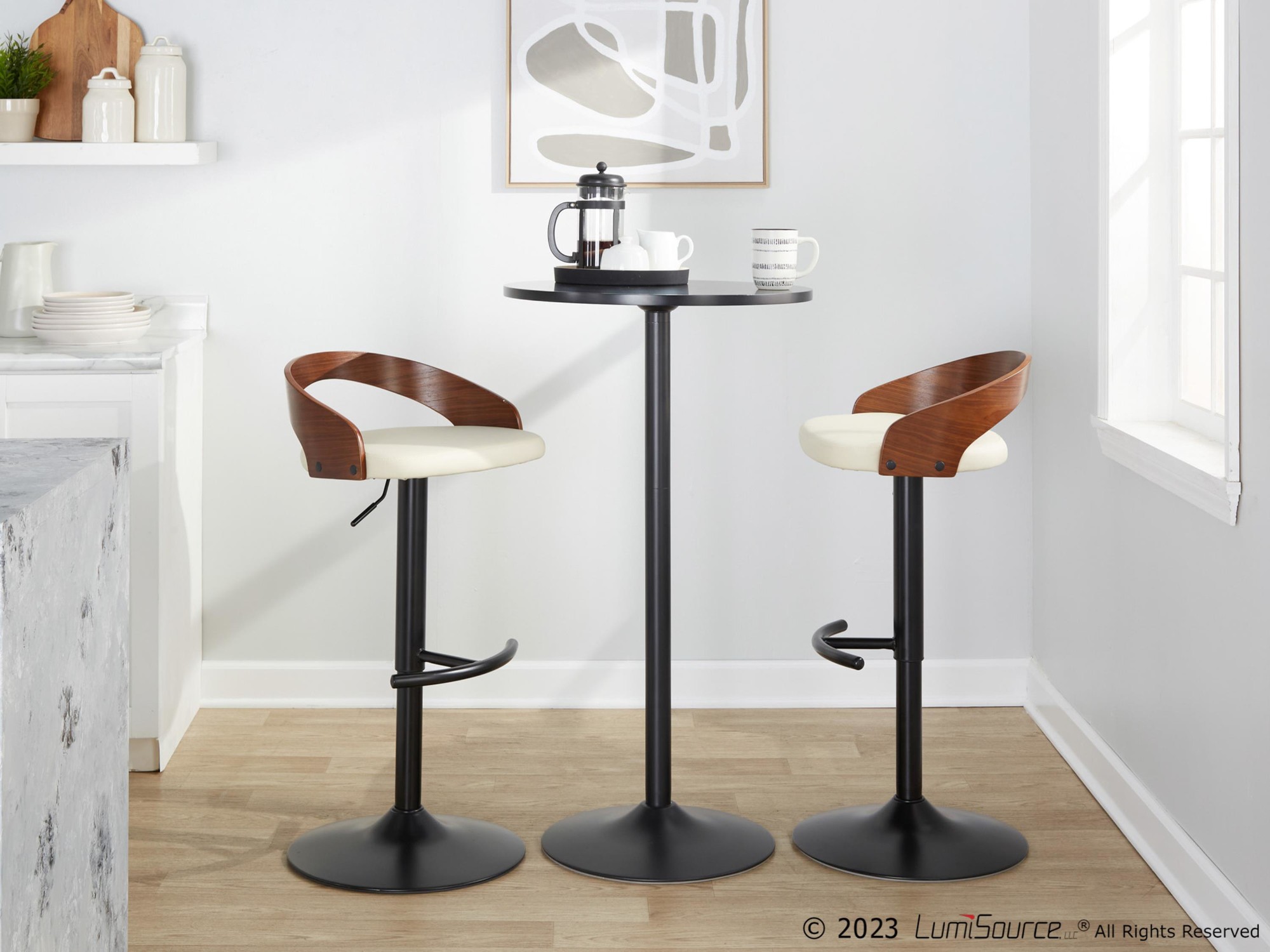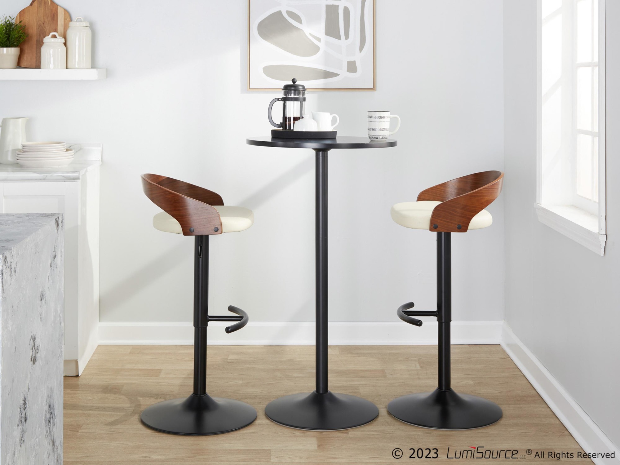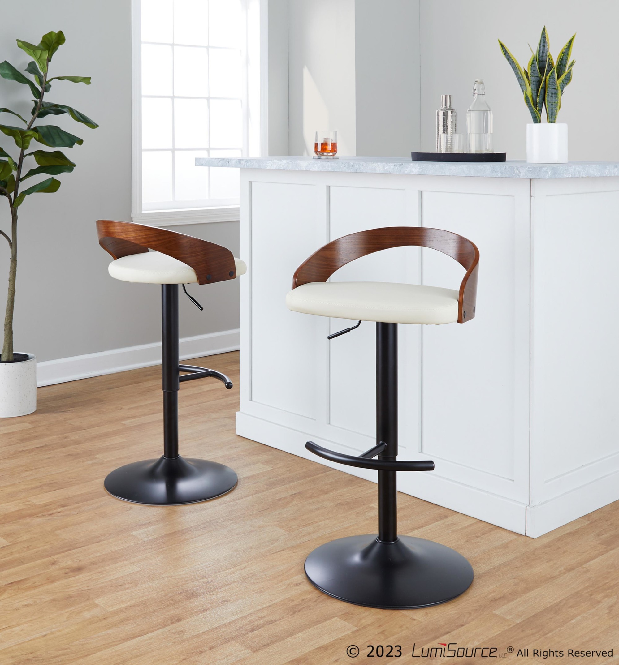 The Grotto Adjustable Barstool features a sleek, curved low-back design that radiates sophistication. These barstools offer both style and modern functionality with a cushioned seat, 360-degree swivel, and an adjustable base with a built-in footrest. Sold in pairs, they are a perfect addition to any contemporary space.
