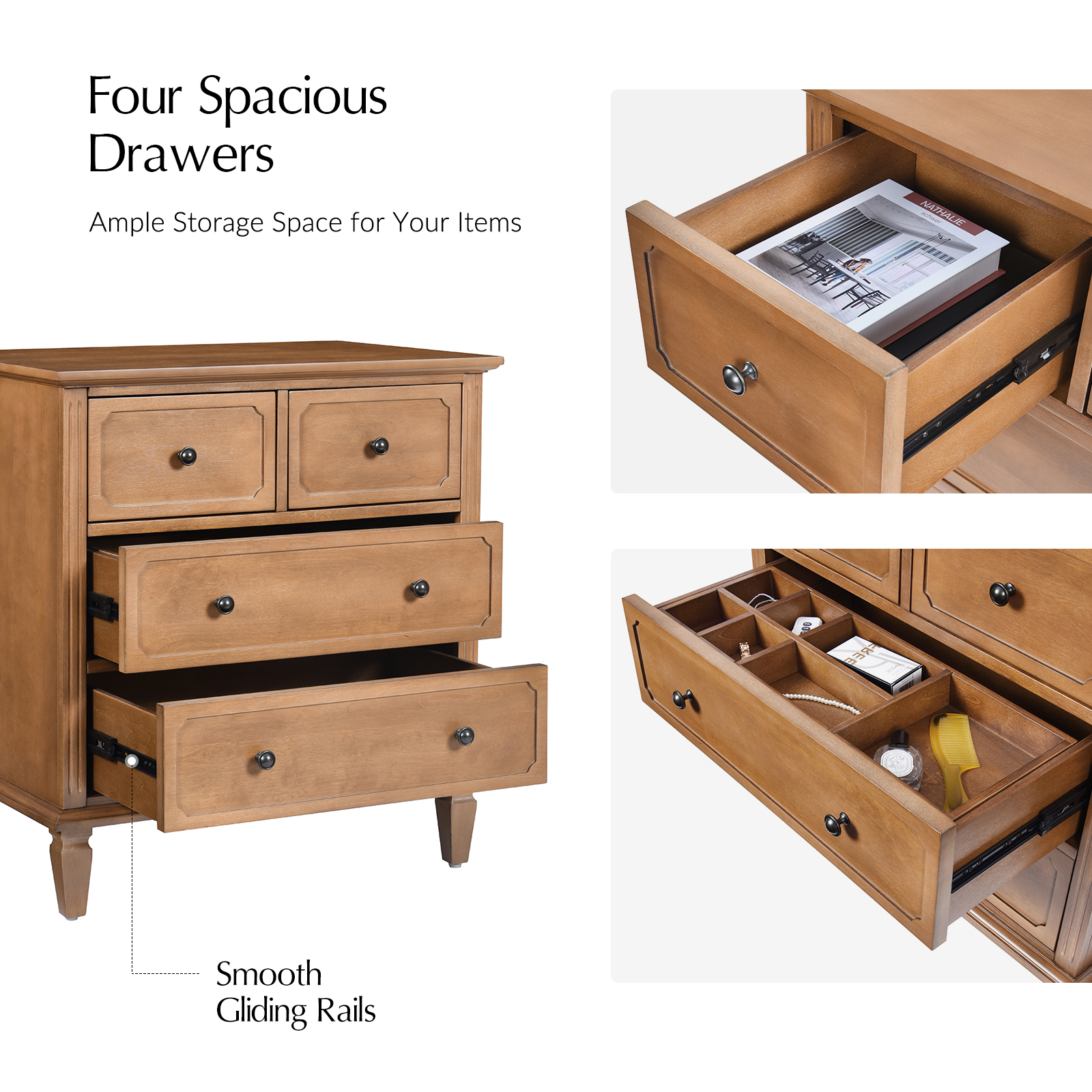 - Four Spacious Drawers: Ample storage for clothing, accessories, or household items.