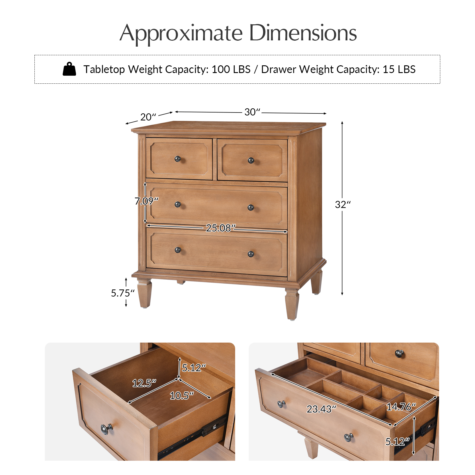 - Dimensions (WxDxH): 30 x 20 x 32 inches